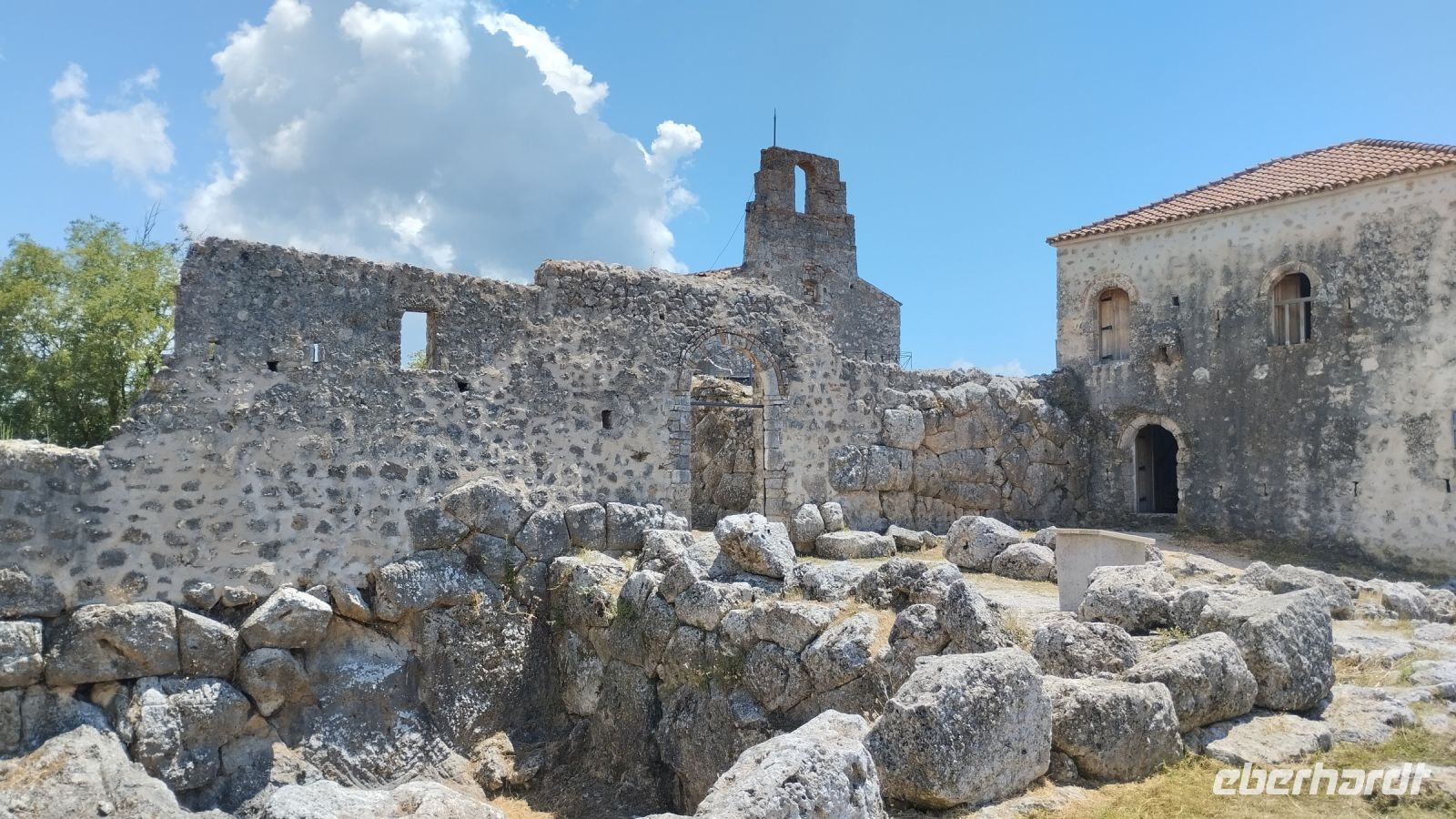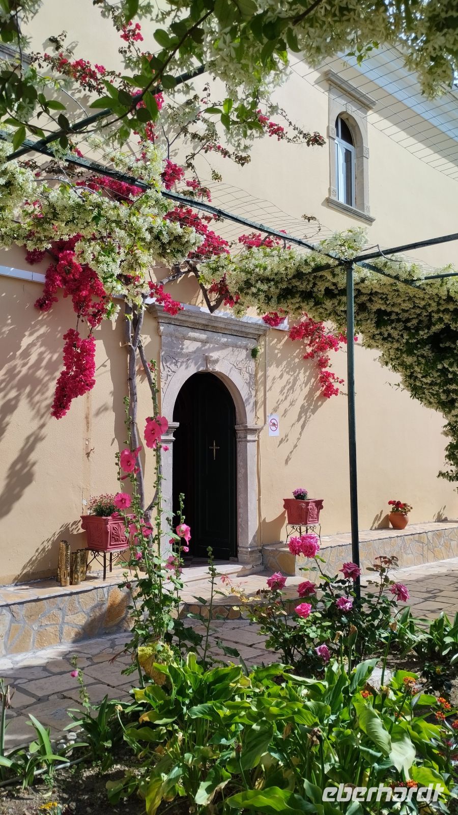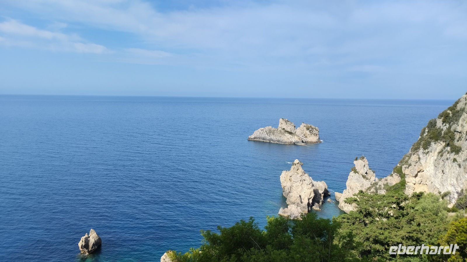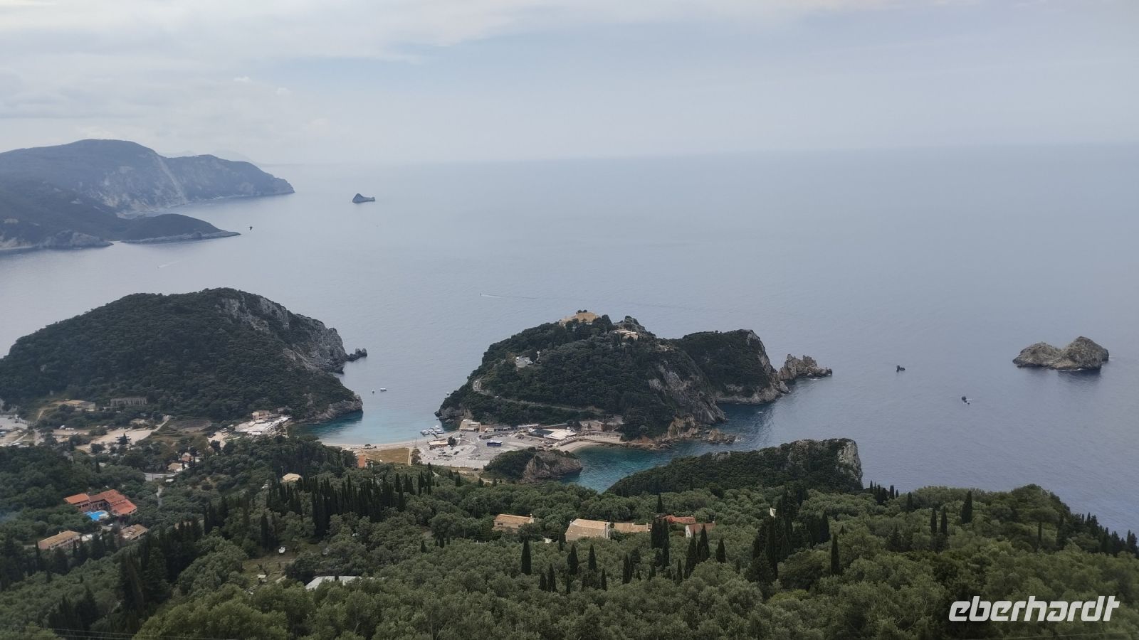 Als Erstes fahren wir zum Bergdorf Lakones nach Paleokastrisa und besuchen dort das alte Kloster mit einem schönen Garten. Von hier oben hat man einen wunderschönen Blick auf den westlichen Teil der Insel.