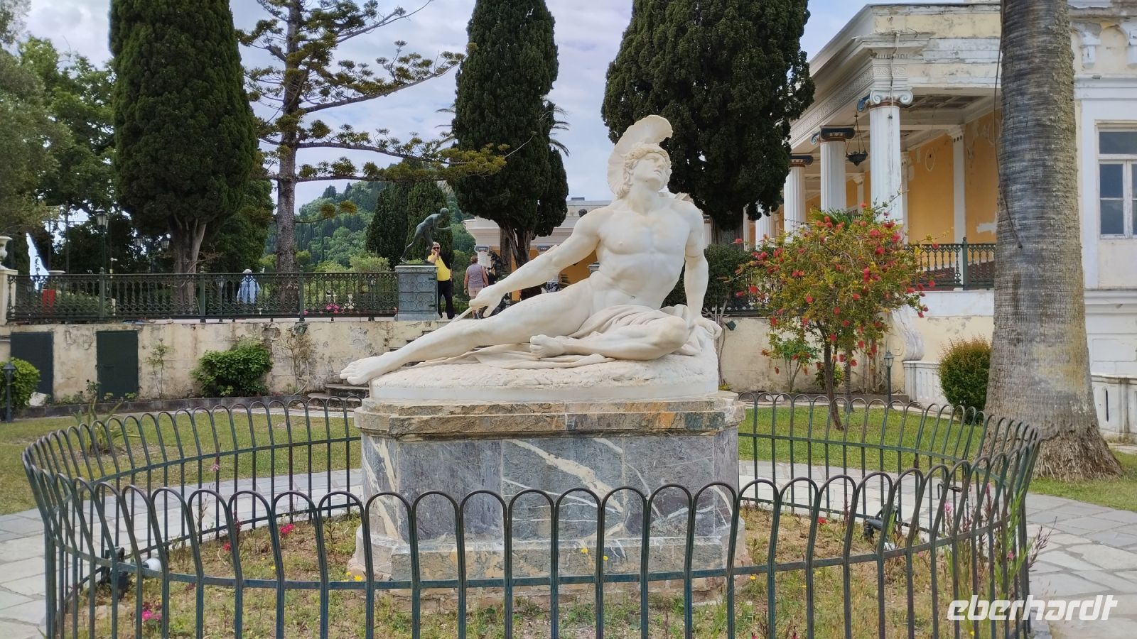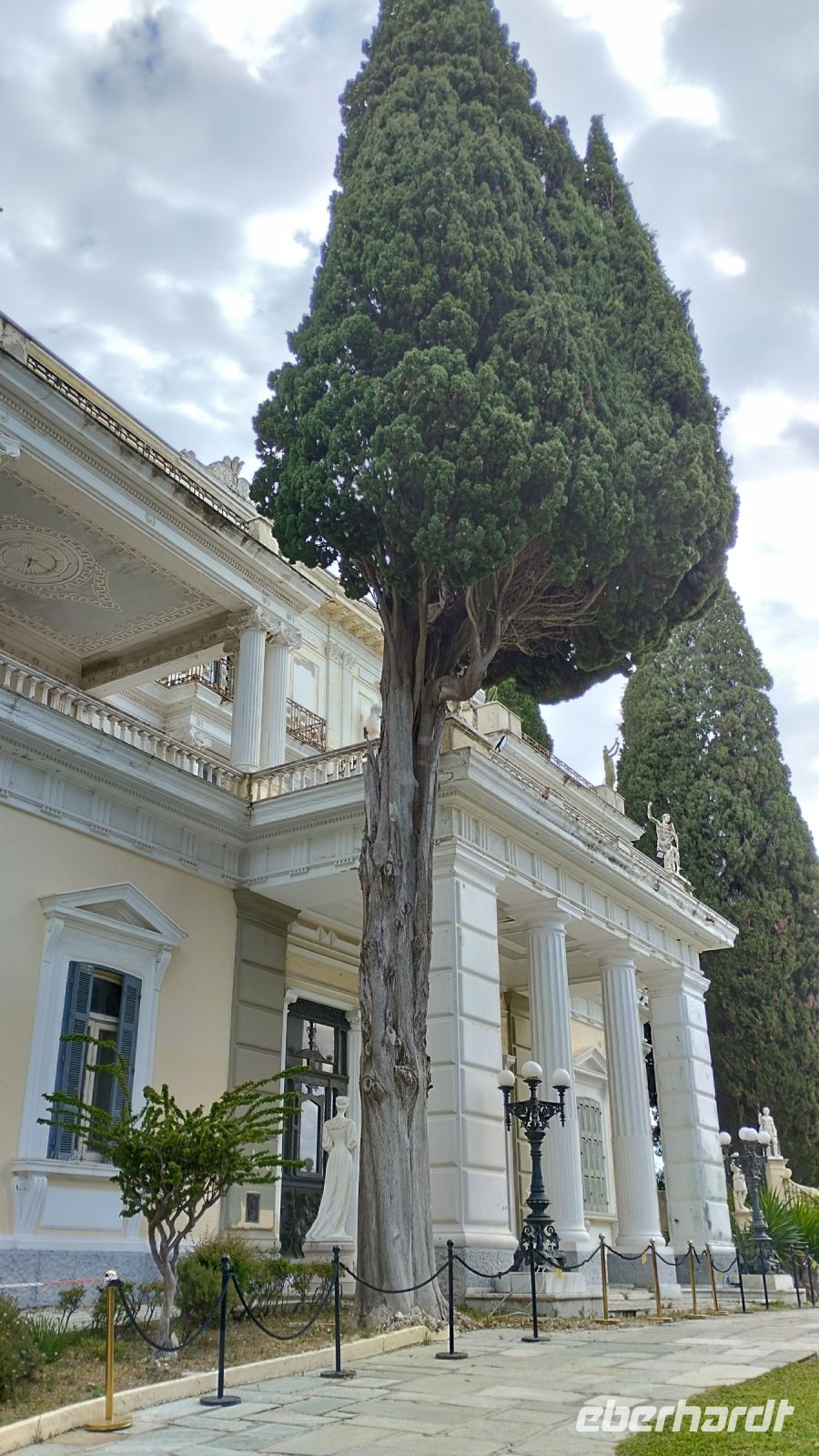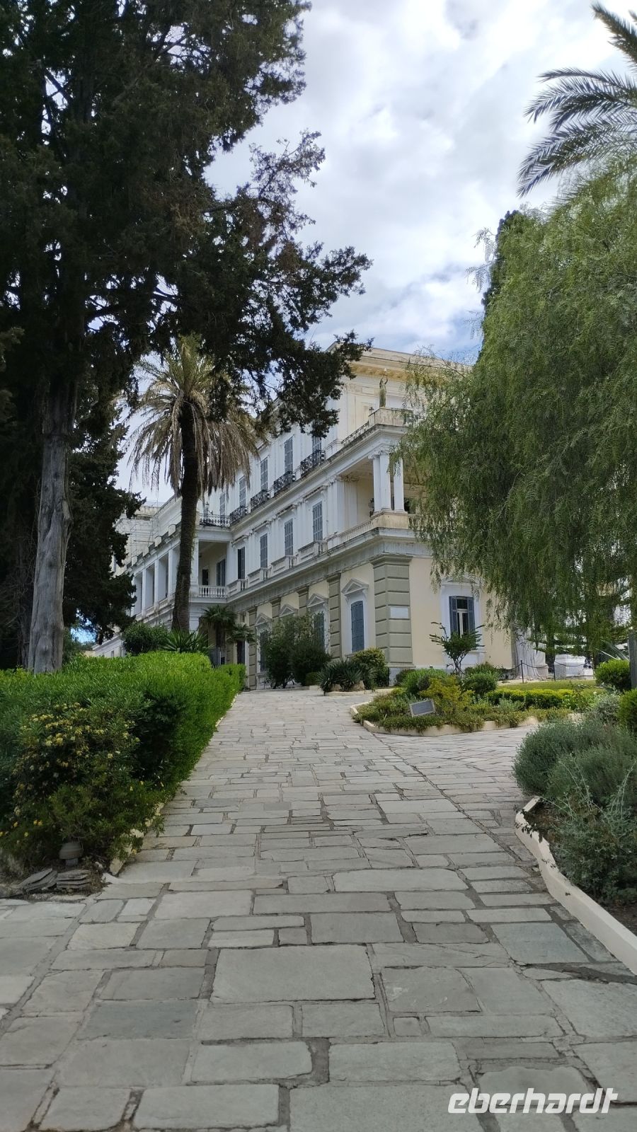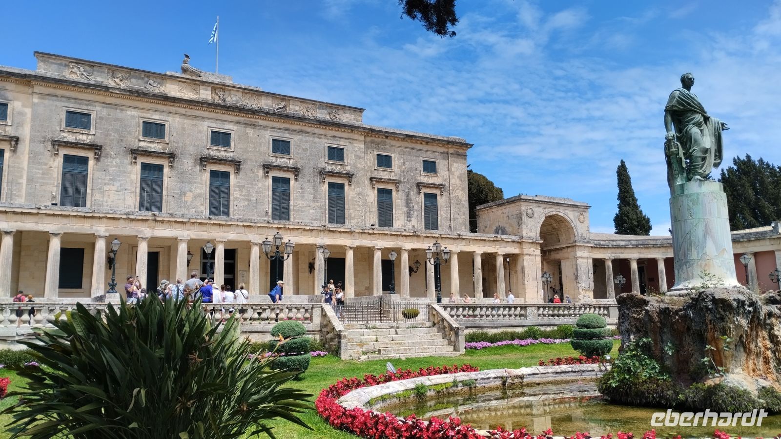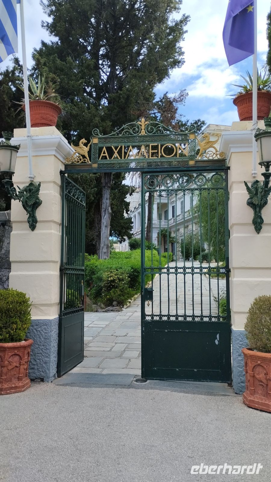Die Sonne lacht an diesem Morgen. Zuerst besuchen wir den Garten von dem Sommerpalast Achilleion, wo Sissi ihren Rückzugsort gefunden hat.