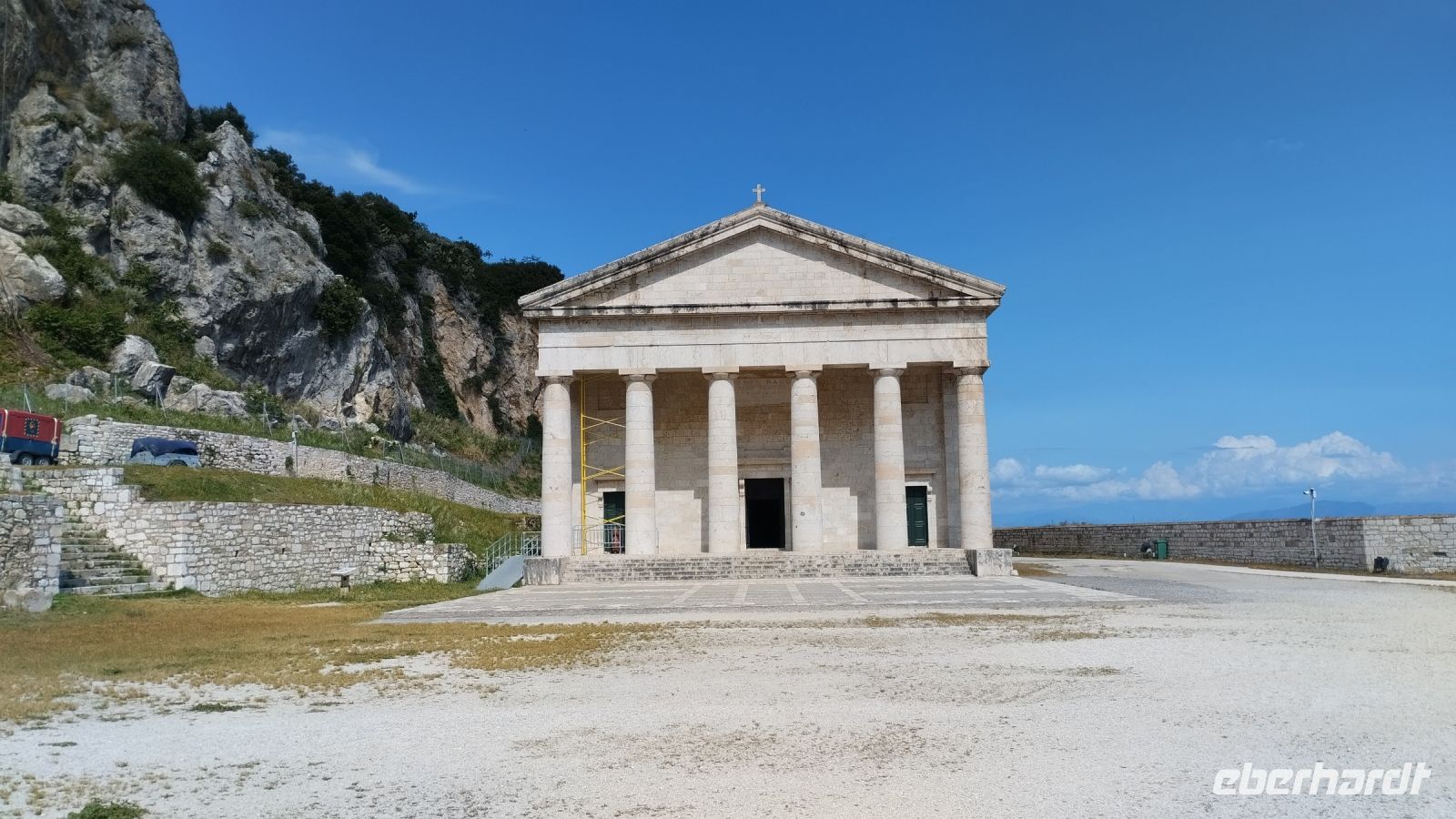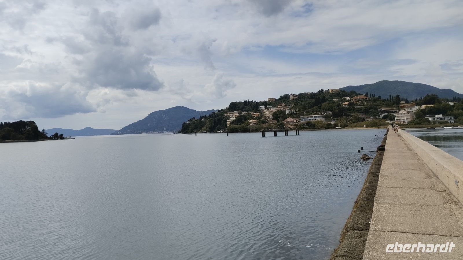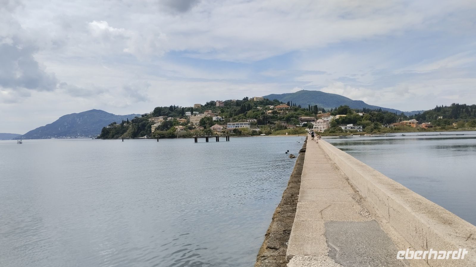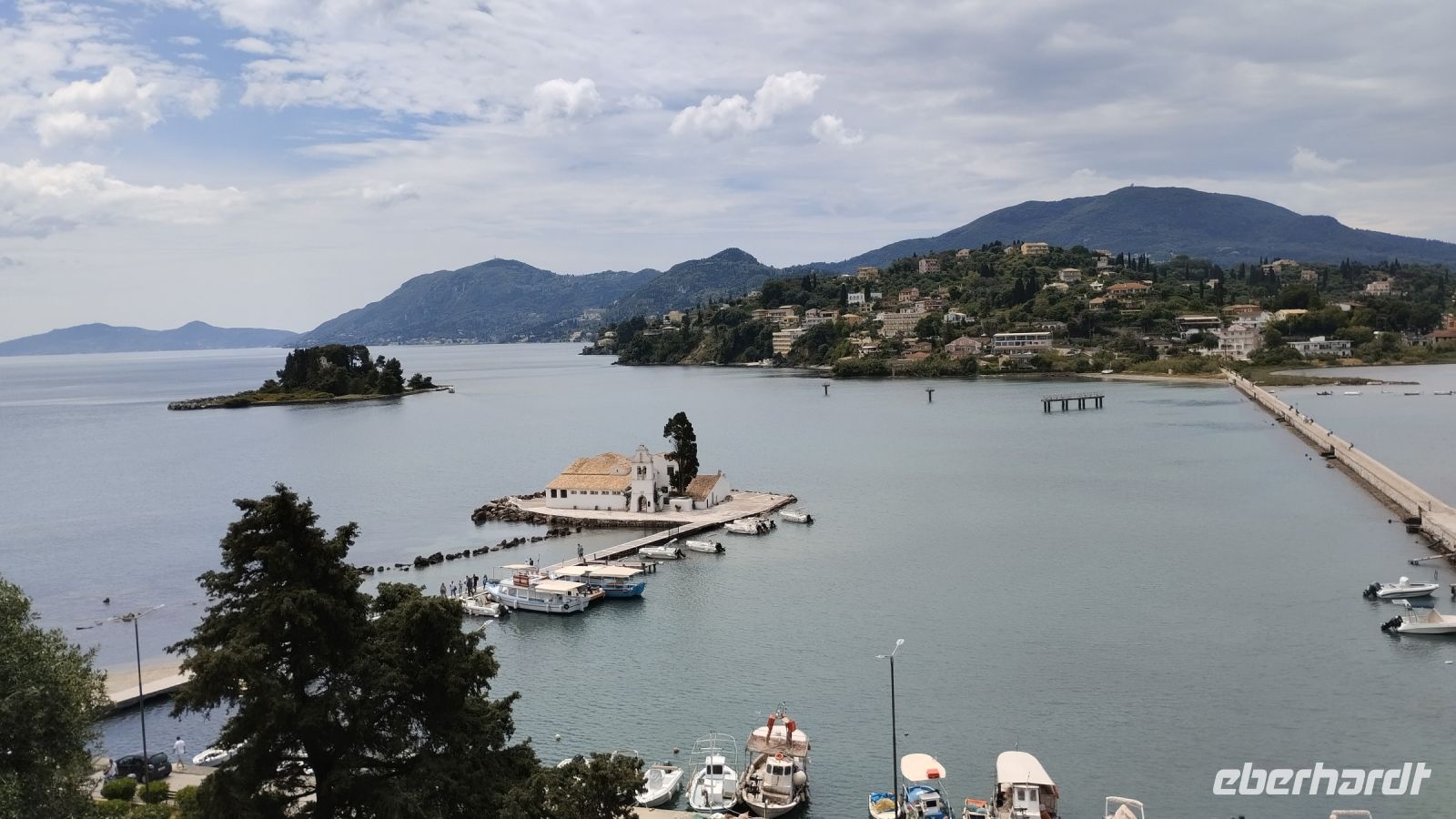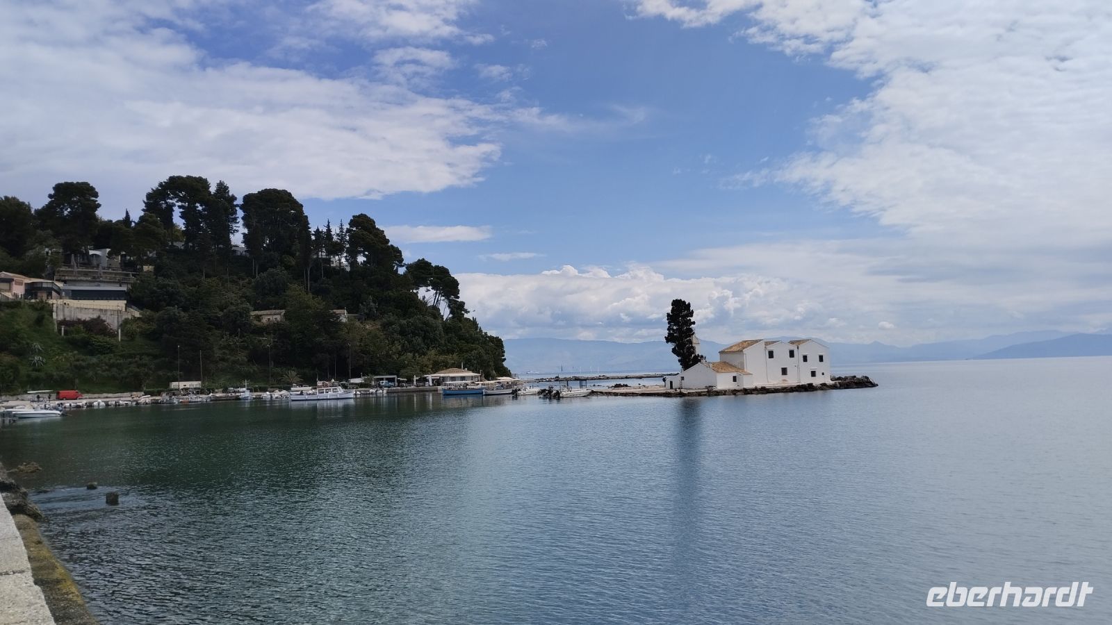 Danach laufen über eine Brücke zu der kleinen Kirche, um anschließend mit dem Boot zur der "Mäuseinsel" Pontikonissi zu fahren. Der Legende nach hieß das Schiff des Odysseus "Pontikonissi" und wurde von Poseidon in Stein verwandelt.