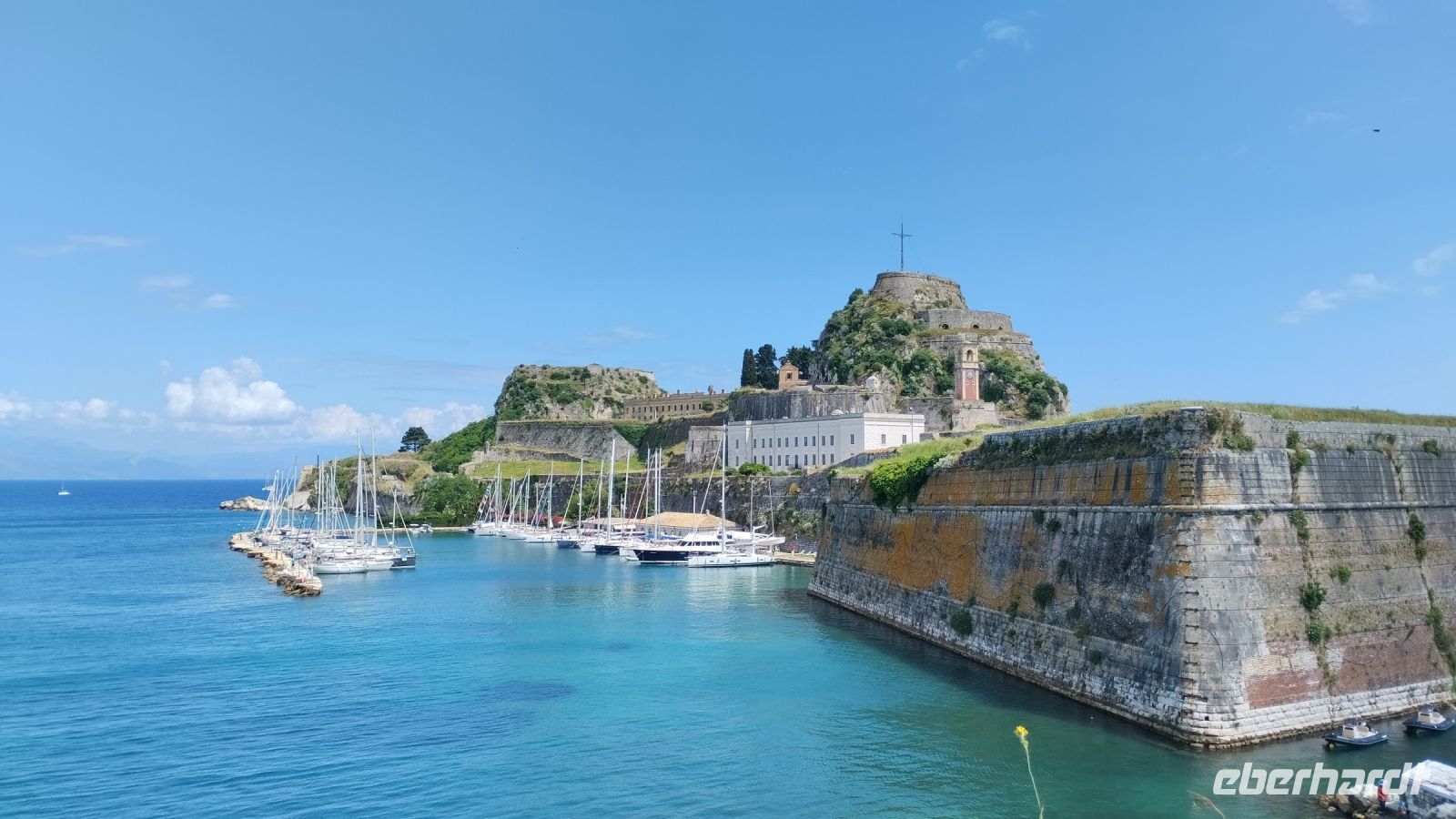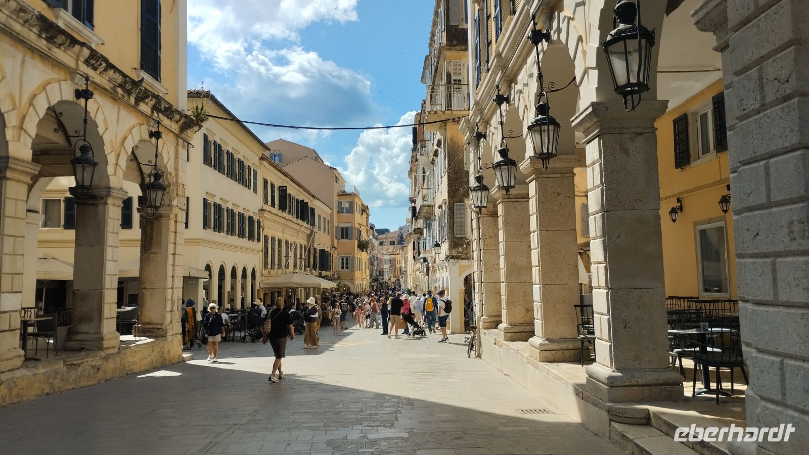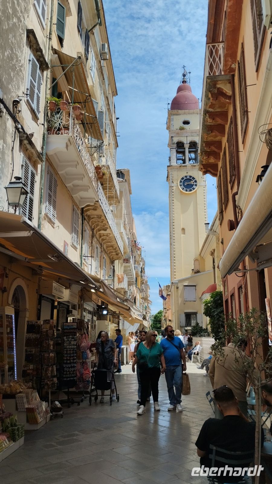 Hier machen wir zuerst eine Mittagspause in einer Taverne und besuchen dann die Spiridon-Kathedrale. Anschließend laufen wir durch die engen überfüllten Gassen der venezianischen Altstadt mit vielen kleinen Geschäften an der Festung vorbei zu unserem Bus.