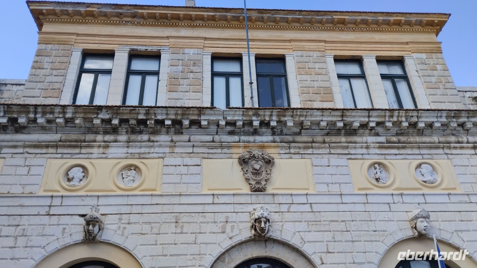 Leider können wir uns den schönen renovierungsbedürftigen Palast nicht von innen anschauen, da er geschlossen ist. In dem Garten laden die neun Musen, die Grazien sowie die Statue des griechischen Helden Achilles zum Verweilen ein.
