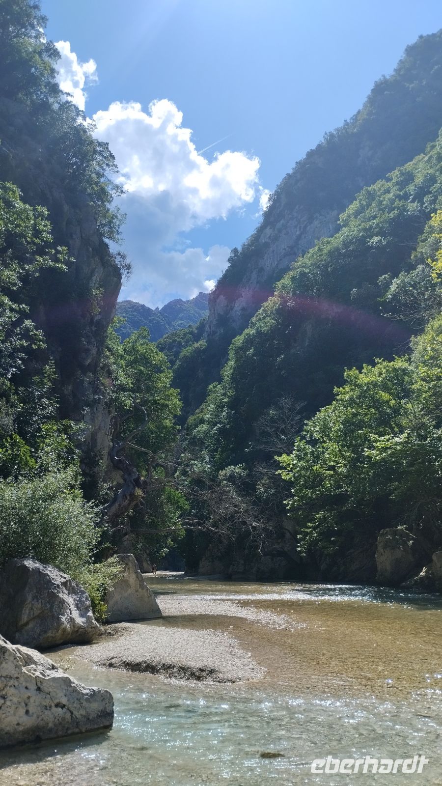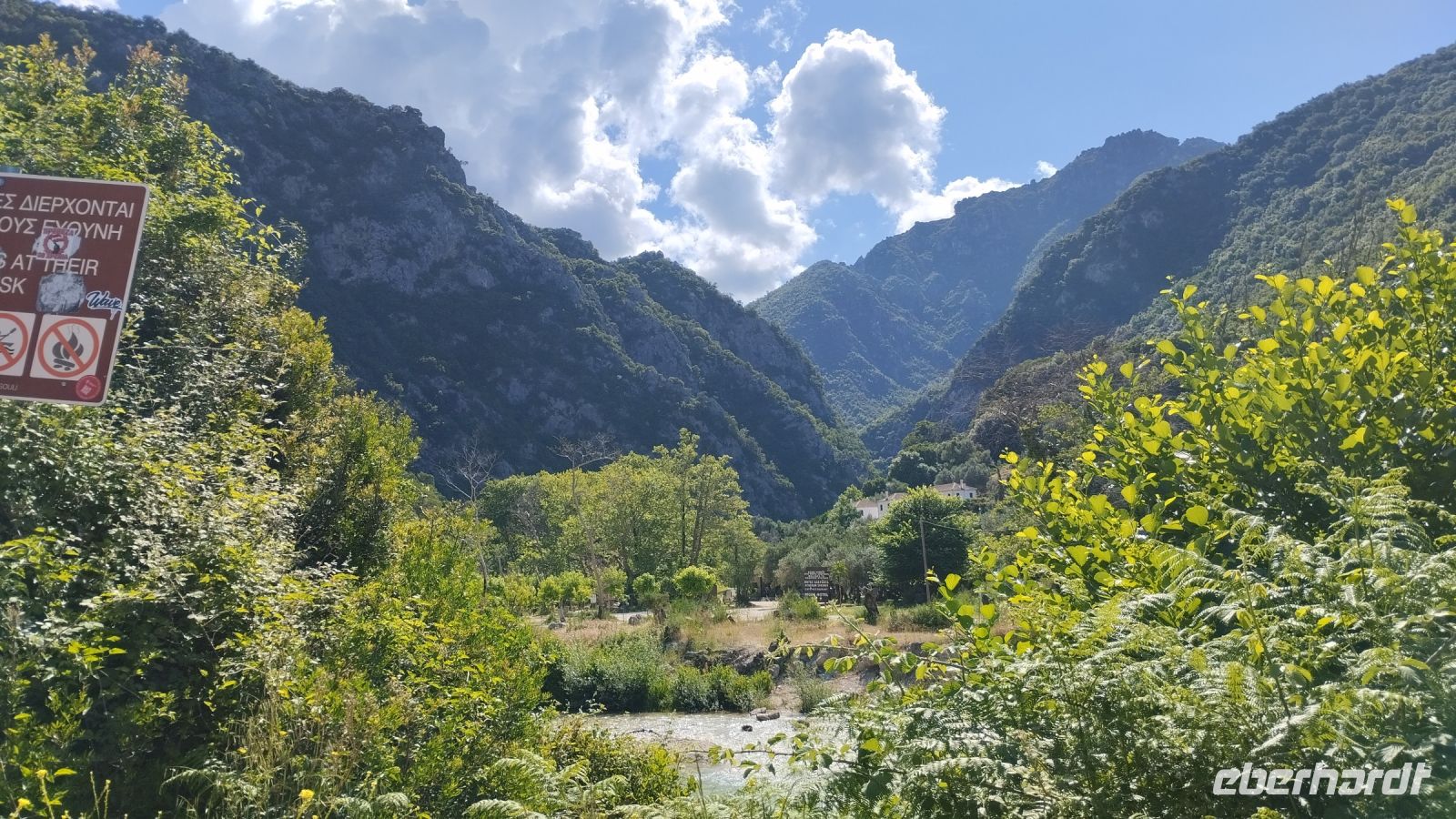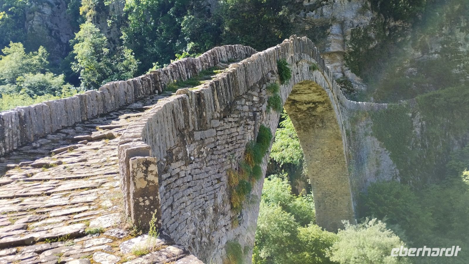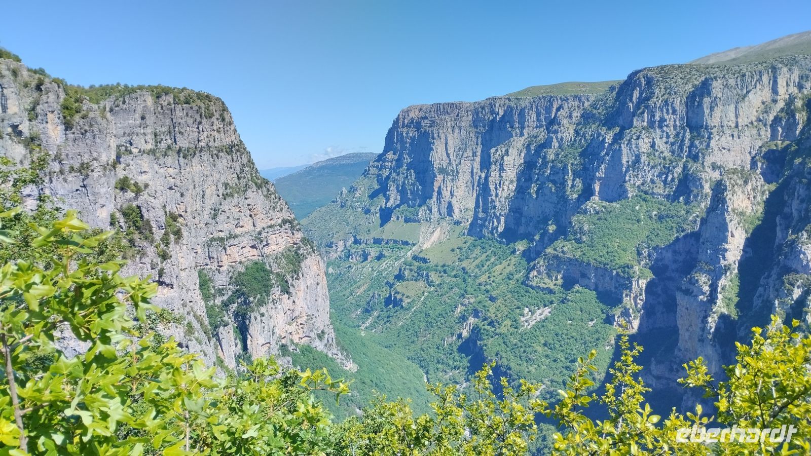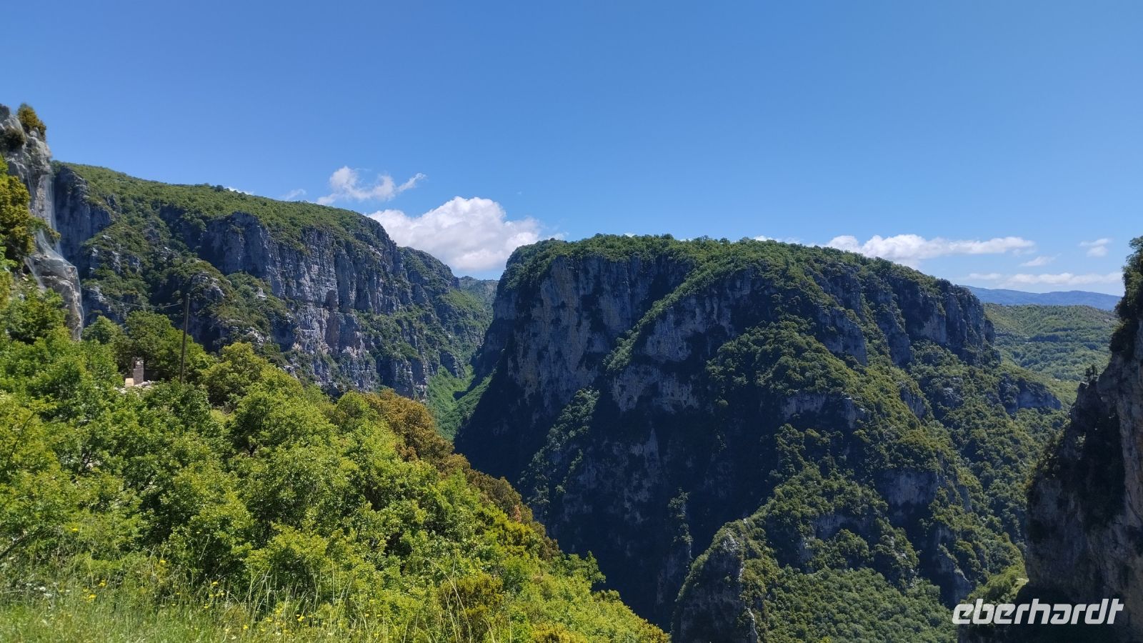 An diesem Morgen fahren wir nun wieder zurück zum Meer. Unser erster Stopp ist die Brücke in der Vikos-Schlucht und danach der Spaziergang zu der Aussicht auf die Schlucht, dessen Kalksteinfelsen bis zu 915 Meter in die Höhe ragen. Die ganze Zeit sehen wir sehr grüne und dicht bewaldete Berge um uns herum.
