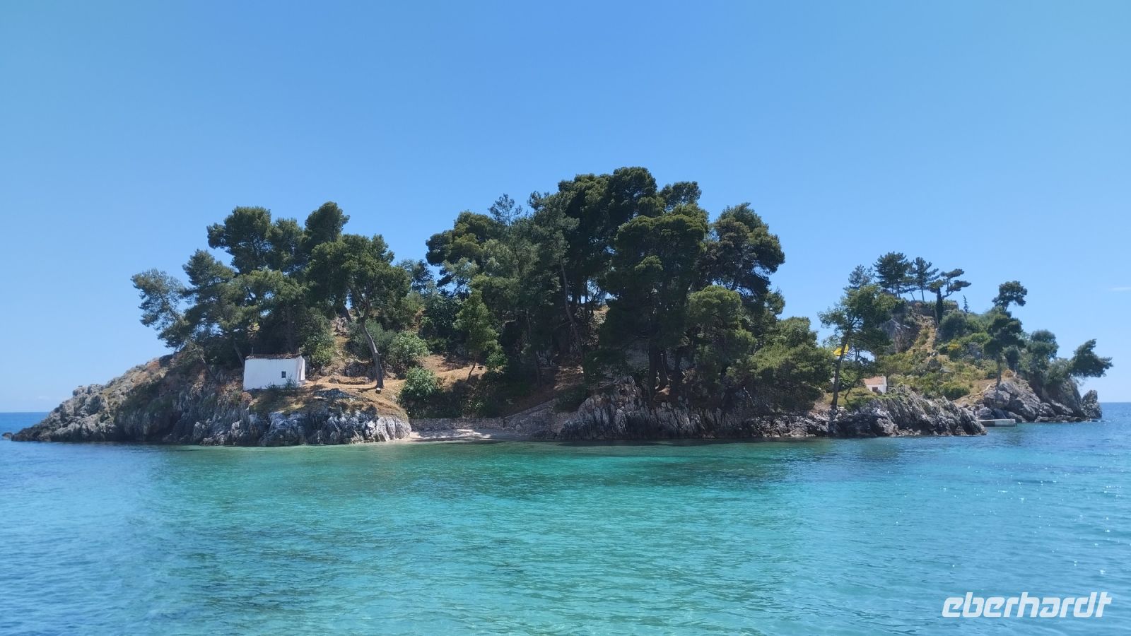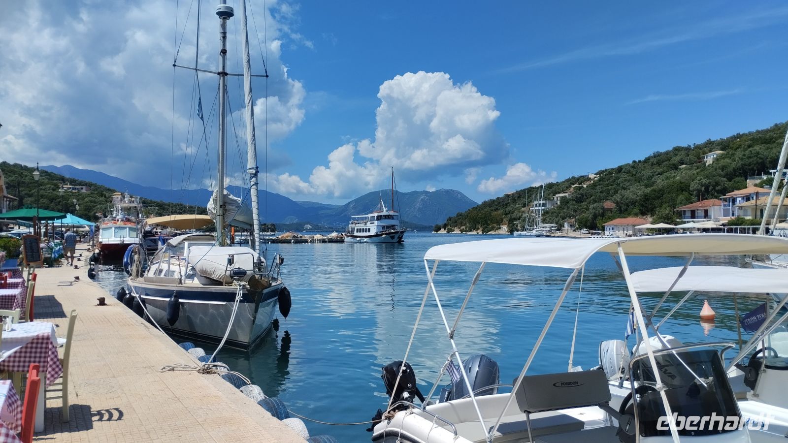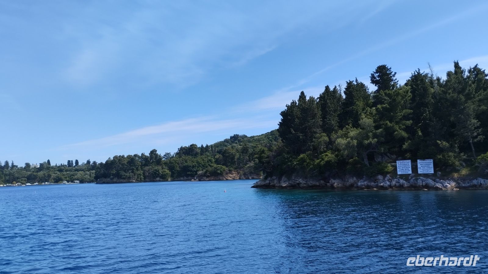 Unser Mittagessen genießen wir auf der Insel Meganisi, die bei den Seglern beliebt ist. Zurück fahren wir an der Insel Skorpios vorbei, die eine Zeit lang dem Aristoteles Onassis gehörte.