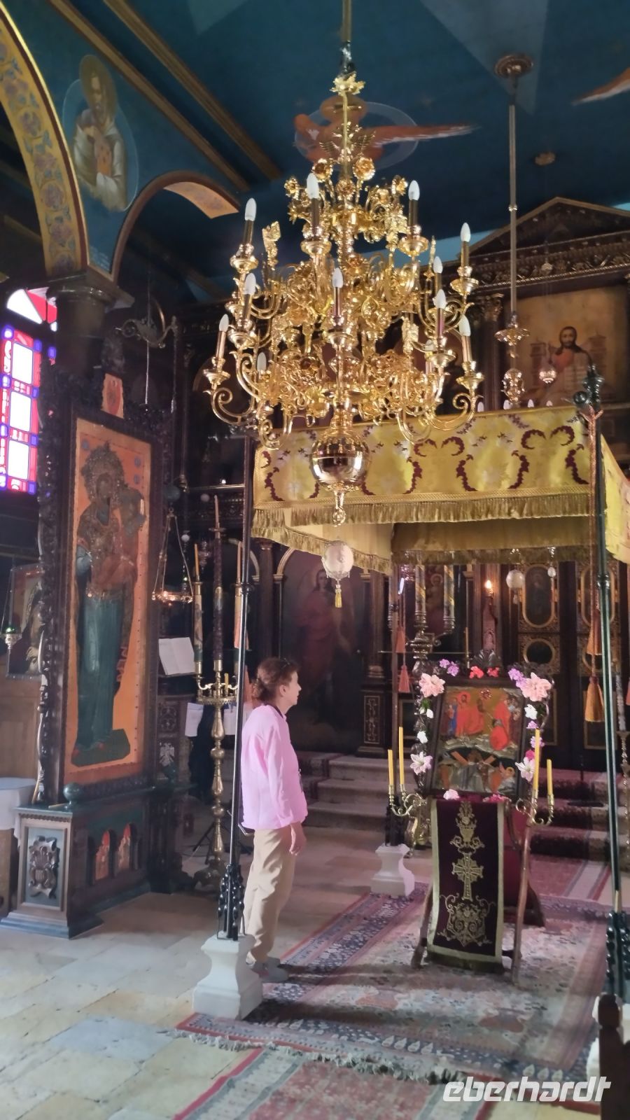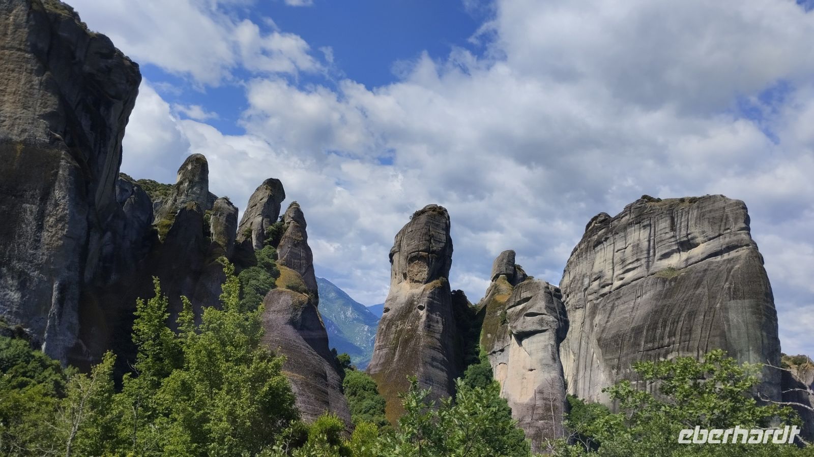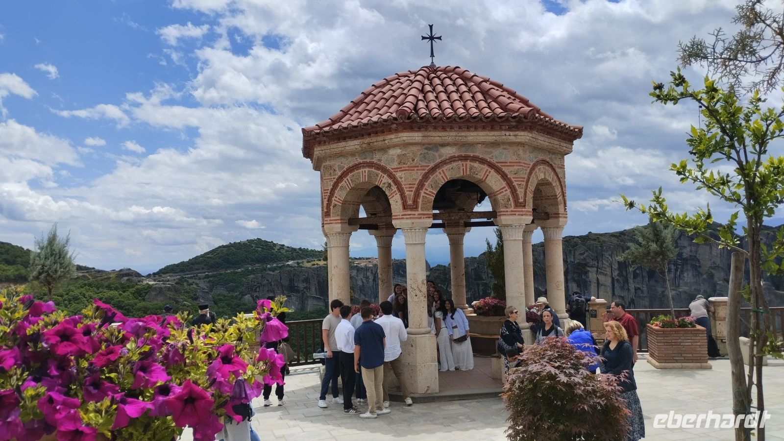 Das Hightlight der ganzen Reise - die Meteora-Klöster aus dem 14 Jh. stehen heute Morgen auf dem Programm. Nach einer zweistündigen Fahrt finden wir uns an einem außergewöhnlichen Ort mit in der Luft schwebenden Klöstern umrahmt von den majaestetischen Conglumerat-Felsen. Wir besuchen zwei von fünf Klöster und bewundern die Ikonen- und Freskenmalereien des berühmten Malers Theofanis von Kreta.