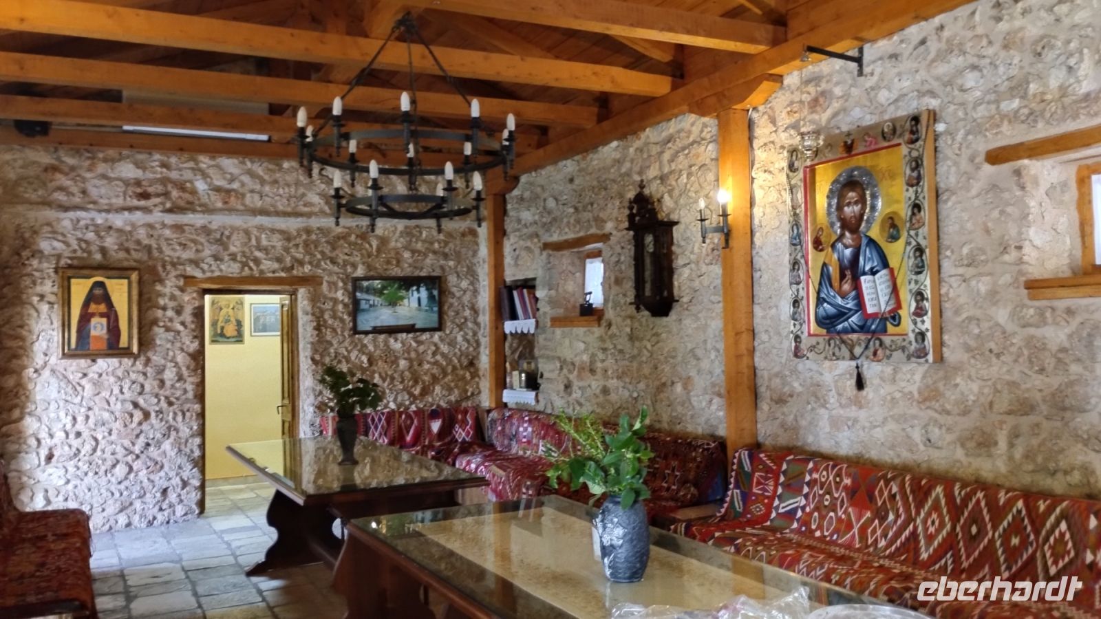 Im Bergdorf Monodendri angekommen, laufen wir gemeinsam zu dem Kloster Agia Paraskevi und zurück. Dann freuen wir uns auf die knusprigen gefüllten Pitas direkt aus dem Ofen in einer Taverne.