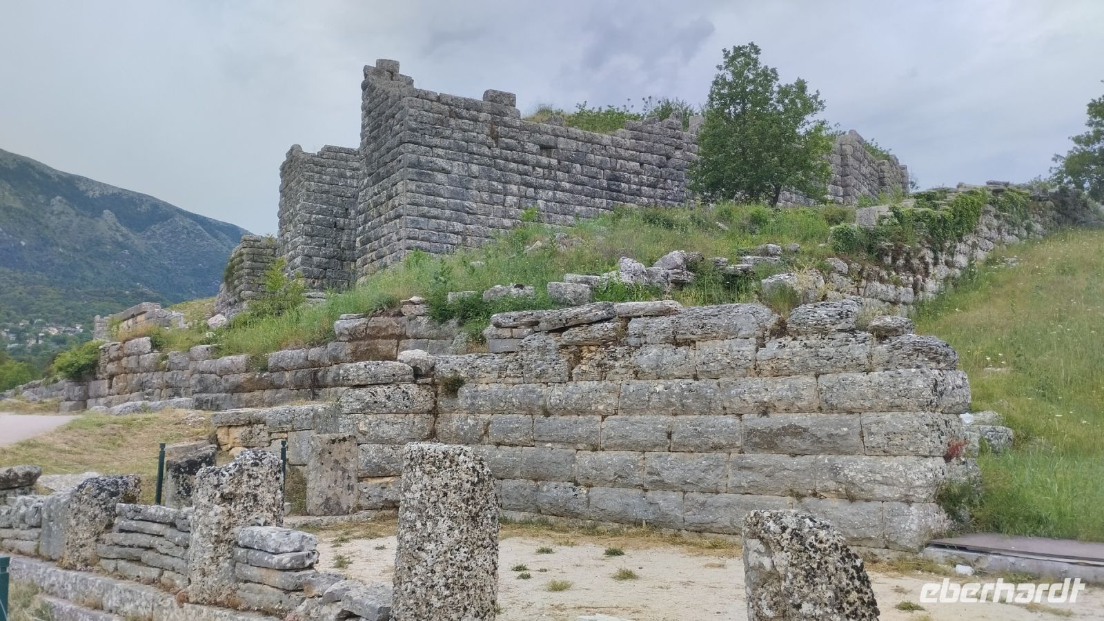 Hier sind wir fast alleine und lauschen den Erzählungen von der prähistorischen Zeit, wo die Priester und Priesterinnen die heilige Eiche um Rat fragten und das Rauschen der Eichenblätter als Prophezeihungen deuteten. Leider wurde dieser heilige Baum 393 n. Chr. auf Geheiß des römischen Kaisers Theodosius gefällt. Das heutige Wahrzeichen von Dodona ist das Amphitheater, das 18.000 Zuschauer fasst und zu dem größten Theater Griechenlands gehört.