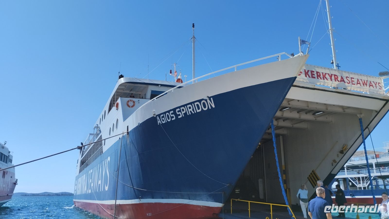 Nun fahren wir wieder nach Ioannina, wo wir uns von Akrivi verabschieden. Anschließend bringt uns Andreas zu der Fähre nach Igloumenitsa, wo wir mit der Fähre nach Korfu fahren. Nach ca. zwei Stunden sind wir wieder in unserem uns schon bekannten Hotel am Meer angekommen und gehen recht bald zum Abendessen.