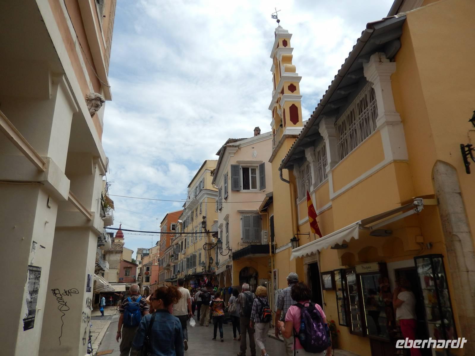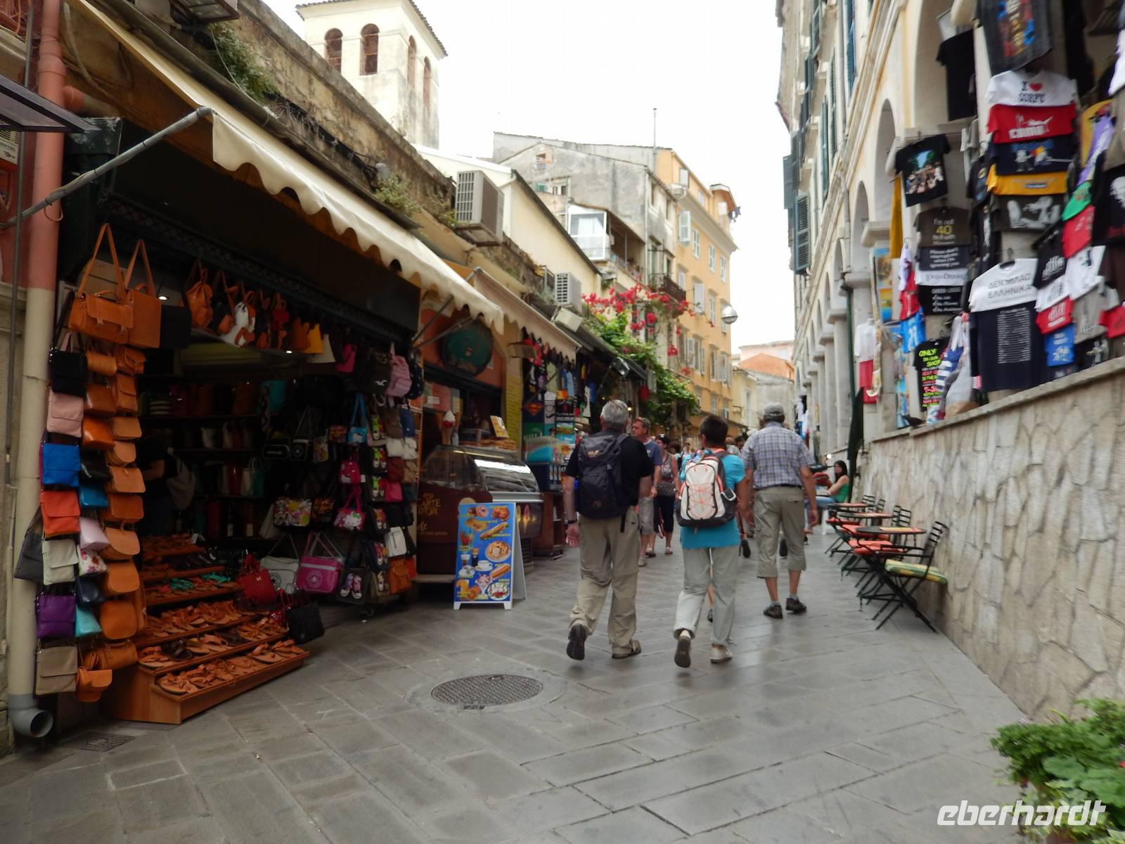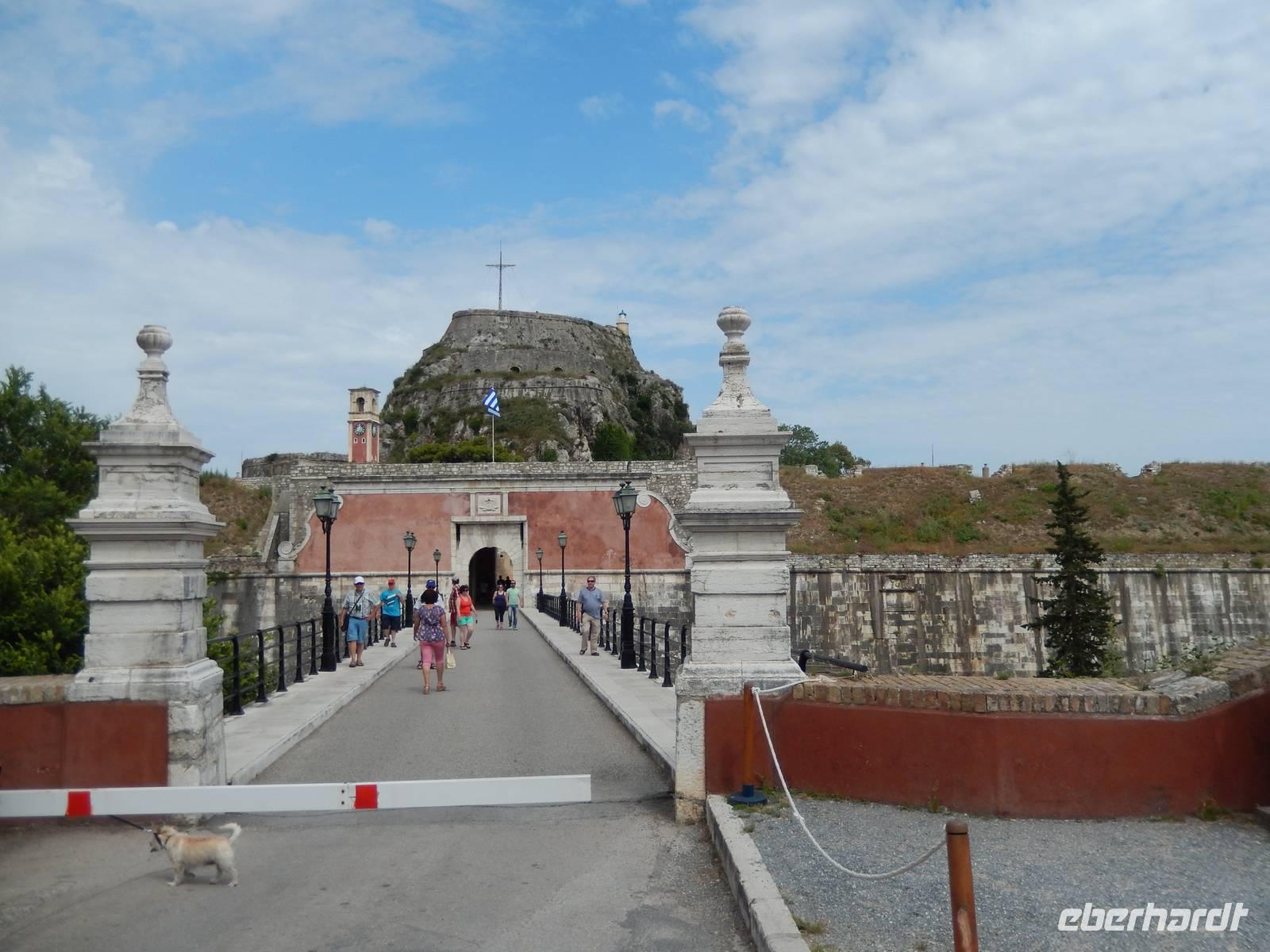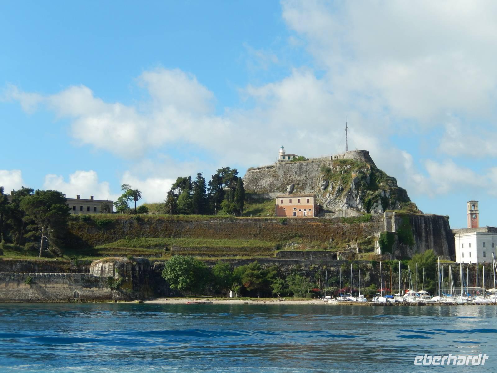 Nachdem alle Reisegäste von Dresden und Leipzig schließlich vereint war, freuten wir uns auf einen Wanderausflug in die Inselshauptstadt Korfu-Stadt. Auf der Fahrt dahin stieß unsere korfiotische Reiseleiterin Eleni zu uns, die uns mit einem griechischen „Kalimera", also Guten Morgen, begrüßte. Wir fuhren weiter südlich zum beschaulichen Kloster Vlacherna, welches nur über einen schmalen Zementsteg zu erreichen war. Von außen sieht es mit seinem weißen Glockensegel sehr reizvoll aus, im kleinen Klosterinnenhof, stechen die üppigen Pflanzen und das kleine Geschäft ins Auge. Anschließend stiegen wir dann zum Aussichtspunkt auf und hatten einen tollen Blick auf das Kloster mit der dahinterliegenden Mäuseinsel und konnten nebenbei noch einigen Fliegern beim Start bzw. Landen zusehen. Ein eindrucksvolles Schauspiel. Nach einer kurzen Pause fuhr uns unser Fahrer Menios zur Parkanlage Mon Repos, durch die wir durch spazierten. Eleni erkläre uns alle Begebenheiten in ihrer Kurzfassung bevor wir weiter wanderten in das Zentrum der Hauptstadt. Vorbei am Markt und der neuen Festung schauten wir in einer traditionellen Olivenseifenmanufaktur rein und schlenderten über den Markt. Dann hatten wir uns eine Pause in einer korfiotischen Taverne redlich verdient. Als Abschluss unseres Stadtbesuches besichtigten wir noch kurz die eindrucksvolle Kirche der beiden Heiligen Jason und Sosipatros und die Alte venezianische Festung. Nach einem etwas mühsamen Aufstieg wurden wir mit einer grandiosen Aussicht auf Korfu-Stadt und dem dahinterliegenden Gebirge entschädigt. Nun machten wir uns wieder auf dem Weg ins Hotel, um bei einem leckeren Abendessen den Tag Revue passieren zu lassen.