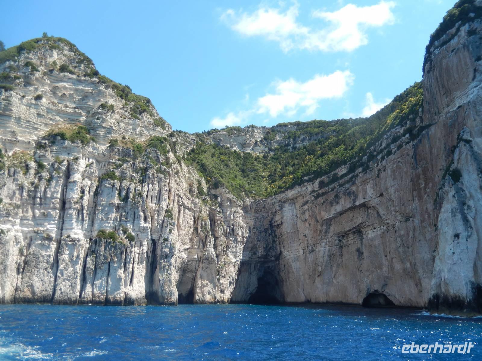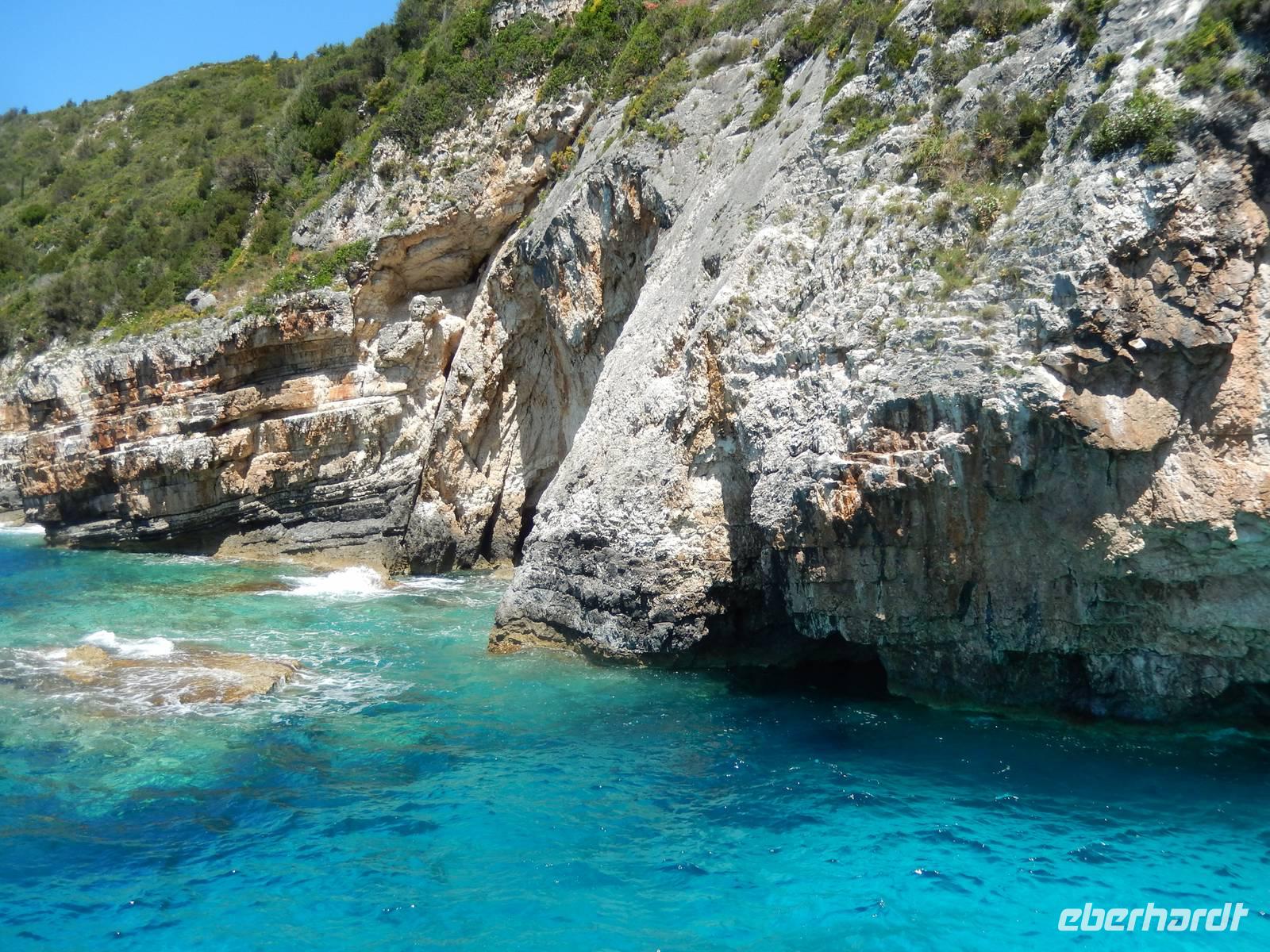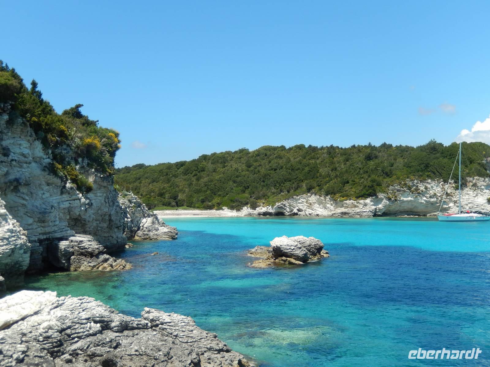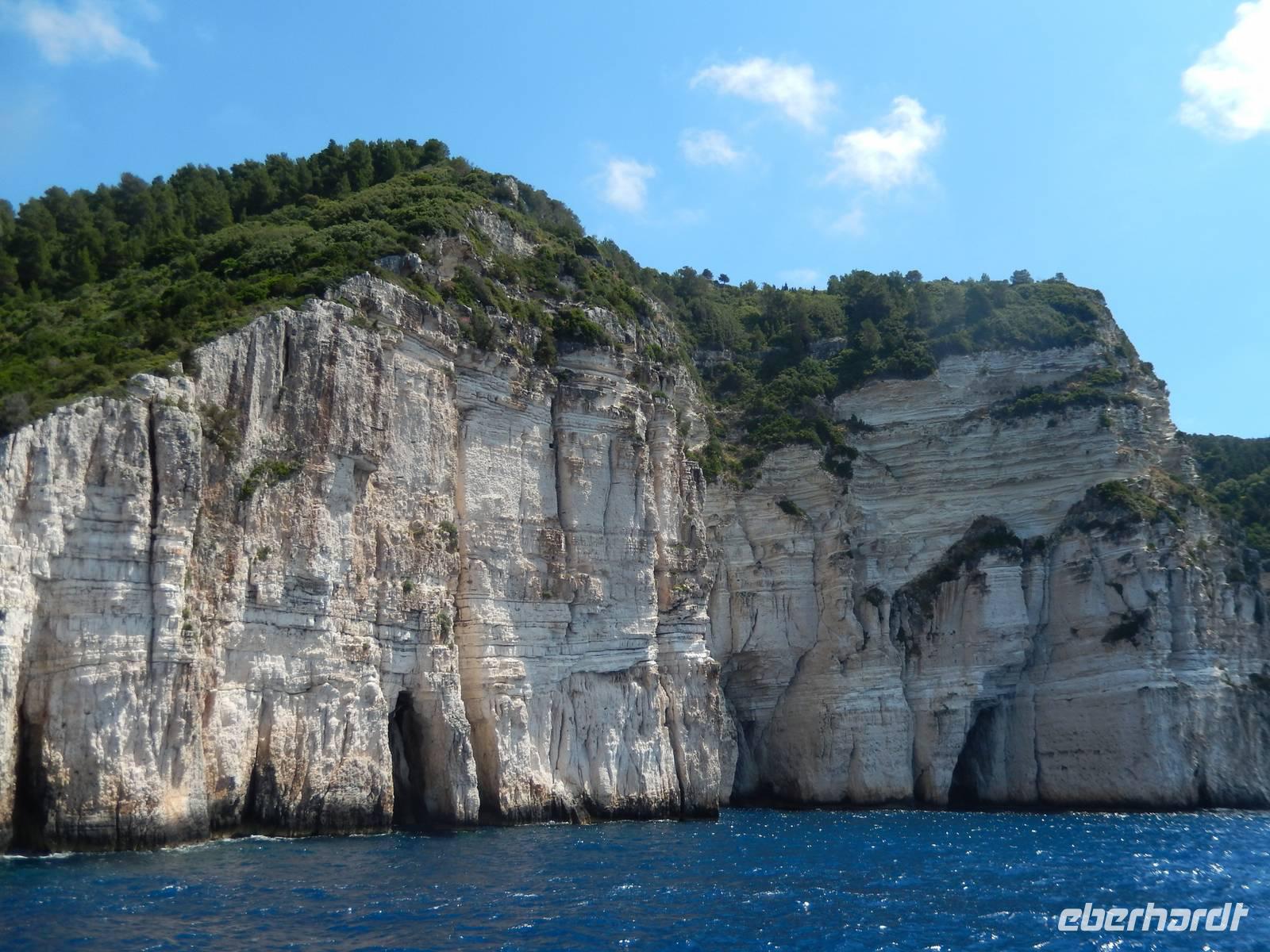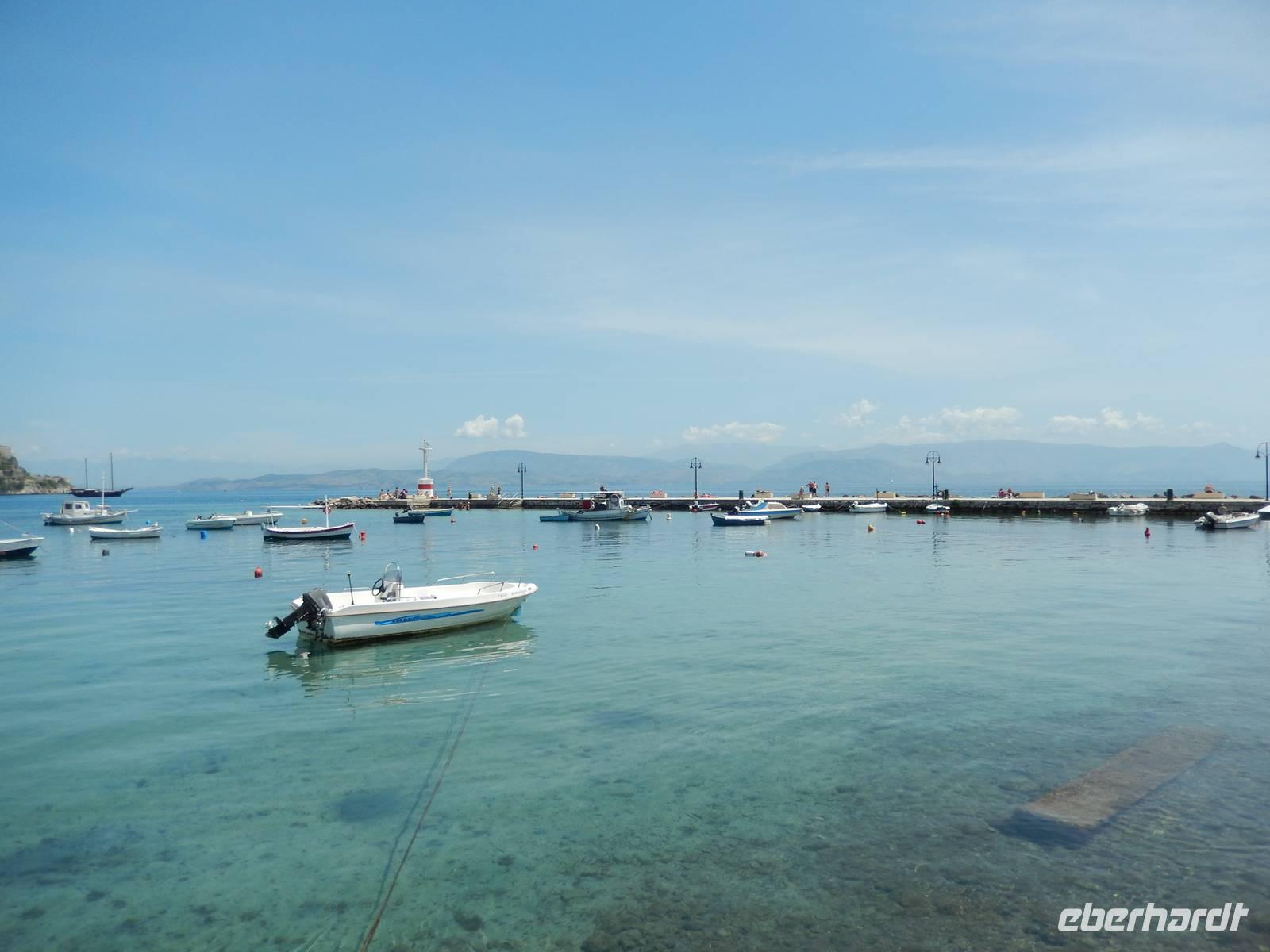 Heute gönnten wir unseren Wanderstiefeln ein kleines Päuschen und schnürten unseren Ausflugsrucksack für eine Mini-Kreuzfahrt nach Antipaxos und Paxos. Wer dies nicht wollte, hatte dafür heute frei und konnte den Tag individuell gestalten. Nachdem wir eine regenreiche Nacht hinter uns hatten und wir alles andere als optimistisch in die Wetterprognosen gingen, war widerum bei der Ankunft in Korfu-Stadt von den dunklen Regenwolken kaum noch etwas zu sehen. Es klarte auf und wir gingen an Board der „Ionnian Sun" und verweilten getreu dem Namen natürlich auf dem Sonnendeck. Wir schipperten entlang der Ostküste in den Süden, vorbei an der Alten Festung der Stadt, Benitses und schließlich waren wir ganz auf dem offenen Meer und ließen uns die salzige Briese um die Nase wehen. Zuerst fuhren wir in die Grotten von Paxos, in die widererwartend das Boot hineinfahren konnte und wir nur noch staunen konnten über die meterhohen Felswände und die Gebilde, die die Natur so geschaffen hatte. Dann ging es weiter auf die kleine Insel Antipaxos, die nur 20 Inselbewohner hat und bekannt ist für ihre kristallklaren und türkisblauen Badebuchten. Dort stoppten wir und einige nutzten die Zeit für ein Bad im erfrischenden Meer. Herrlich! Weiter ging es nun zum Hauptort der Insel Paxos, nach Gaios. Dort hatten wir einen 2-stündigen Aufenthalt um die kleinen Gassen mit seinen Tavernen, traditionellen Geschäften und die Hafenpromenade kennenzulernen und einfach nur die Seele baumeln zu lassen. Nun stand wieder eine knapp 3-stündige Rückfahrt von Gaios nach Korfu-Stadt auf dem Programm, aber da uns Petrus immer noch wohlgesonnen war, genossen wir die gute Luft und ließen die vielen neuen Eindrücke Revue passieren.
