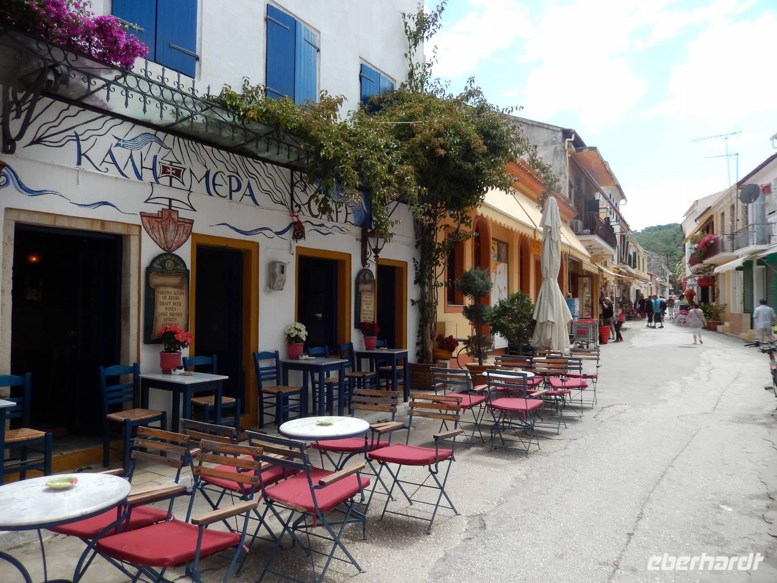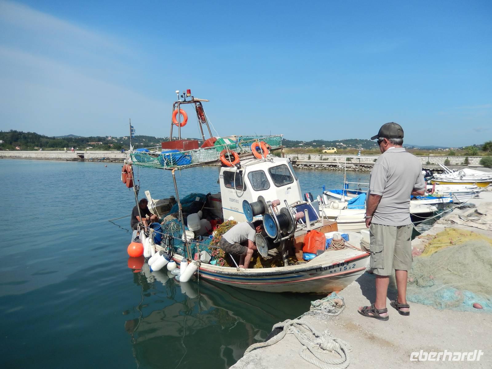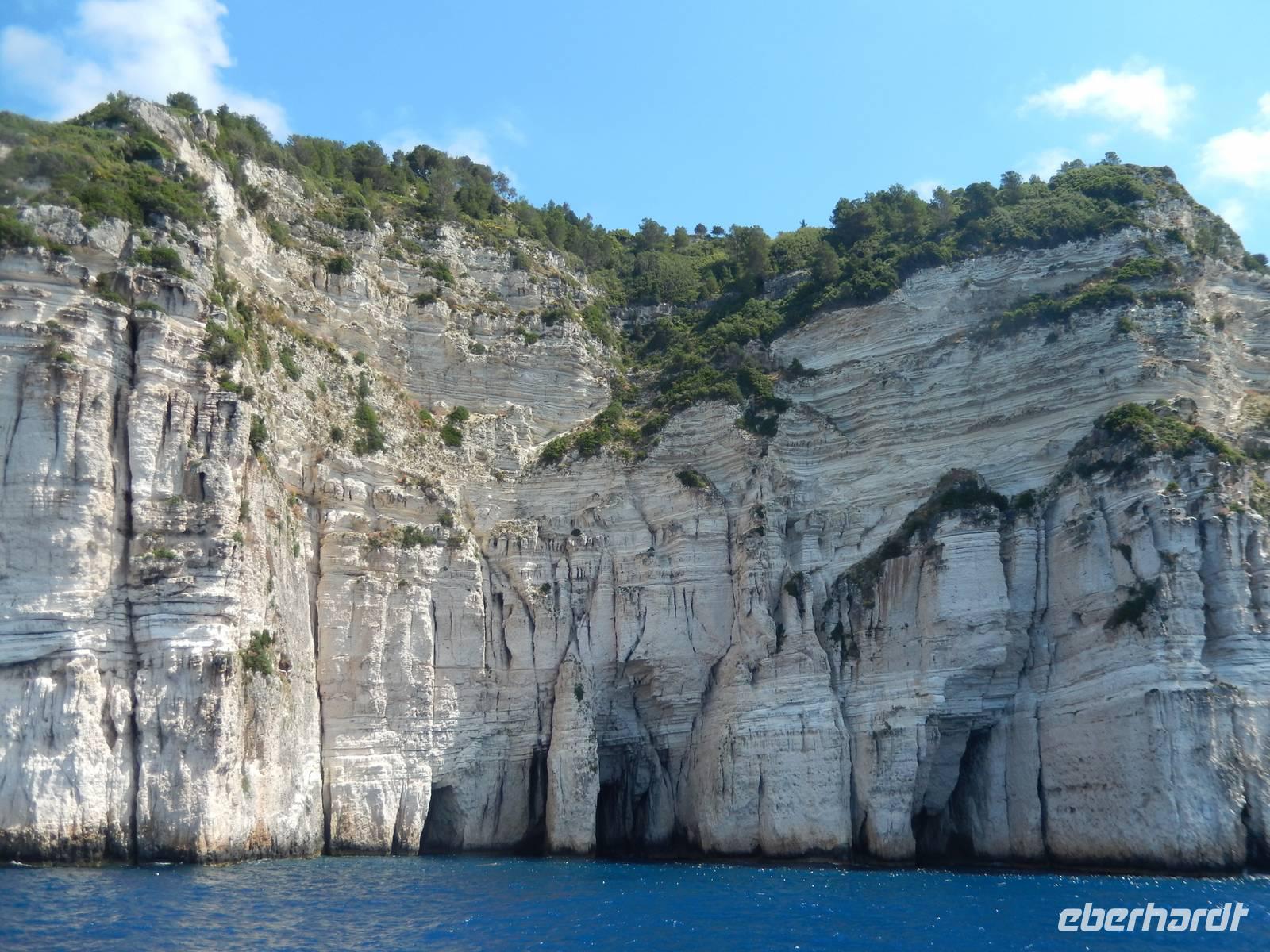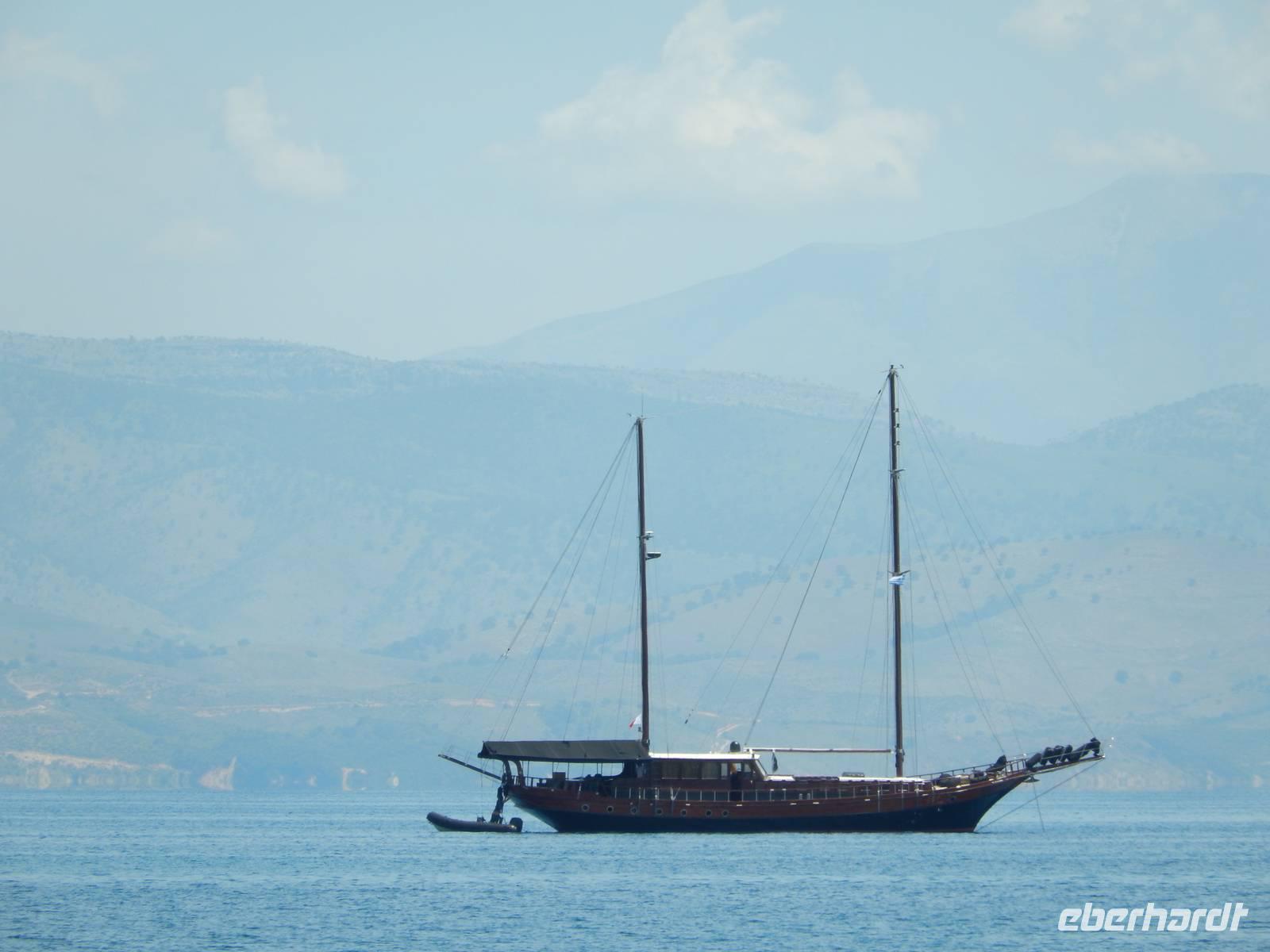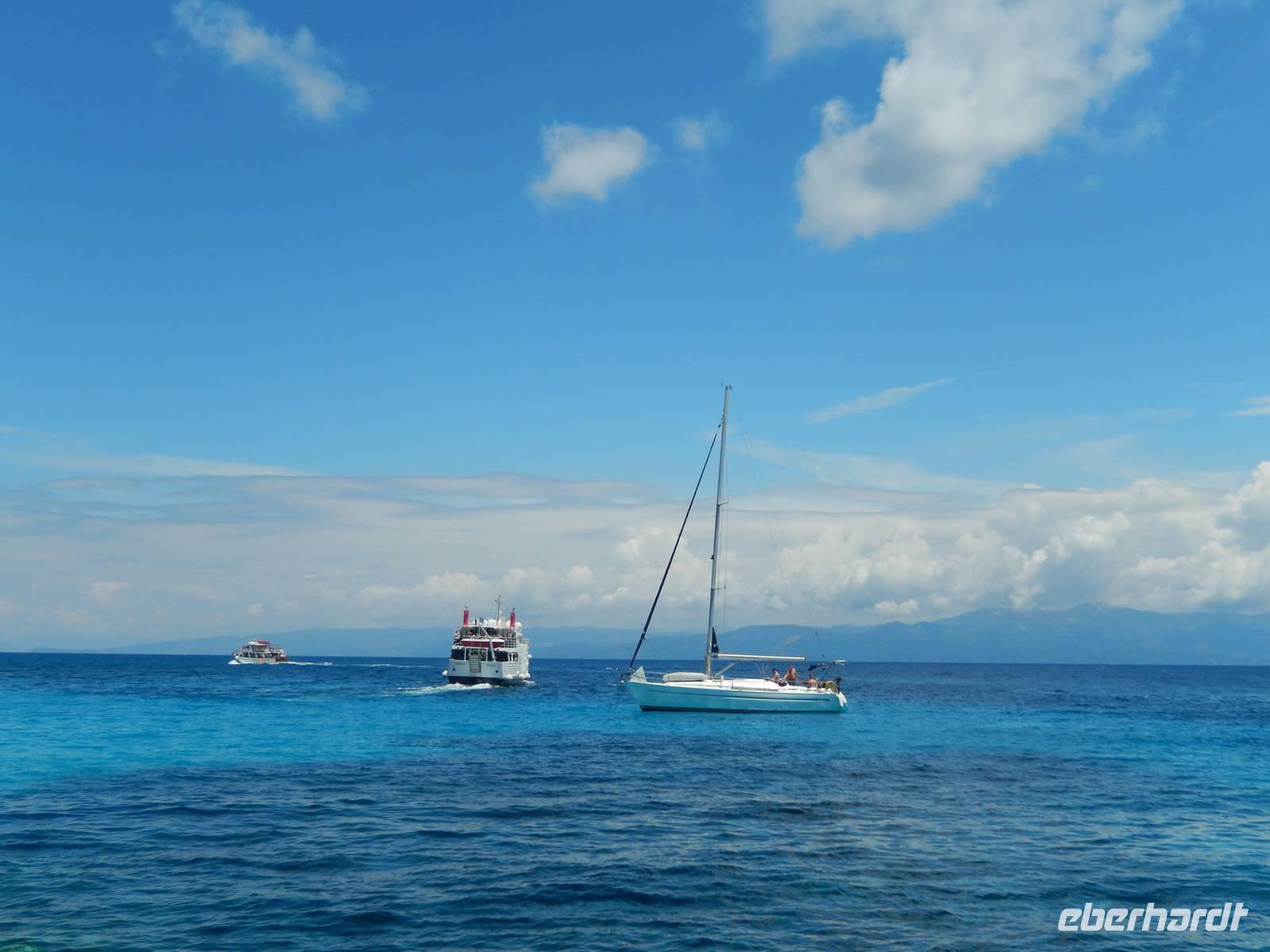Heute gönnten wir unseren Wanderstiefeln ein kleines Päuschen und schnürten unseren Ausflugsrucksack für eine Mini-Kreuzfahrt nach Antipaxos und Paxos. Wer dies nicht wollte, hatte dafür heute frei und konnte den Tag individuell gestalten. Nachdem wir eine regenreiche Nacht hinter uns hatten und wir alles andere als optimistisch in die Wetterprognosen gingen, war widerum bei der Ankunft in Korfu-Stadt von den dunklen Regenwolken kaum noch etwas zu sehen. Es klarte auf und wir gingen an Board der „Ionnian Sun" und verweilten getreu dem Namen natürlich auf dem Sonnendeck. Wir schipperten entlang der Ostküste in den Süden, vorbei an der Alten Festung der Stadt, Benitses und schließlich waren wir ganz auf dem offenen Meer und ließen uns die salzige Briese um die Nase wehen. Zuerst fuhren wir in die Grotten von Paxos, in die widererwartend das Boot hineinfahren konnte und wir nur noch staunen konnten über die meterhohen Felswände und die Gebilde, die die Natur so geschaffen hatte. Dann ging es weiter auf die kleine Insel Antipaxos, die nur 20 Inselbewohner hat und bekannt ist für ihre kristallklaren und türkisblauen Badebuchten. Dort stoppten wir und einige nutzten die Zeit für ein Bad im erfrischenden Meer. Herrlich! Weiter ging es nun zum Hauptort der Insel Paxos, nach Gaios. Dort hatten wir einen 2-stündigen Aufenthalt um die kleinen Gassen mit seinen Tavernen, traditionellen Geschäften und die Hafenpromenade kennenzulernen und einfach nur die Seele baumeln zu lassen. Nun stand wieder eine knapp 3-stündige Rückfahrt von Gaios nach Korfu-Stadt auf dem Programm, aber da uns Petrus immer noch wohlgesonnen war, genossen wir die gute Luft und ließen die vielen neuen Eindrücke Revue passieren.