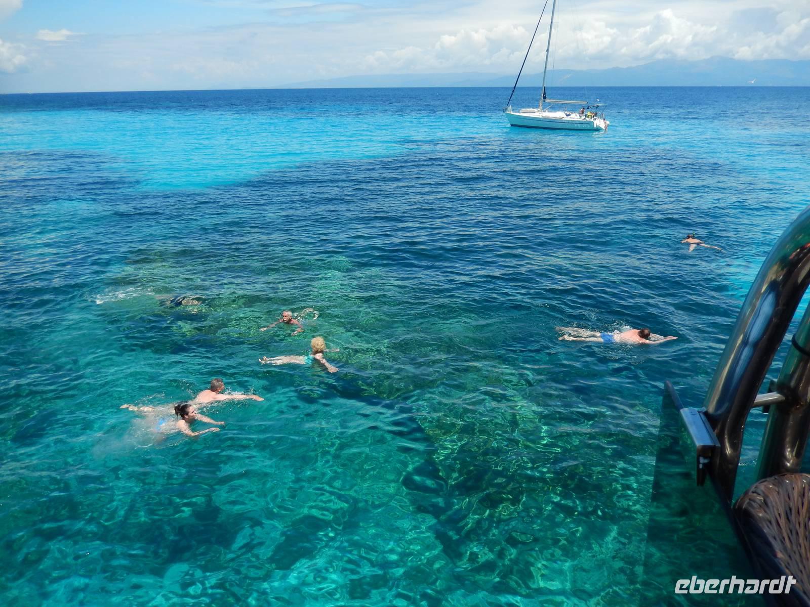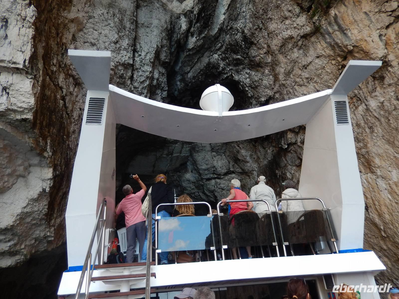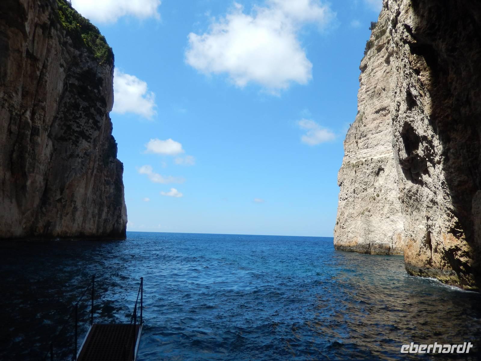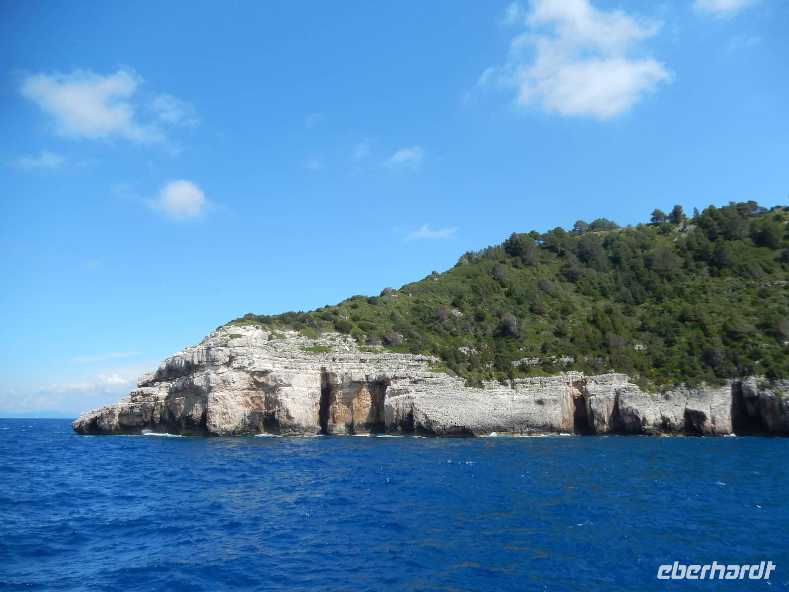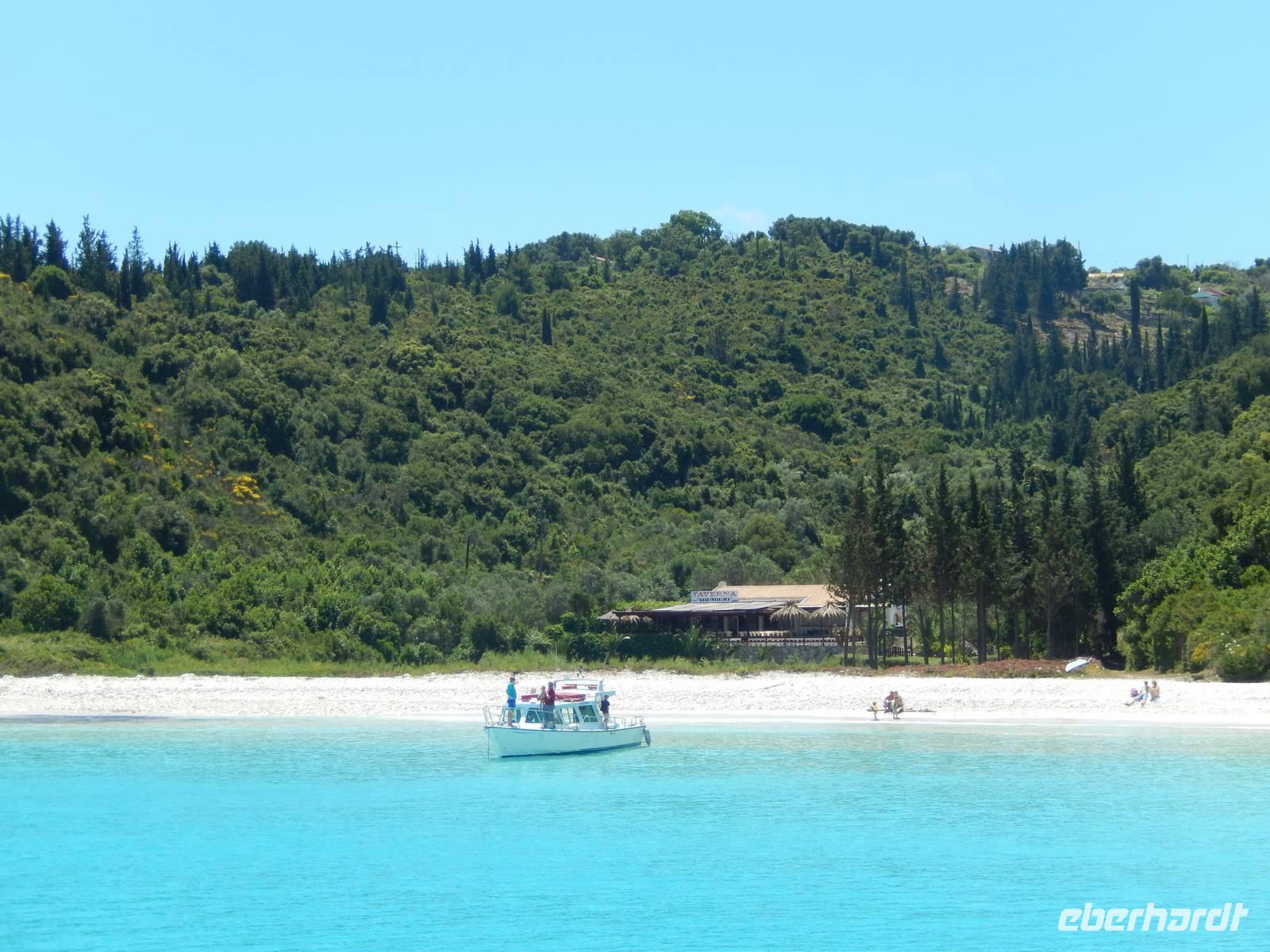 Heute gönnten wir unseren Wanderstiefeln ein kleines Päuschen und schnürten unseren Ausflugsrucksack für eine Mini-Kreuzfahrt nach Antipaxos und Paxos. Wer dies nicht wollte, hatte dafür heute frei und konnte den Tag individuell gestalten. Nachdem wir eine regenreiche Nacht hinter uns hatten und wir alles andere als optimistisch in die Wetterprognosen gingen, war widerum bei der Ankunft in Korfu-Stadt von den dunklen Regenwolken kaum noch etwas zu sehen. Es klarte auf und wir gingen an Board der „Ionnian Sun" und verweilten getreu dem Namen natürlich auf dem Sonnendeck. Wir schipperten entlang der Ostküste in den Süden, vorbei an der Alten Festung der Stadt, Benitses und schließlich waren wir ganz auf dem offenen Meer und ließen uns die salzige Briese um die Nase wehen. Zuerst fuhren wir in die Grotten von Paxos, in die widererwartend das Boot hineinfahren konnte und wir nur noch staunen konnten über die meterhohen Felswände und die Gebilde, die die Natur so geschaffen hatte. Dann ging es weiter auf die kleine Insel Antipaxos, die nur 20 Inselbewohner hat und bekannt ist für ihre kristallklaren und türkisblauen Badebuchten. Dort stoppten wir und einige nutzten die Zeit für ein Bad im erfrischenden Meer. Herrlich! Weiter ging es nun zum Hauptort der Insel Paxos, nach Gaios. Dort hatten wir einen 2-stündigen Aufenthalt um die kleinen Gassen mit seinen Tavernen, traditionellen Geschäften und die Hafenpromenade kennenzulernen und einfach nur die Seele baumeln zu lassen. Nun stand wieder eine knapp 3-stündige Rückfahrt von Gaios nach Korfu-Stadt auf dem Programm, aber da uns Petrus immer noch wohlgesonnen war, genossen wir die gute Luft und ließen die vielen neuen Eindrücke Revue passieren.