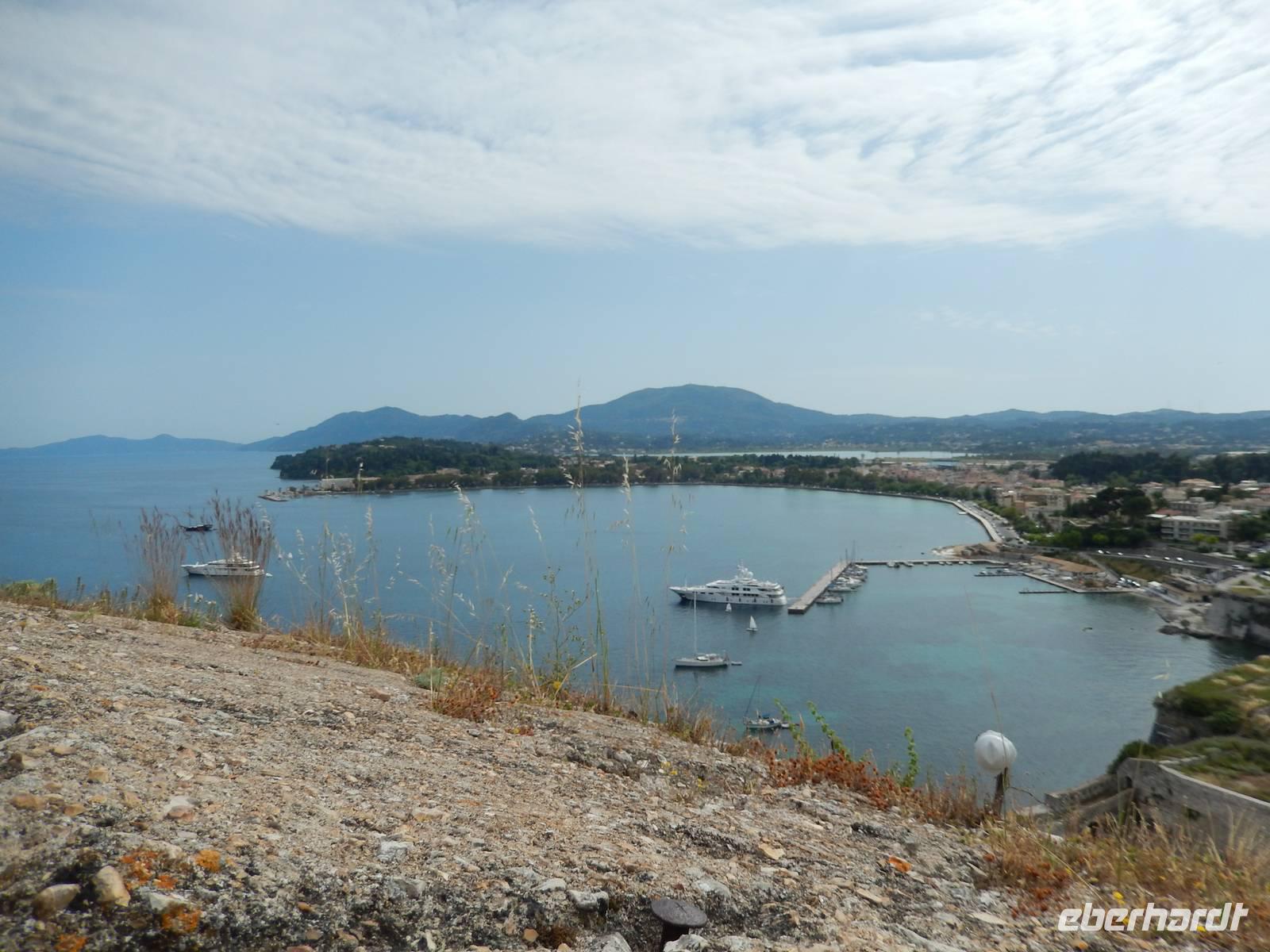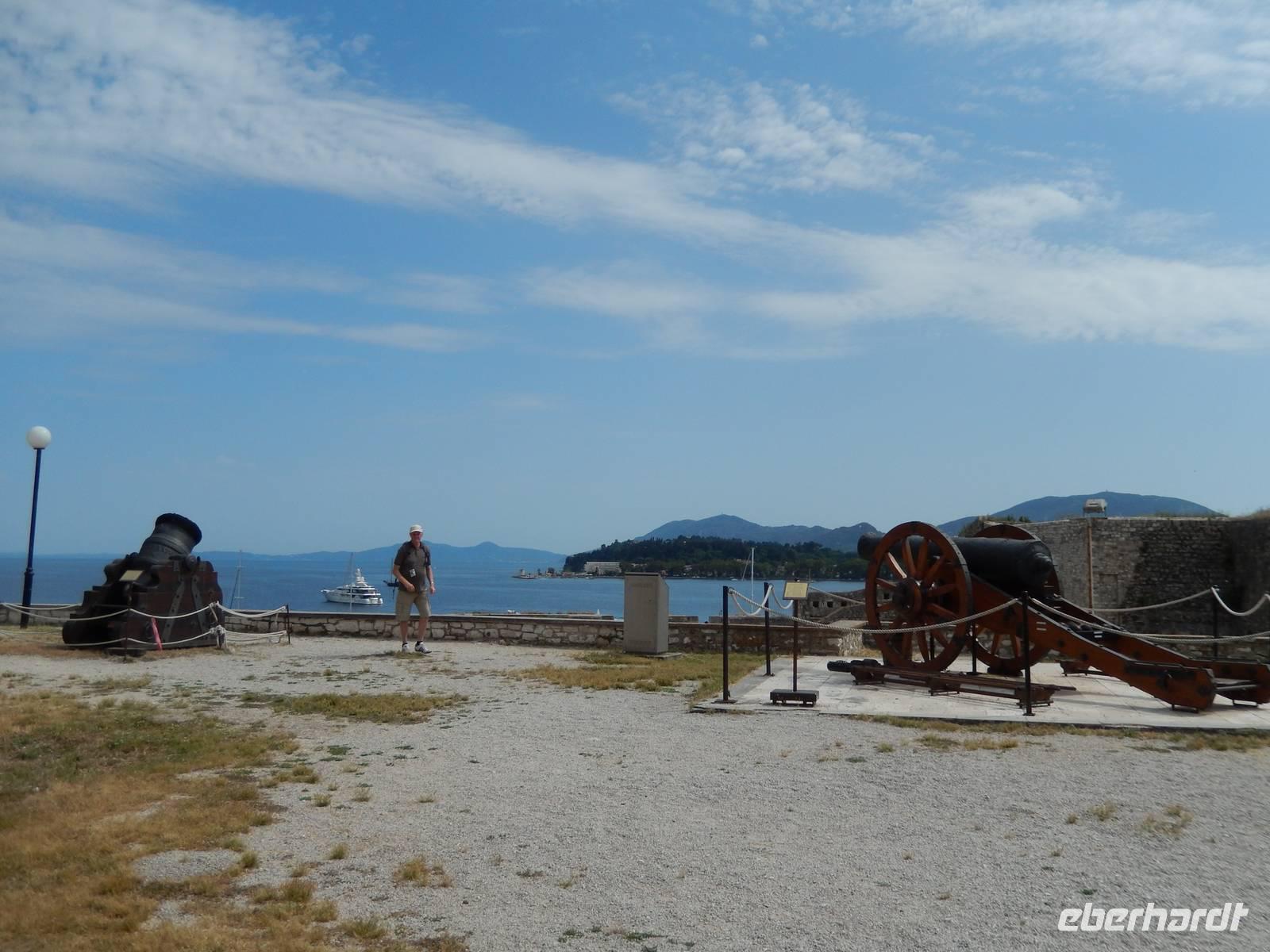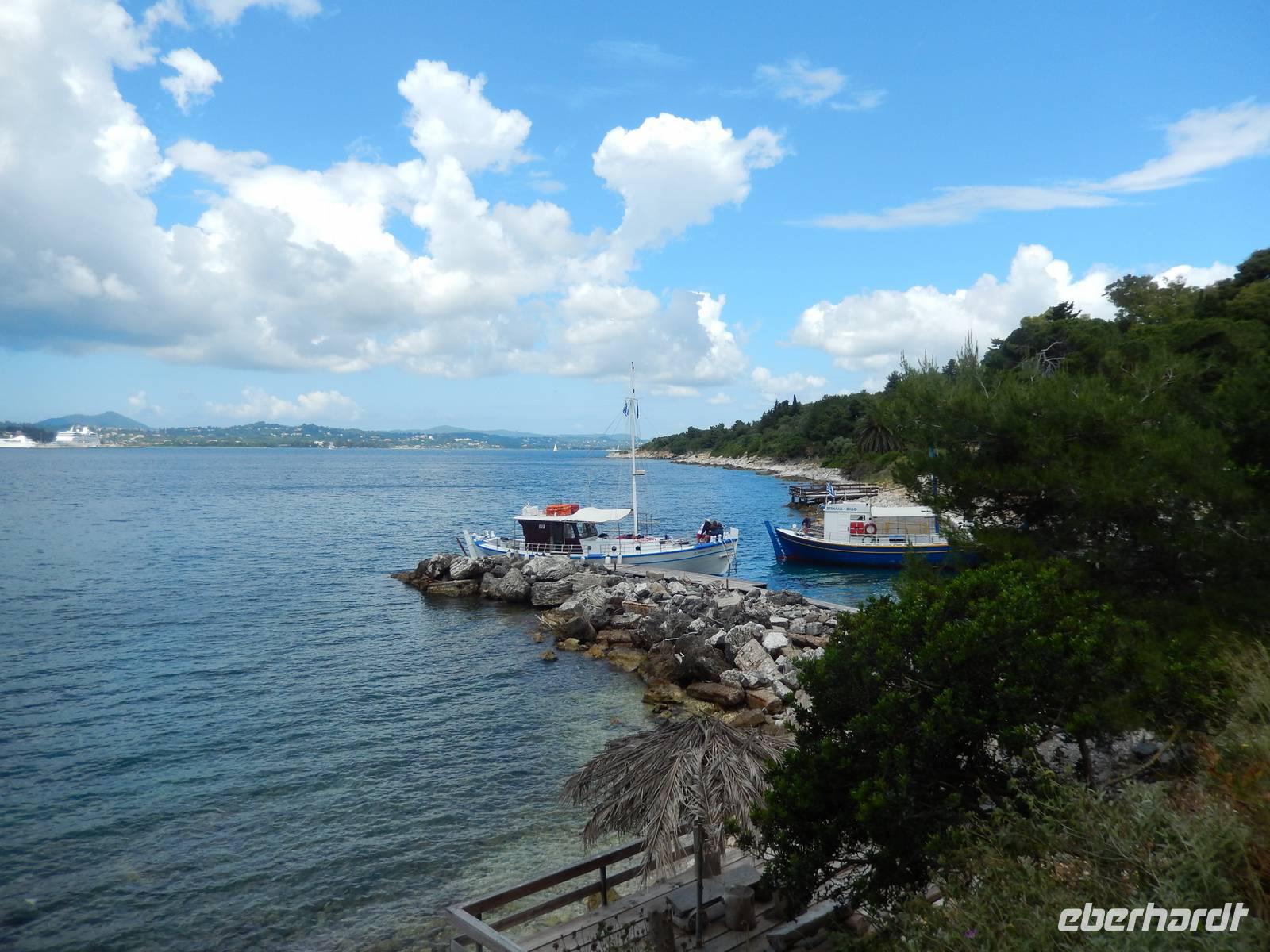 Zum heutigen Kindertag stand ein gemütliches Programm auf unserem Tagesplan. Als erstes fuhren wir nach Korfu-Stadt zum Hafen und schipperten auf die nahgelegene Insel Vidos über. Diese kleine und ziemlich menschenleere Insel erkundeten wir bei einer kleinen Wanderung. Wir hatten einen schönen Blick auf Korfu-Stadt mit seiner alten und neuen Festung und spazierten an der Küste entlang, sahen das alte Jugendgefängnis, die einstige britische Mauer und zum Schluss das serbische Mausoleum. Dann ging es wieder nach Korfu hinüber und weiter ging unsere Reise zur Weinverkostung in Triklino. Wir nahmen Platz an einem schattigen Plätzchen und bekamen roten und weißen Wein sowie kleine korfiotische Leckereien gereicht. Anschließend sahen wir einen kleinen Film über die Herstellung des Olivenöls und der Weine. Höhepunkt des Tages war sprichwörtlich der „Thron des Kaisers" im Bergdorf Pelekas. Wir wanderten also zu dem Punkt, den einst Kaiser Wilhelm zu seinem Lieblingsplatz kürte, denn der Ausblick auf das Festland und Korfu-Stadt war einfach gigantisch. Zum Abschluss des schönen Tages gab es noch ein schönes Picknick mit griechischem Salat, Tzatziki, Numbolo (korfiotischer Schinken), Salami, Fetakäse und natürlich Wein und Ouzo. Ein traumhaftes Fleckchen Erde an dem wir gern noch etwas länger verweilt hätten. Ein erlebnisreicher und sonniger Tag mit vielen schönen Eindrücken geht wieder zu Ende...