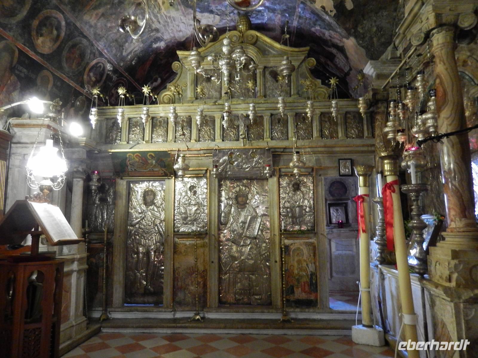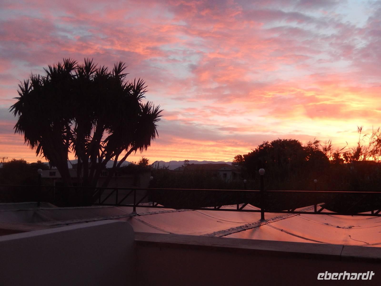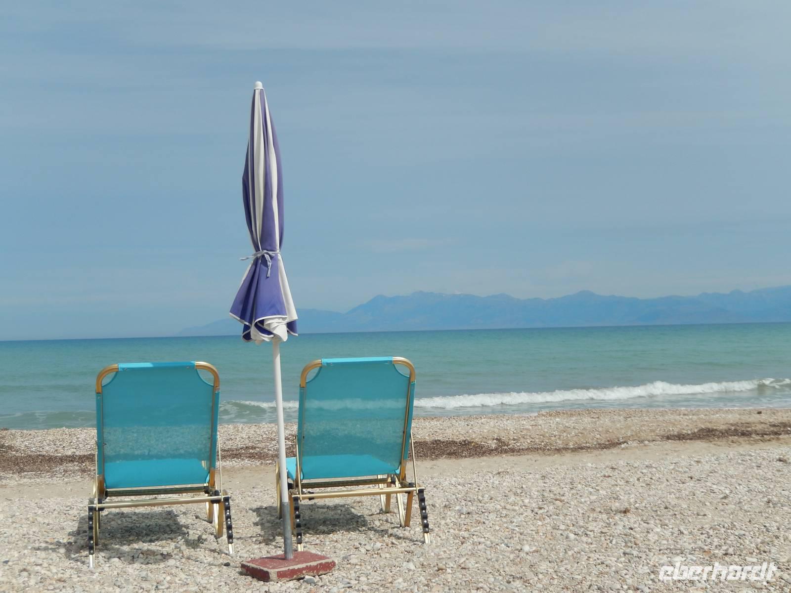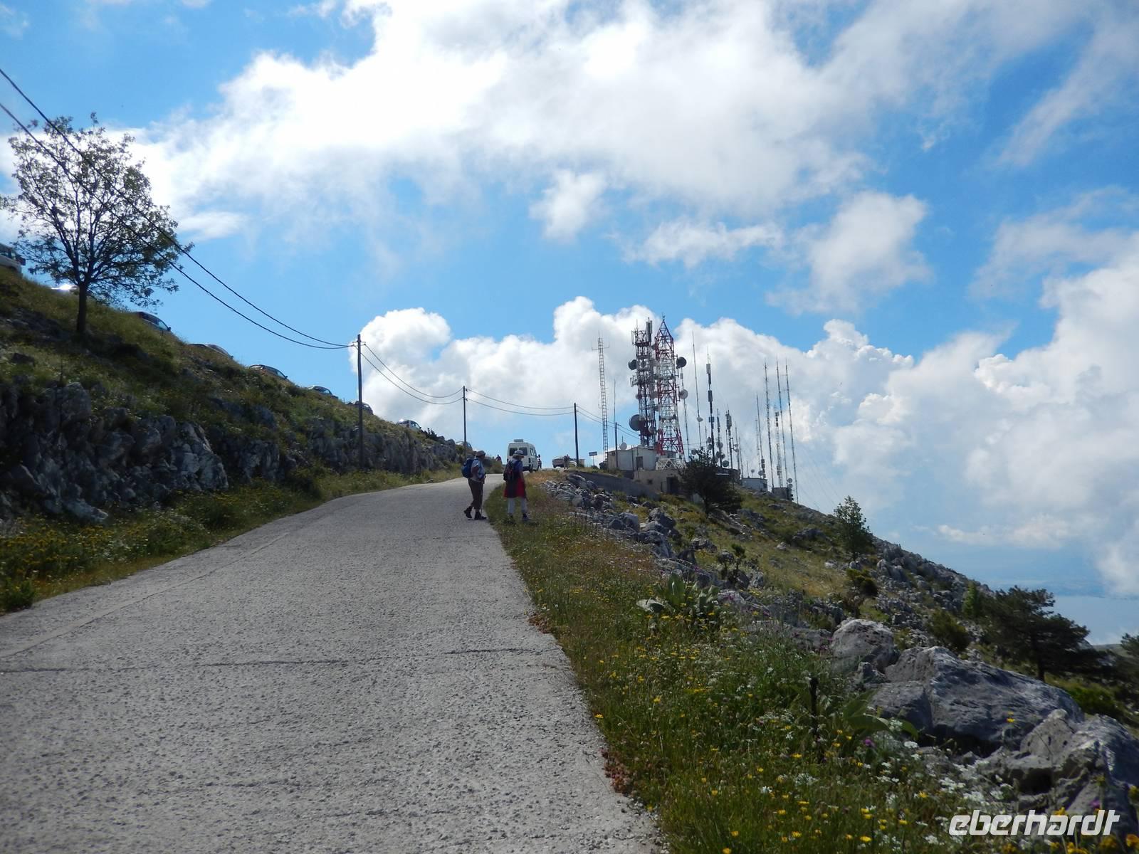 Nach einem erholsamen Tag auf den Inseln Paxos und Antipaxos wollten wir heute den höchsten Berg Korfus, den Pantokrator (906m) „erklimmen". Da das Wetter anfänglich etwas unsicher erschien, entschied sich unsere Wanderleiterin etwas weiter hinaufzufahren. Nach dem Dorf Strinlias stiegen wir nun das letzte Stück zum Berg hinauf. Oben angekommen, besichtigten wir erst einmal das Kloster, das nur noch von 2 Mönchen bewohnt war. Aber mehr ins Auge stach die riesige Antennenanlage mitten im Klosterinnenhof, die uns wie ein Fremdkörper gar nicht so recht auf unseren Fotos gefiel. Nach einer kleinen Erfrischung in dem Café und einem Gruppenfoto stiegen wir wieder ab zu unserem Ausgangspunkt, wanderten aber rechts weg um zum Dorf Pelia Perithia zu gelangen. Der Weg war zwar sehr schotterig und steinig, lief sich dennoch ganz gut. Wir kamen in dem kleinen verlassen Dorf an, das scheinbar mehr Tavernen hatte, als Wohnhäuser. Wir suchten uns die schönste mit Blick auf den Pantokrator aus und ließen den Tag ganz gemütlich bei einem Halloumi-Salat oder leckerem Kuchen ausklingen.