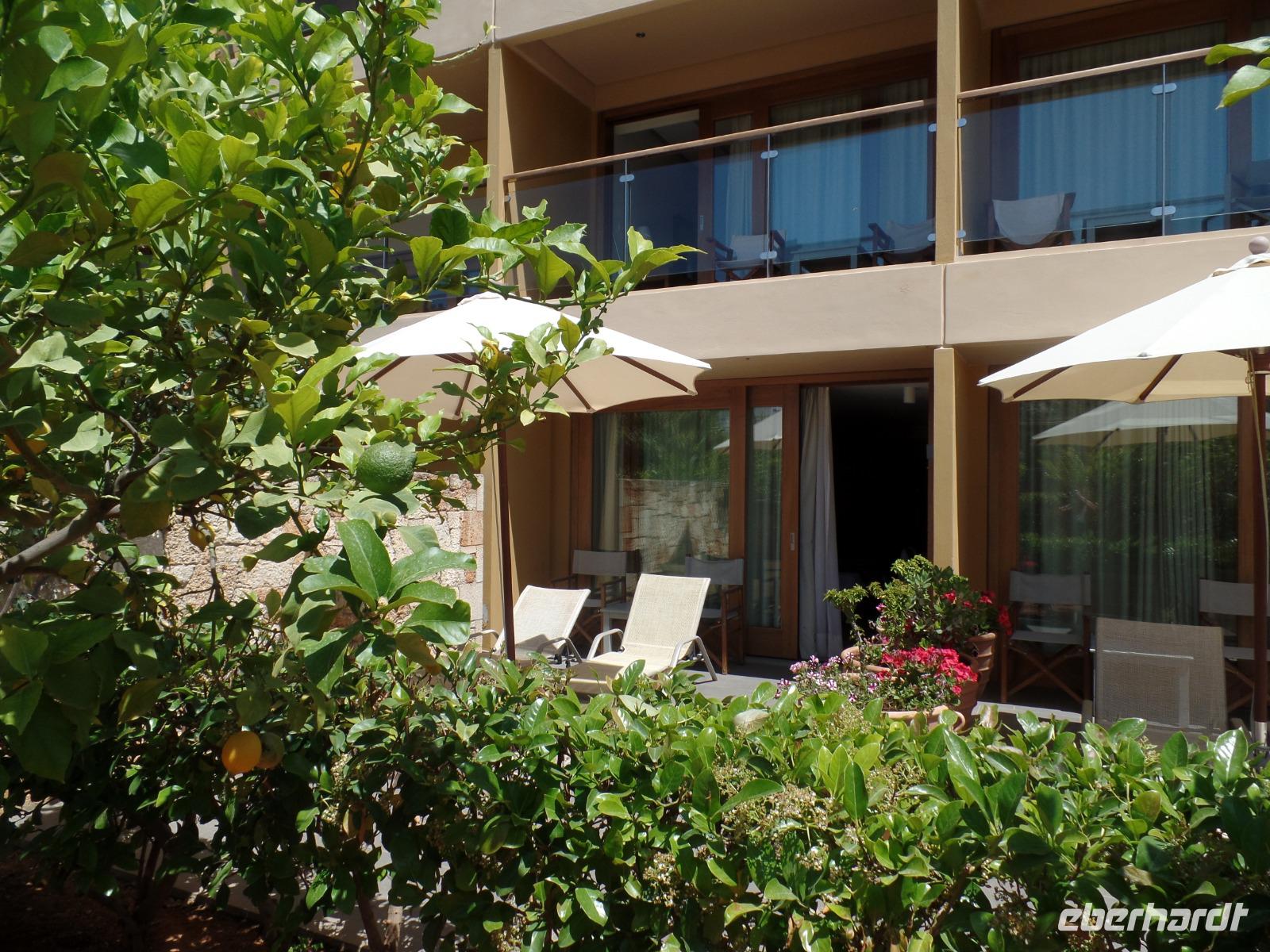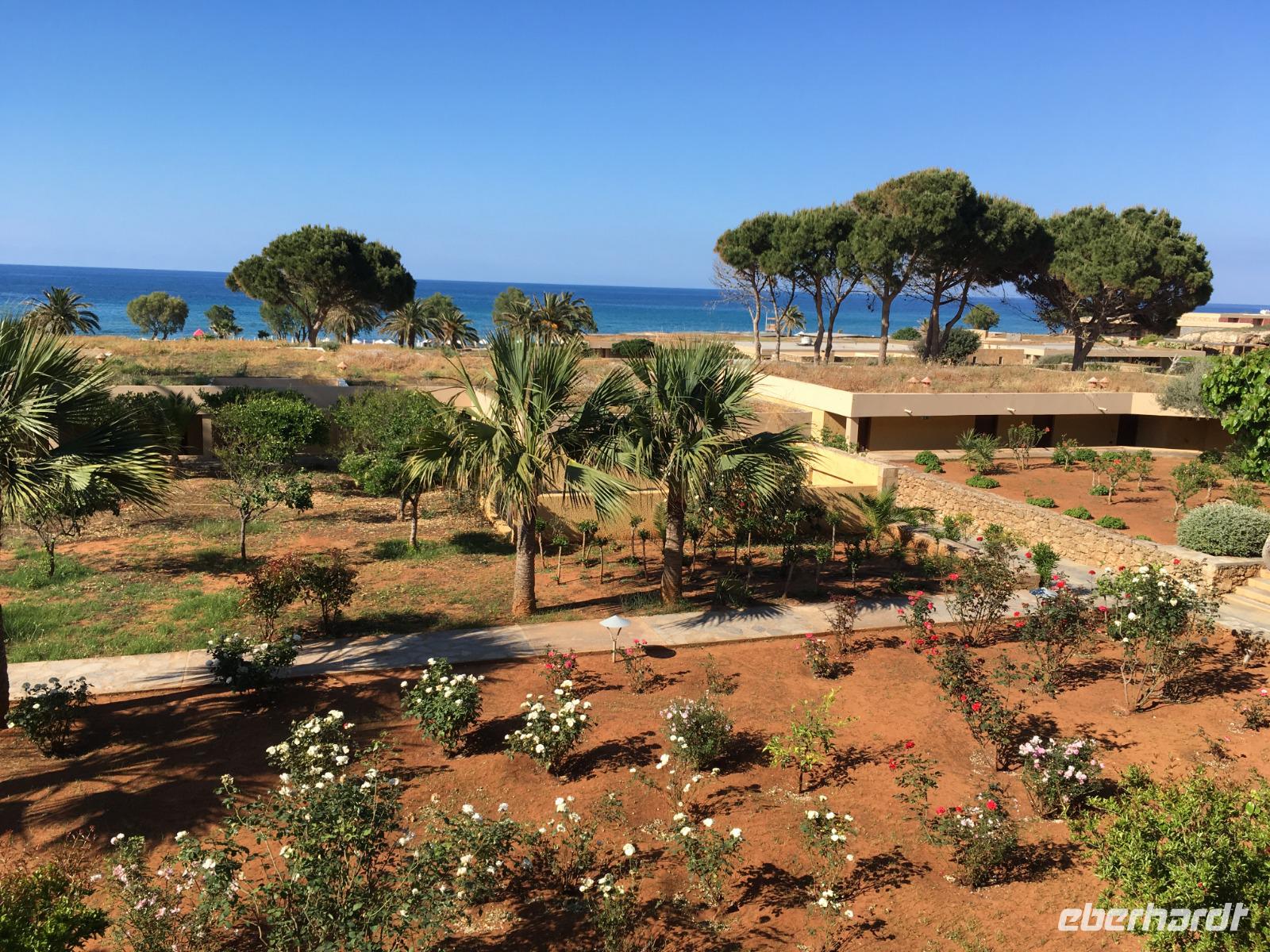 Wir fahren weiter in eine Taverne, wo wir mit fantastischer Kretaküche verwöhnt werden. Raki und kretischer Wein dürfen natürlich nicht fehlen, und total gesättigt geht es wieder zurück zu unserem Hotel. Die letzten Stunden des Tages sonnen wir uns auf unserer Hotel Terrasse oder am Strand.