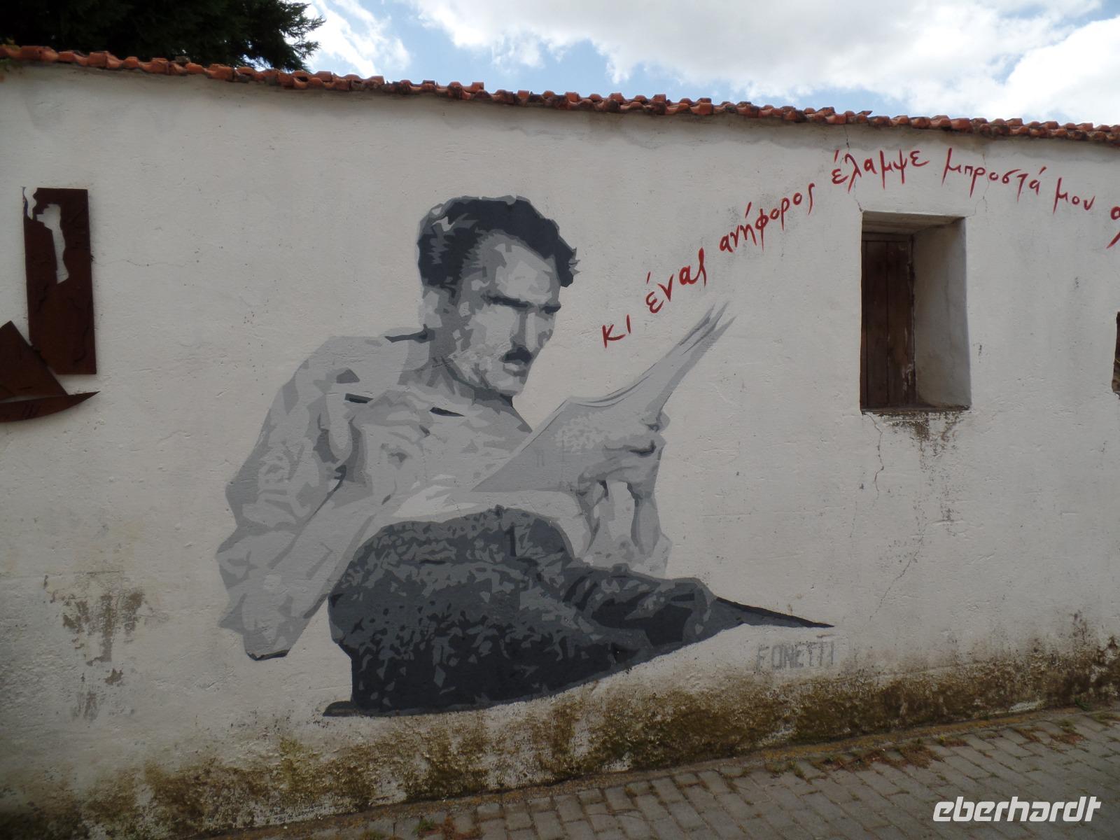 Nach etwas Freizeit fahren wir ins kleine Örtchen Myrtia, wo wir das Museum des bedeutenden Schriftstellers, Politikers und Philosophen Nikos Kazantzakis besuchen. Die Griechen sind sehr stolz auf ihn. Wir erfahren viel Interessantes über sein Leben in einem Film und während der Besichtigung. Uns war gar nicht bewußt, dass er Alexis Sorbas geschrieben hat.
