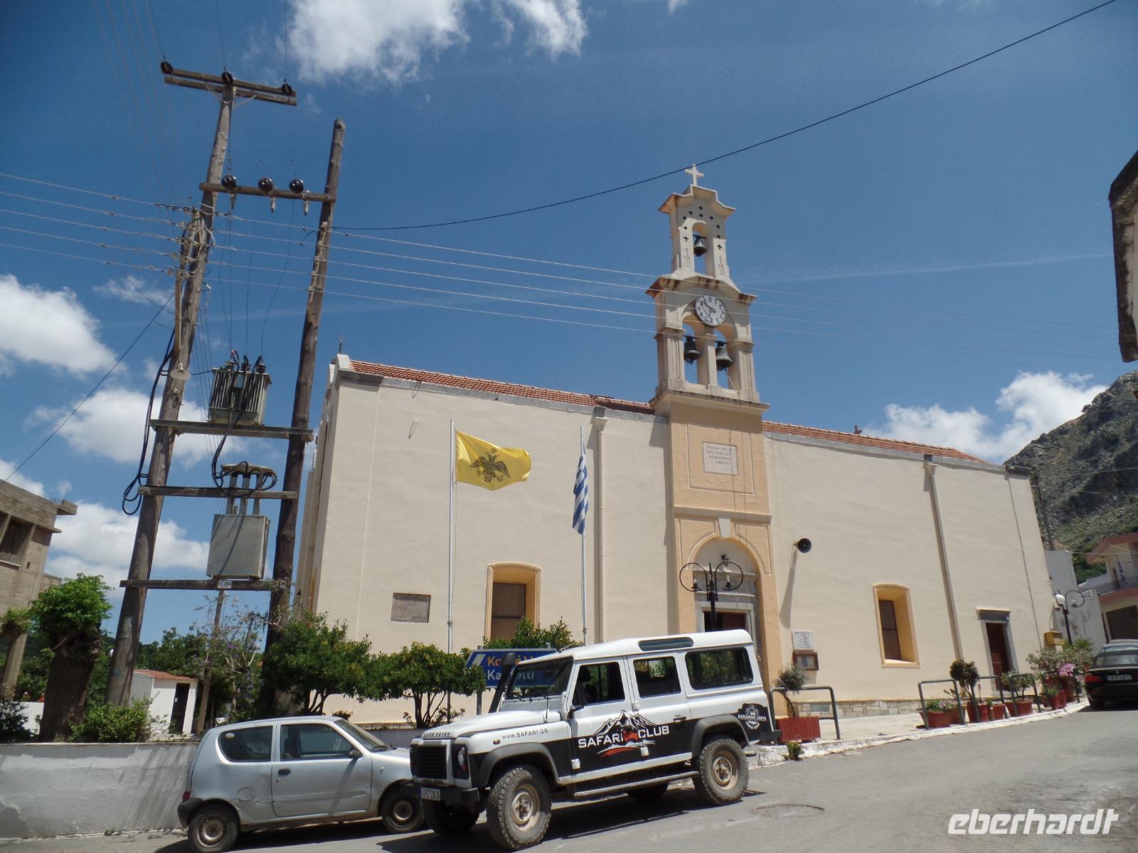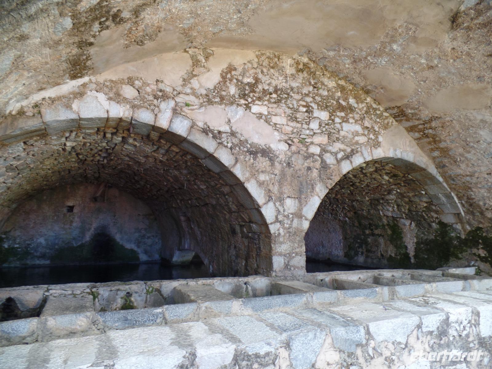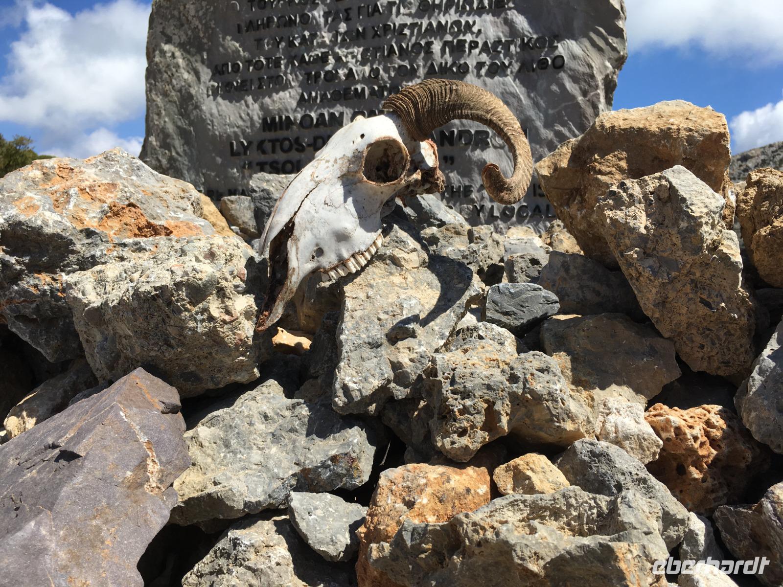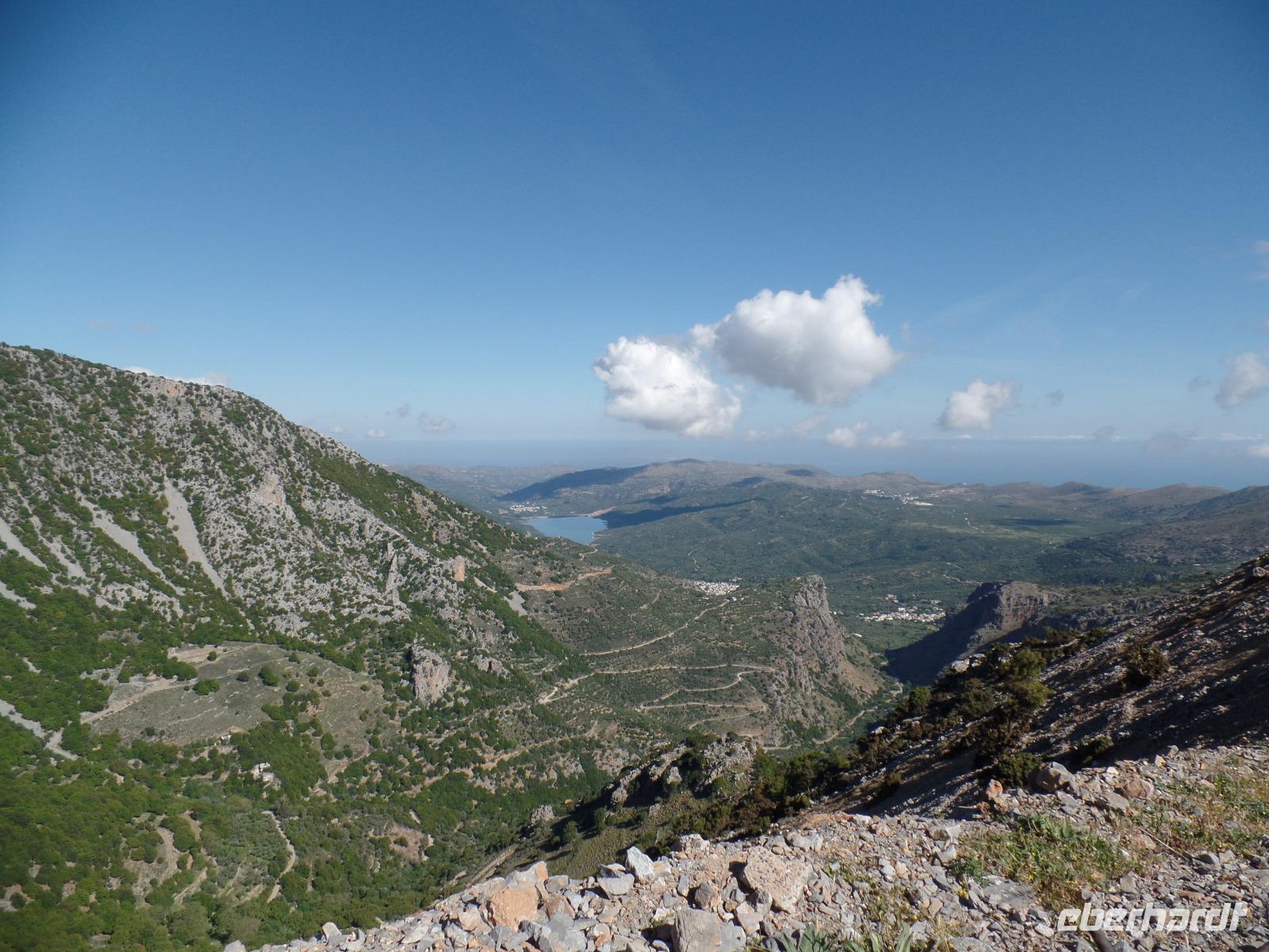 Unsere Fahrer Thomas und Marius fahren uns sicher den ganzen Tag auf holprigen Straßen durch diese herrliche Berglandschaft. Zuerst ein Stopp im Bergdorf Krasi, wo wir die über 2000 Jahre alte Platane bewundern. Hier können wir auch sehen, wie mühsam die Dorffrauen früher ihre Wäsche waschen mussten. Ein kleiner Spaziergang und dann geht es über den Ambelos -Pass in 900 m Höhe zur Lassithi-Hochebene. Hier oben stehen noch die Ruinen von alten Getreidemühlen. Vom Pass haben wir einen herrlichen Blick in die Bergwelt, durch die wir später fahren. In den oberen Bergen liegt sogar noch Schnee. Der Winter war dieses Jahr auf Kreta sehr lang und nass, so dass man jetzt erst beginnt, die berühmten Lassithi-Kartoffeln zu legen. Keiner von uns möchte die Kraft aufwenden, um in die Zeus-Höhle hinauf und die Treppen dann hinab zu steigen.