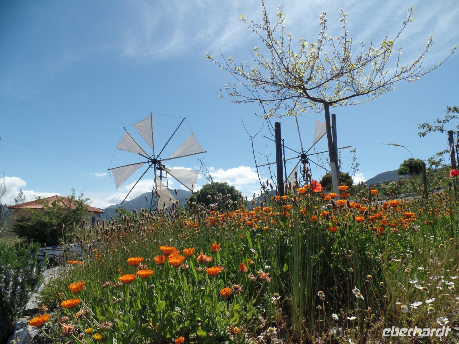 Heute fahren wir mit zwei Jeeps auf die Lassithi -Hochebene, mehr als 800 m über dem Meer gelegen. Hier wird seit der Antike intensiv Landwirtschaft betrieben.
