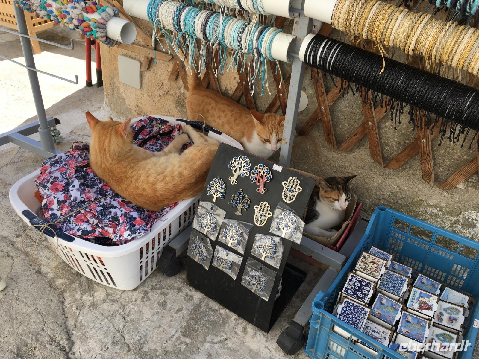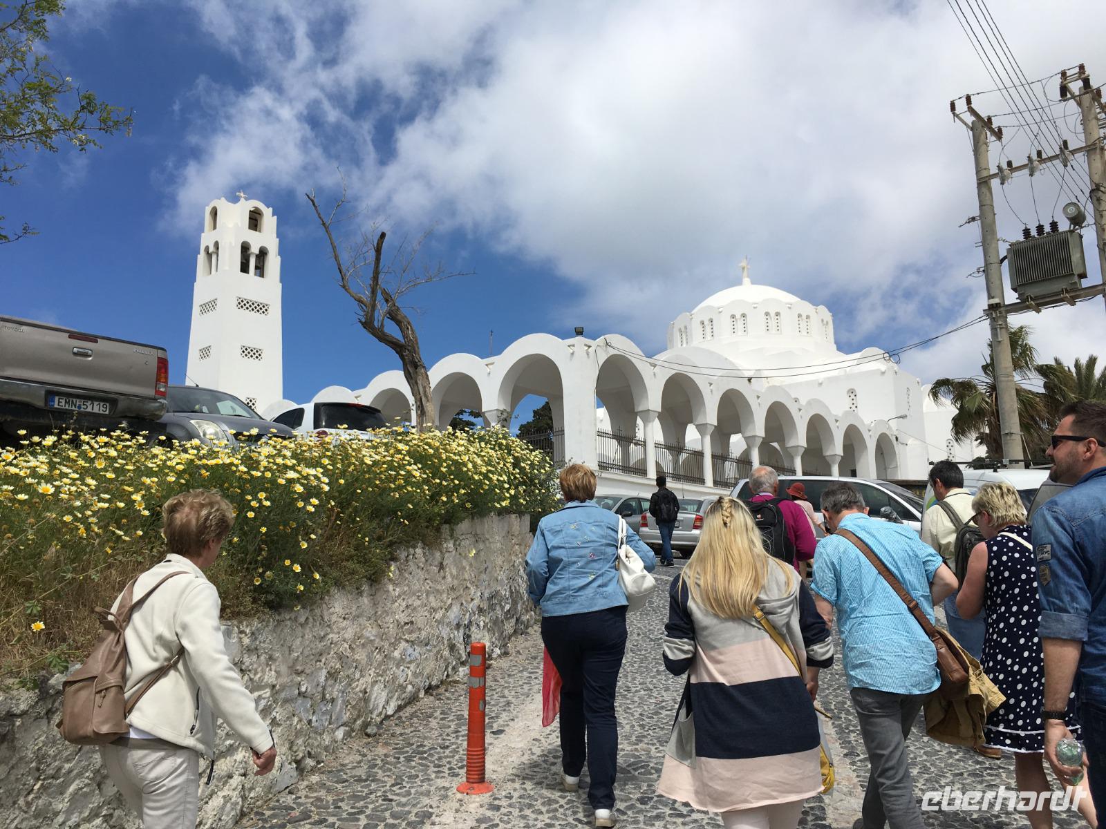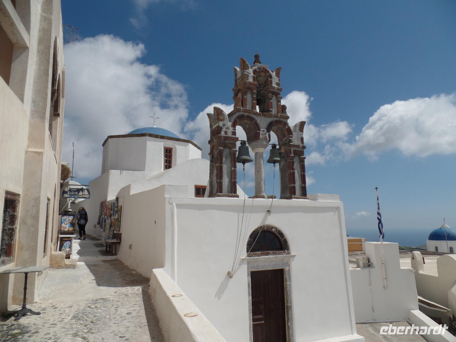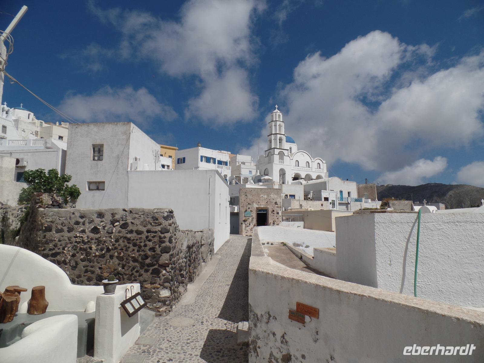 Ein Kleinbus erwartet uns und bringt uns die Serpentinen hinauf zur Hauptstadt der Insel, nach Thira. Wir haben Freizeit, um durch die Gassen zu bummeln und die tollen Fotomotive für unsere Kamera zu entdecken. Geschäfte reihen sich an Geschäfte, wer soll den ganzen Schmuck kaufen?