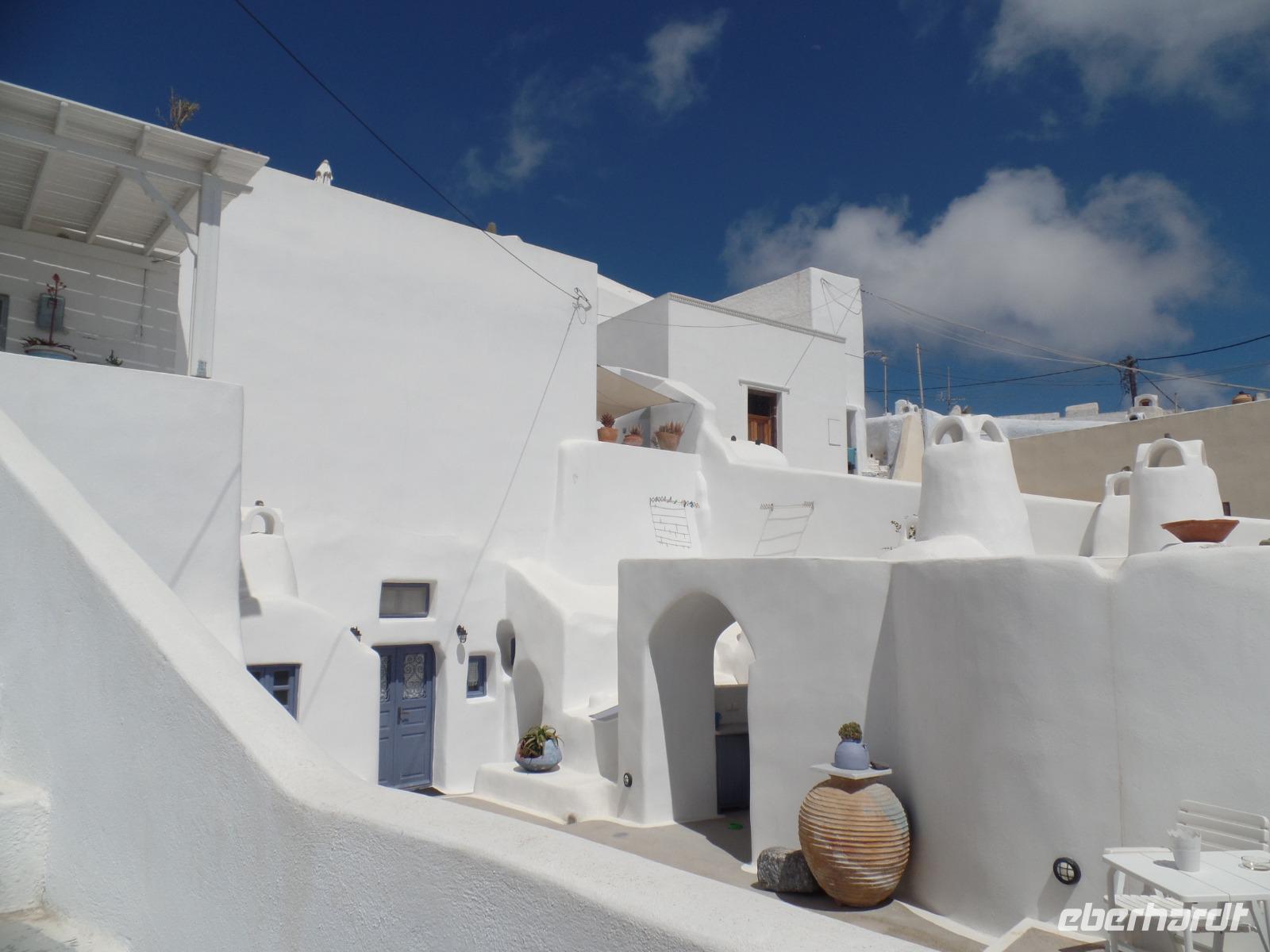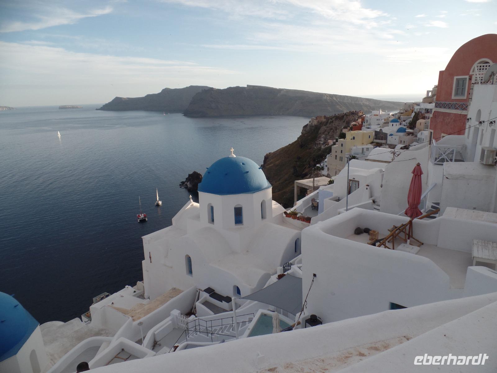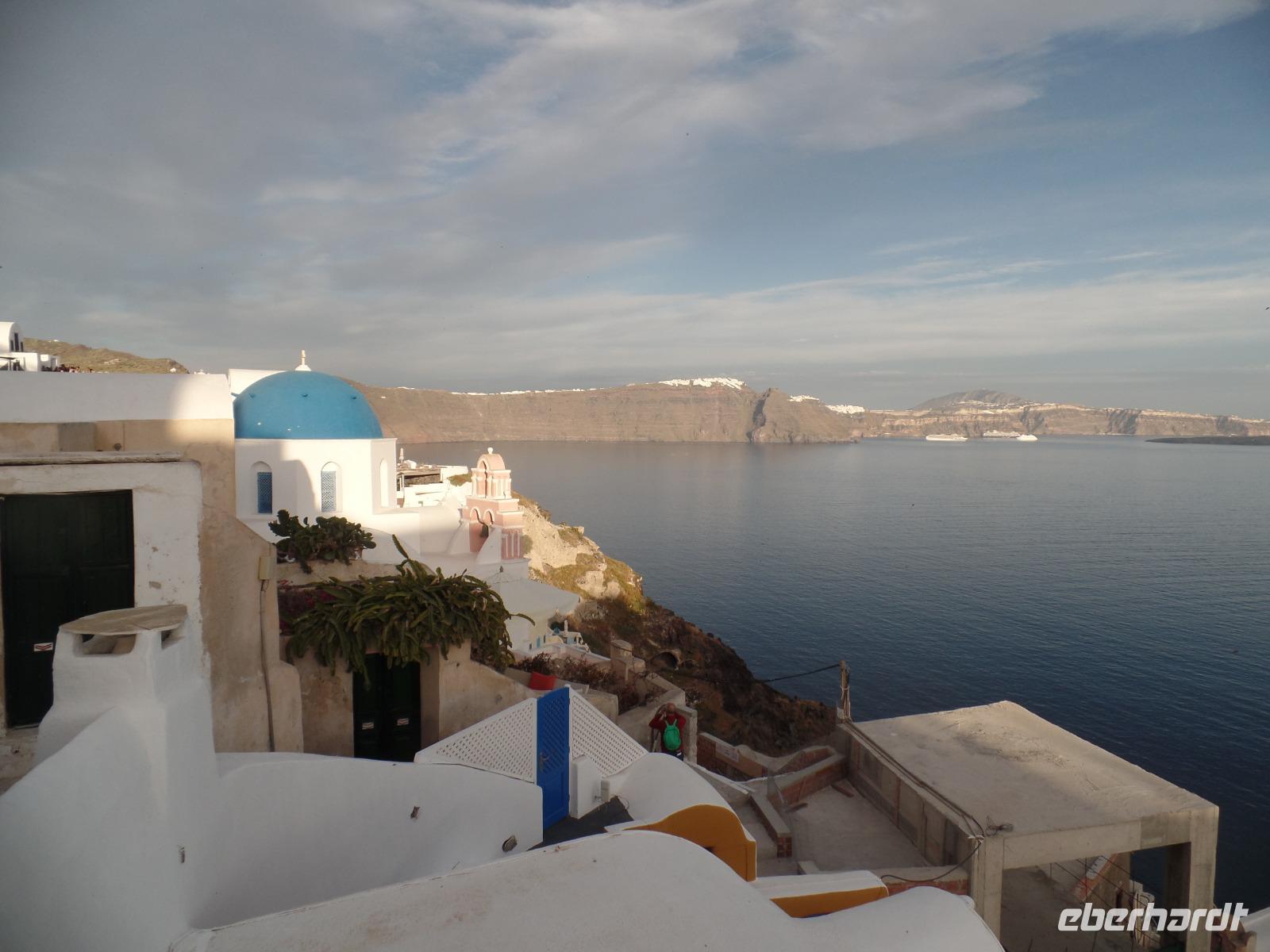 Wir alle kennen die Fotos von der Steilküste mit den weißen Häusern, den blauem Kuppeln der Kirchen, aber nun sind wir bald in der Postkartenidylle mittendrin !