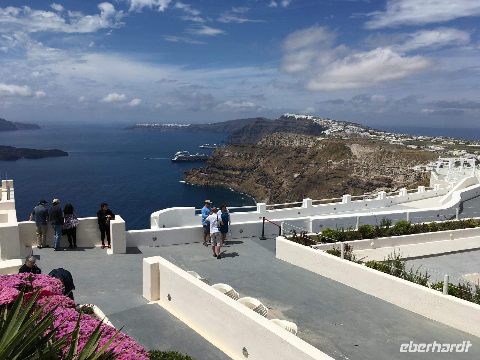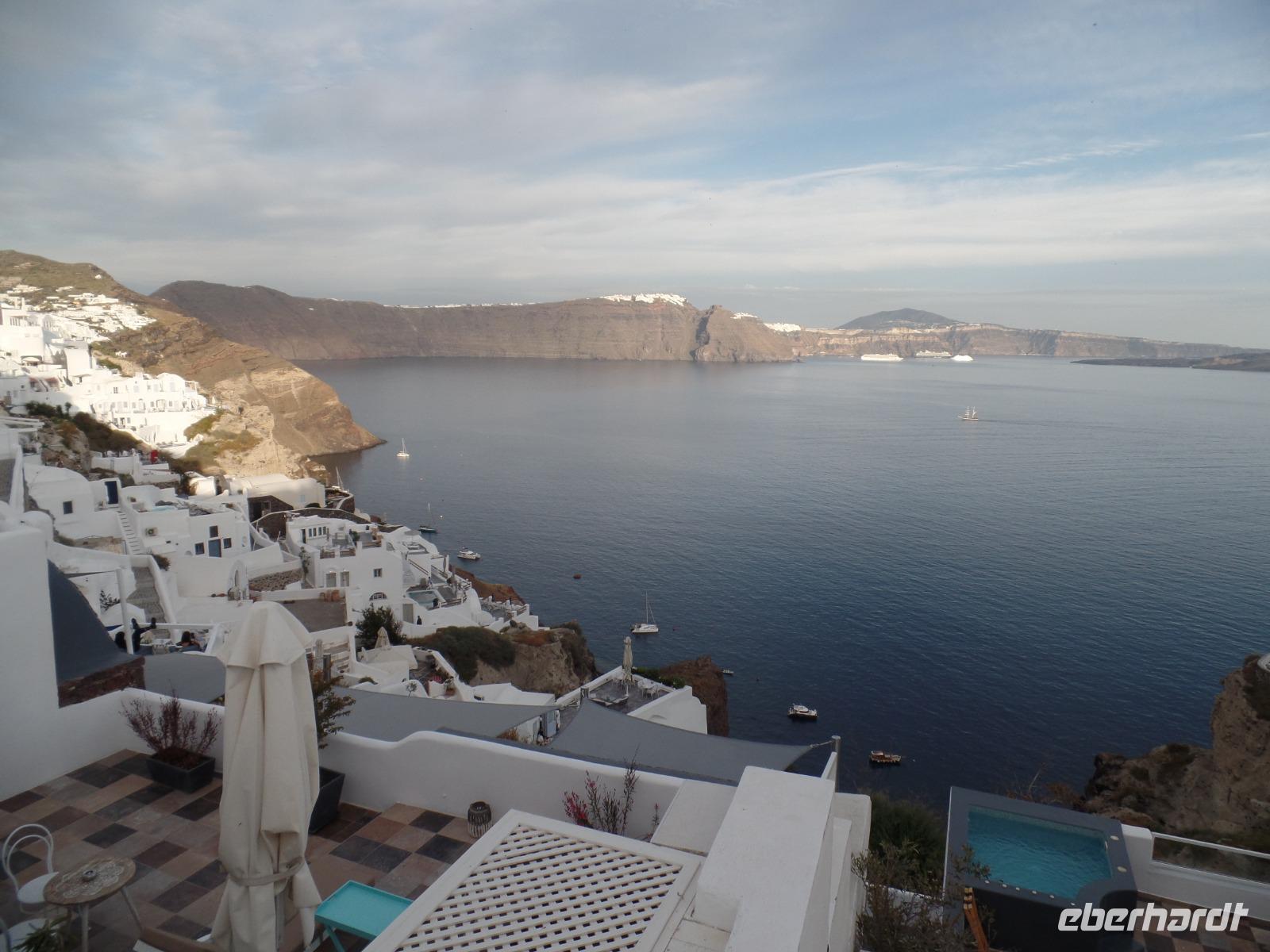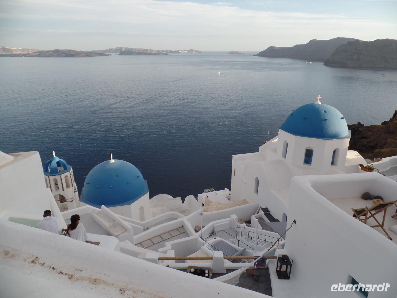 Wir alle kennen die Fotos von der Steilküste mit den weißen Häusern, den blauem Kuppeln der Kirchen, aber nun sind wir bald in der Postkartenidylle mittendrin !