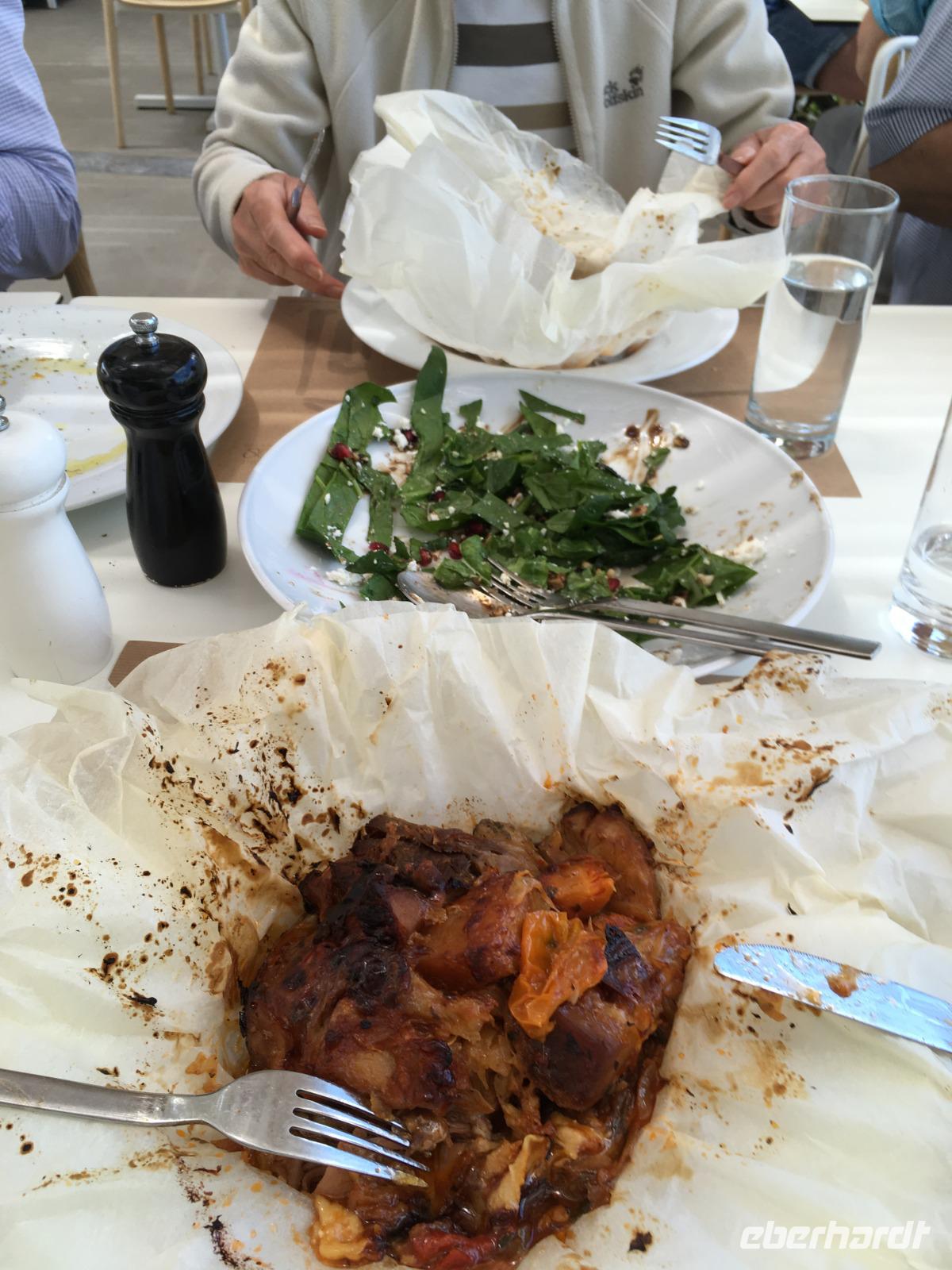 Wir essen heute außerhalb des Hotels im beliebten Restaurant Beachcomber. Wir erleben wieder kulinarische Höhepunkte der griechischen Küche. Doch wir sind noch so satt vom Grillen auf dem Schiff, dass wir beim besten Willen nicht aufessen können. Es tut uns sehr leid, aber bei der nächsten Reise sollte das Abendessen auf einen anderen Abend verlegt werden.