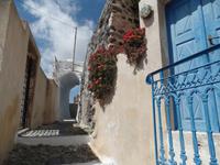 Weiter gehts nach Pyrgos, um in einer modernen Taverne wieder ein vorzügliches Mittagsmenü zu genießen. Anschließend spazieren wir über die engen verwinkelten Treppen des kleinen Ortes. Hier finden wir noch das alte unberührte Santorin, weitgehend ohne Touristen - ein Traum für jeden Fotografen. Ein begeisterndes Motiv nach dem anderen.