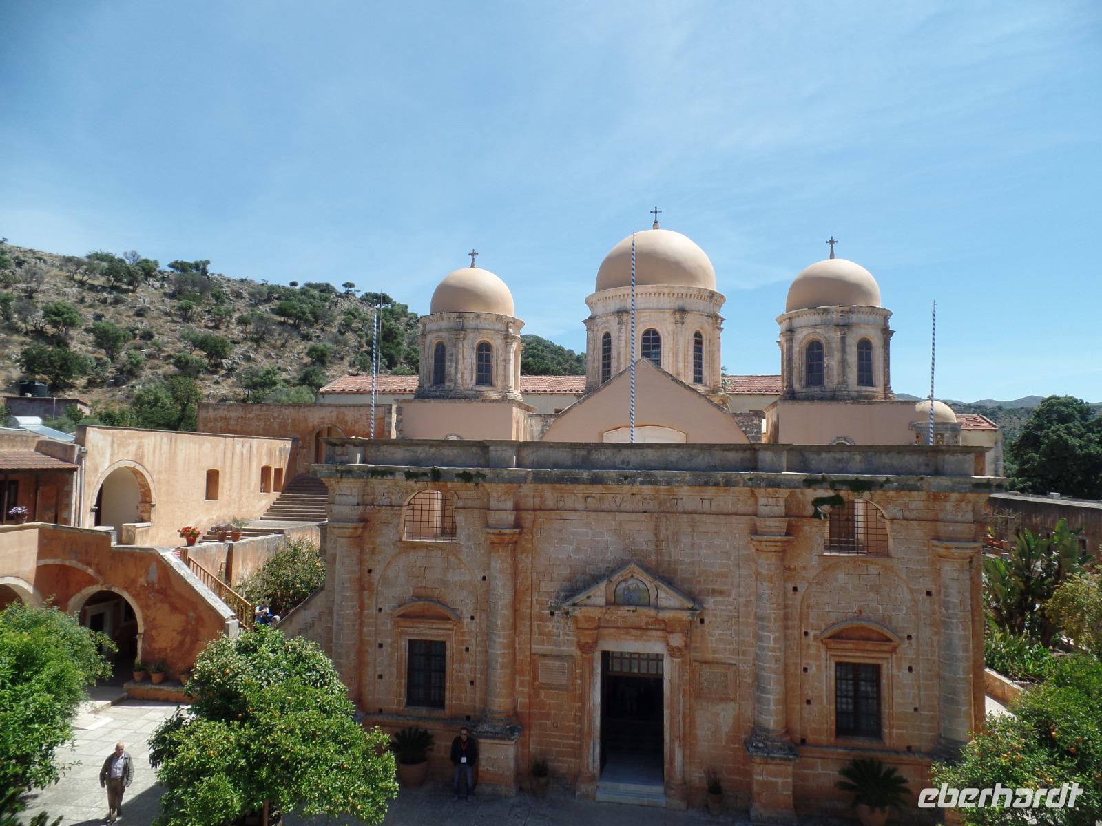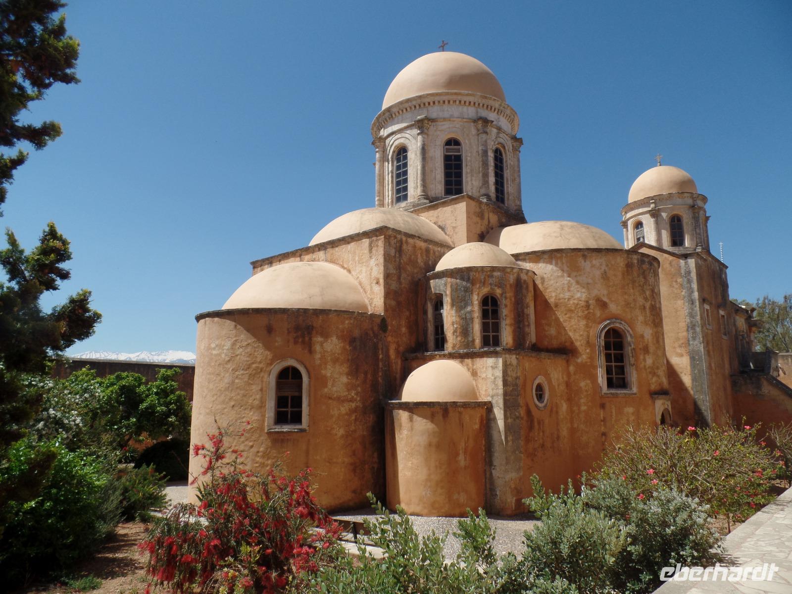 Eine sehr schöne Fahrt führt entlang der Küste mit Blick auf die schneebedeckten Berge der Lefka Ori. Auf der Halbinsel Akrotiri besichtigen wir das Kloster Moni Agia Triada Tzagalorolon. Im dazugehörigen Klosterkeller verkosten wir bei einem kleinen Imbiss drei vorzügliche Weine.