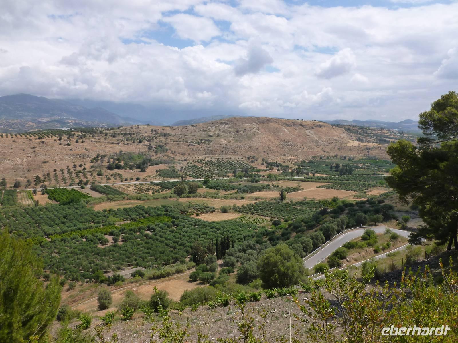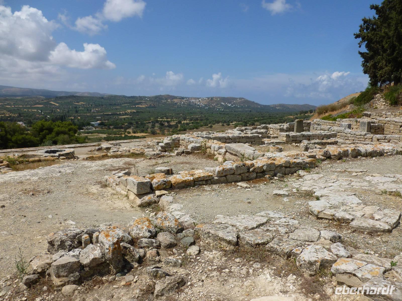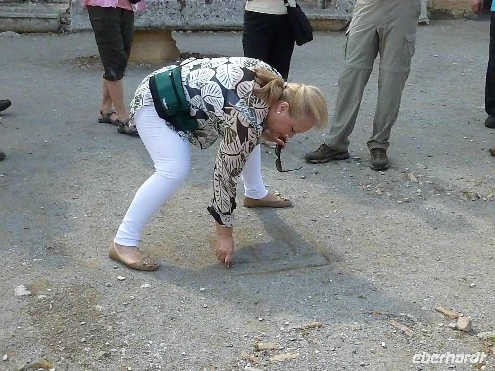 Bevor wir heute endlich wieder in unsere Wanderstiefel schlüpfen konnten, standen noch zwei kulturelle Höhepunkte auf dem Programm: die Ruinen von Gortys und Festos. Wir fuhren durch das Dorf „Agio Varvara" (=Heilige Barbara), das als Mittelpunkt Kretas gilt und hatten anschließend einen fantastischen Blick auf die Mesara-Ebene. Kurz darauf waren wir auch schon angekommen und besuchten das römische Odeon und bestaunten die in Stein gemeiselten Gesetze in dieser Ausgrabungsstätte. Kiki erklärte uns wieder sehr ausführlich und verständlich die geschichtlichen Hintergründe. Unser Busfahrer Georg chauffierte uns anschließend weiter in den beeindruckenden minoischen Palast Festos, von dem man wieder einen herrlichen Blick in die Mesara-Ebene hatte. Auch dort machten wir gemeinsam mit Kiki einen Rundgang vom Nordhof, der früher als Marktplatz gedient haben soll, weiter hangabwärts zum Westhof, der Tribüne und konnten auch einen Blick in die Magazine des Palastes werfen. Bevor wir uns wanderfertig machten, konnte sich jeder noch einmal etwas stärken. Dann begann die 8 Kilometer lange Wanderung vom kleinen Dorf Petsidia, dessen doch einfache Häuser traumhaft schön von prächtig blühenden Bouganvillen umrahmt waren - das war auf jeden Fall ein oder mehrere Fotos wert. Der teilweise asphaltierte Weg führte uns bergauf und bergab durch Oliven- und Aloehaine. Nach einer kurzen Raki-Pause hatten wir es auch schon geschafft und waren im kleinen Dorf Matala angekommen. Nun aber raus aus den Wanderstiefeln und ab ins Lybische Meer...oder ins Café nebenan um das Treiben zu beobachten. Nun machten wir uns auf den Weg nach Platanias ins Hotel Porto Platanias. Wieder neigt sich ein erlebnisreicher Wander- und Kulturtag dem Ende...