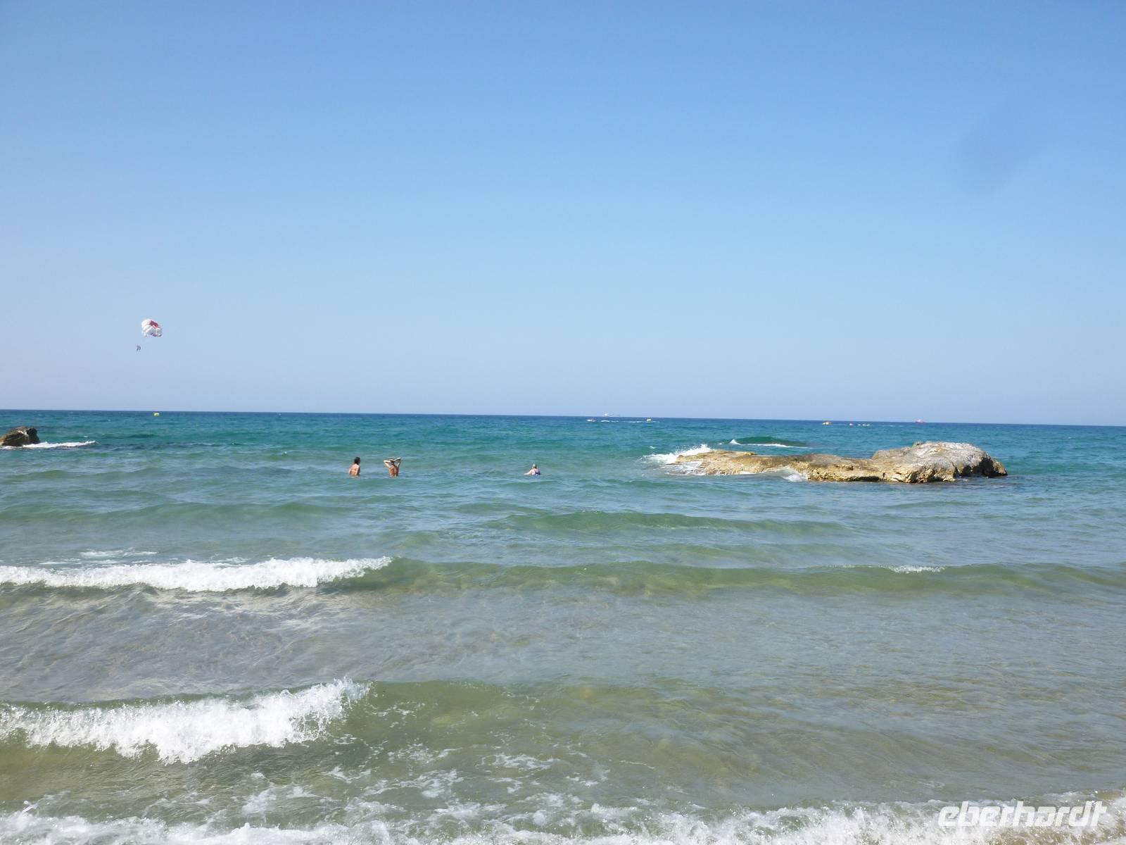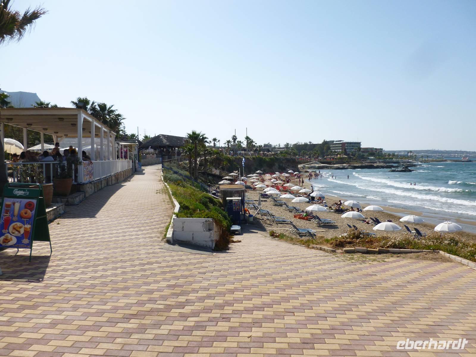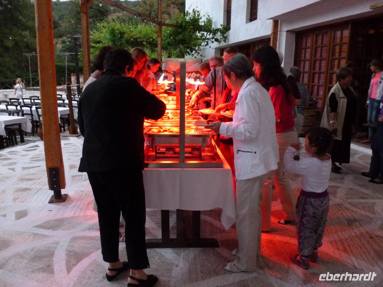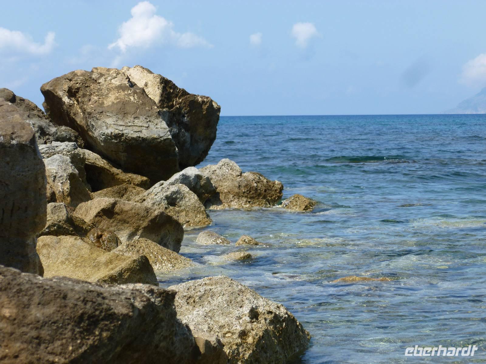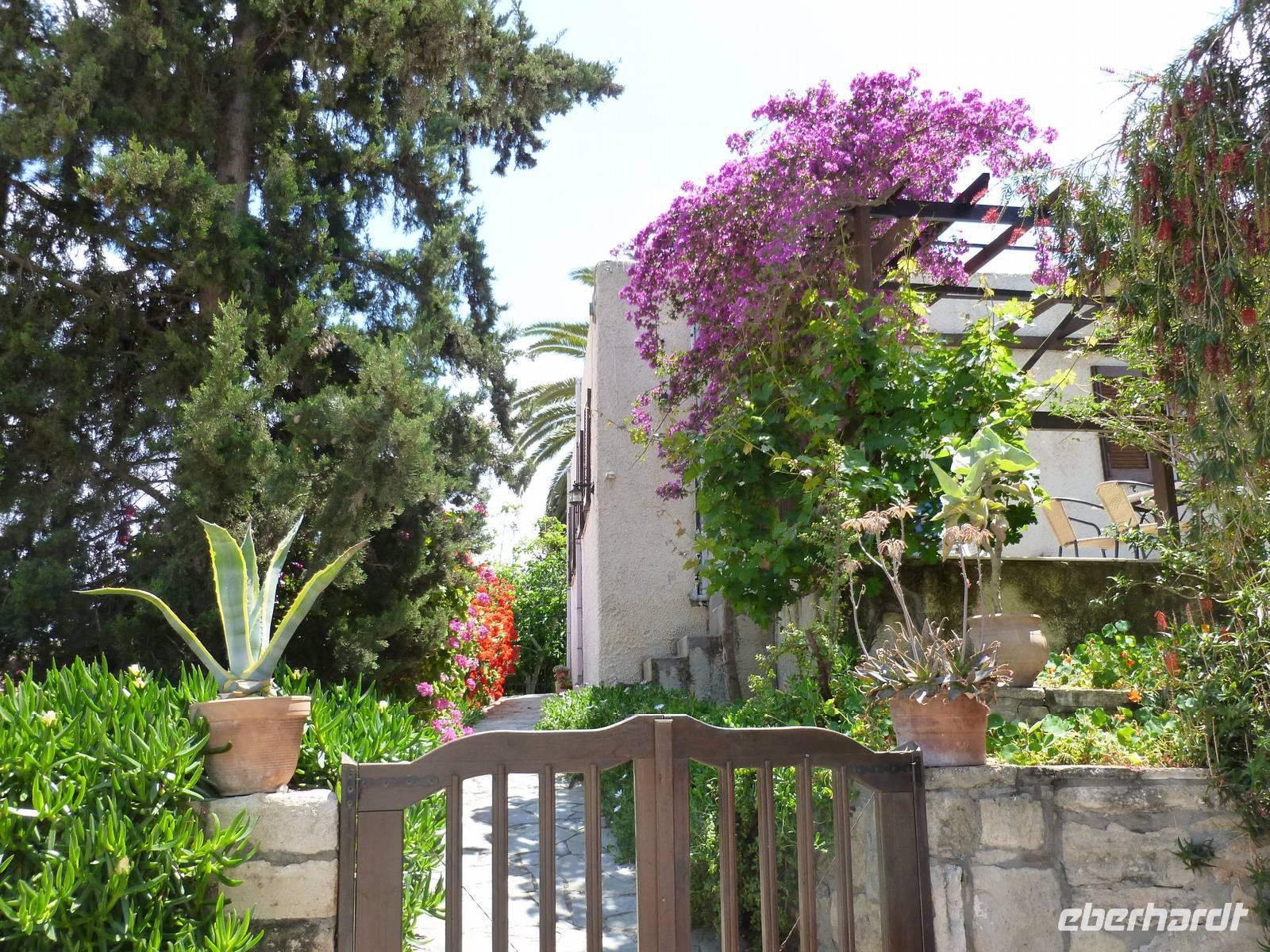 Da das Kloster zum Samstag erst um 16 Uhr öffnet, verschoben wir den Besuch auf den Nachmittag. Wir fuhren weiter nach Sirikari und starteten dort unsere Wanderung. Als erstes ging es eine ganze Weile steil bergab über mal große, mal kleinere Steine. Wir durchliefen die beeindruckende Tshikliana-Schlucht und genossen die eindrucksvollen Aussichten links und rechts und die Sonne setzte die Schlucht immer wieder sehr hübsch in Szene. Diese Eindrücke sollten schon mal ein kleiner Vorgeschmack auf die morgige, hoffentlich sonnige Wanderung in der spektakulären Samaria-Schlucht sein. Die 7 Kilometer waren schnell geschafft und schon stiegen wir wieder gut gelaunt in den Bus. Wir fuhren in das etwas abgelegene Dorf Kastelli um dort in der griechischen Taverne „Papadaki" ein köstliches Mittagessen einzunehmen. Die direkte Lage zum Mittelmeer lud zum Verweilen ein. Aber wir wollten ja auch noch das Kloster besichtigen, also machten wir uns wieder auf den Weg dahin. Diesmal stand uns Tür & Tor für einen Besuch offen. Kiki erklärte uns die wichtigsten Fakten bevor wir wieder den Heimweg antraten. Nun war noch genügend Zeit das Meer am hoteleigenen Strand zu testen und sich zu erfrischen.