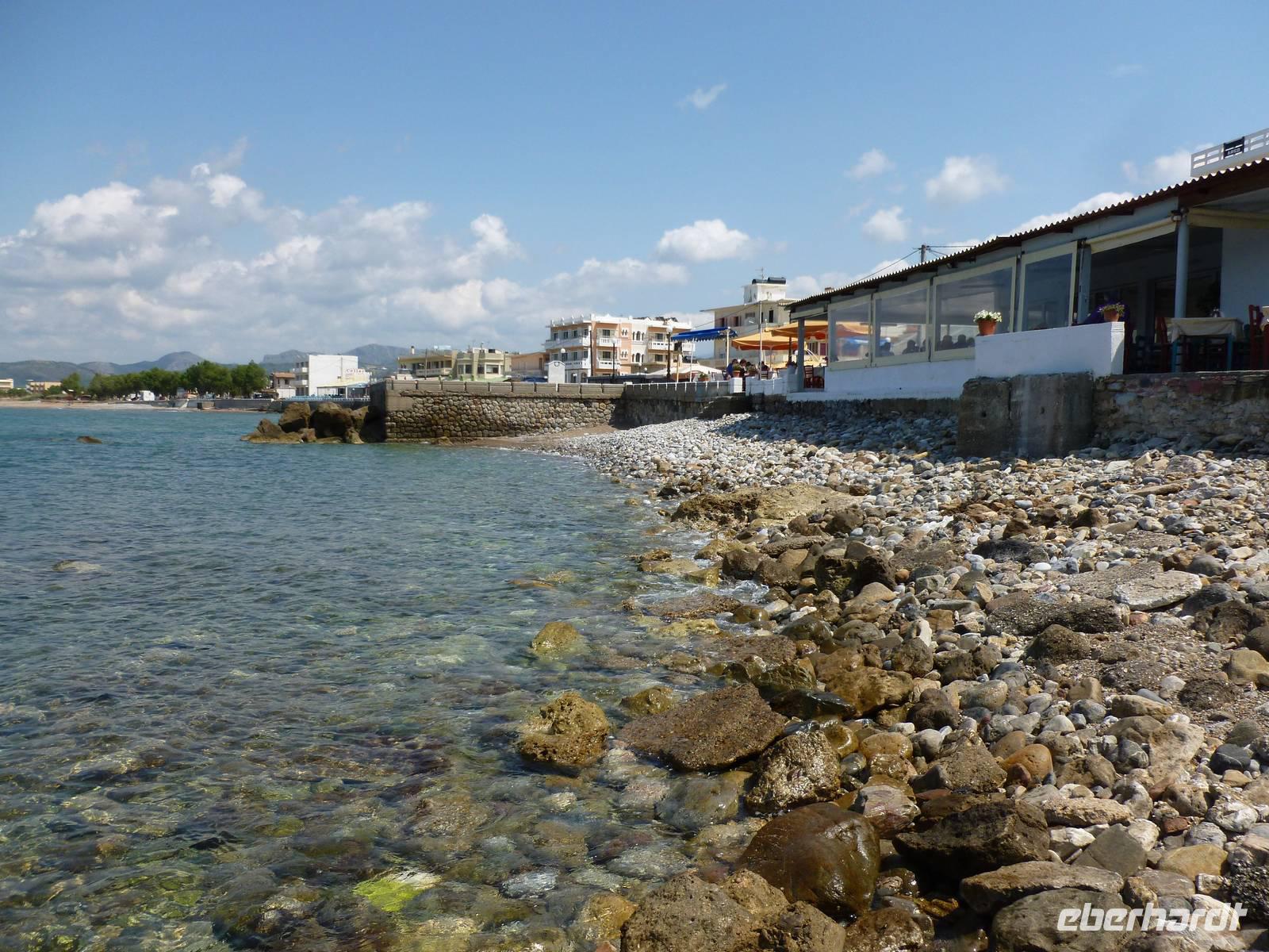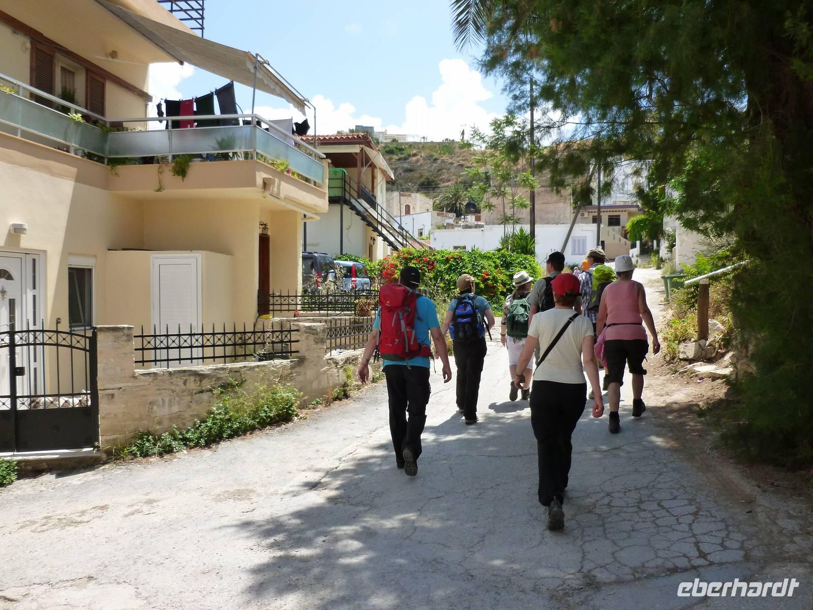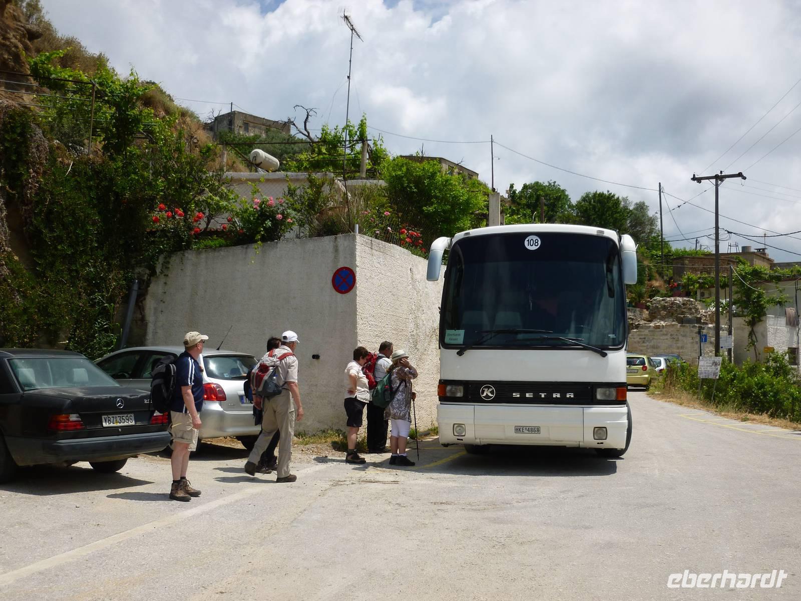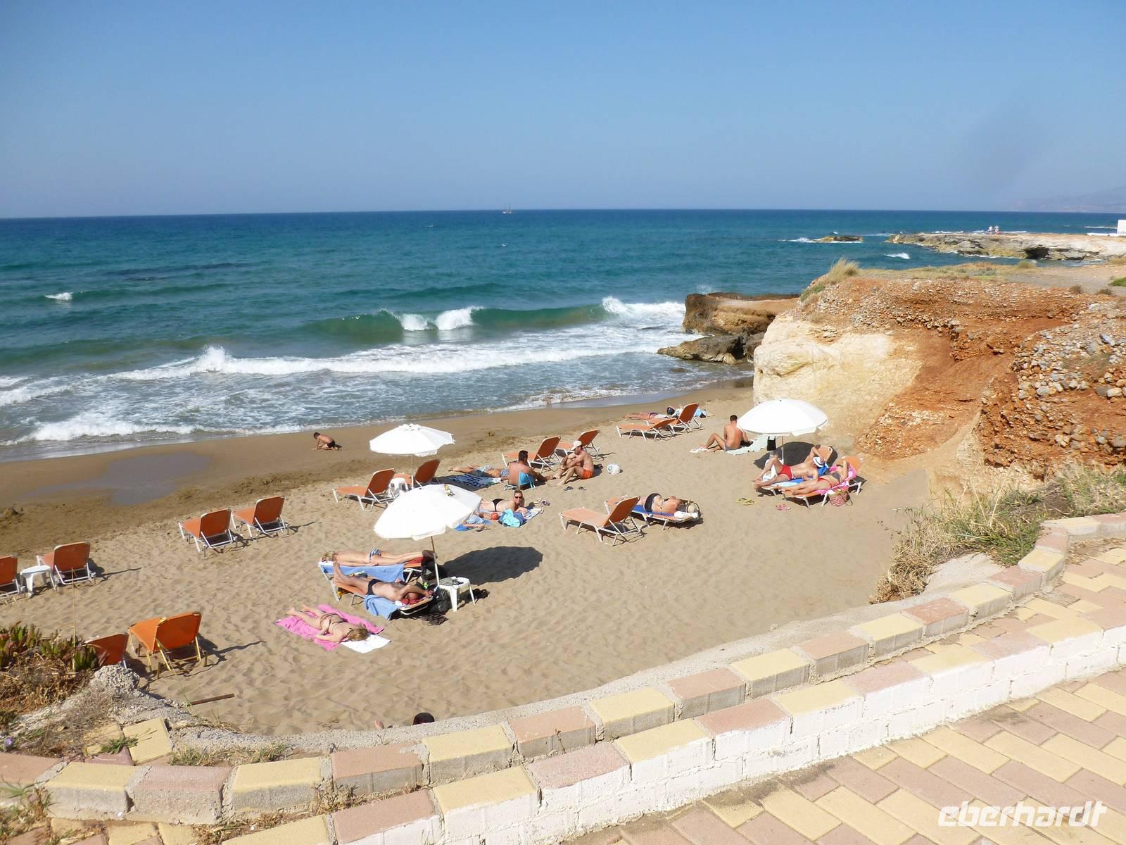 Nach einer reibungslosen Anreise aus dem endlich frühlingshaften Deutschland kamen wir am Nachmittag auf der sommerlichen Mittelmeerinsel Kreta an. Die fünftgrößte Insel begrüßte uns mit strahlendem Sonnenschein. Nachdem uns Rena von der örtlichen Agentur in Empfang genommen hatte, bezogen wir unsere Zimmer und erkundeten die Umgebung - der ein oder andere stürzte sich auch in die erfrischenden Fluten des salzigen Meeres. Bei einem Begrüßungs-Ouzo und einem anschließenden leckeren Essen stimmten wir uns auf unsere gemeinsame Wanderwoche ein.