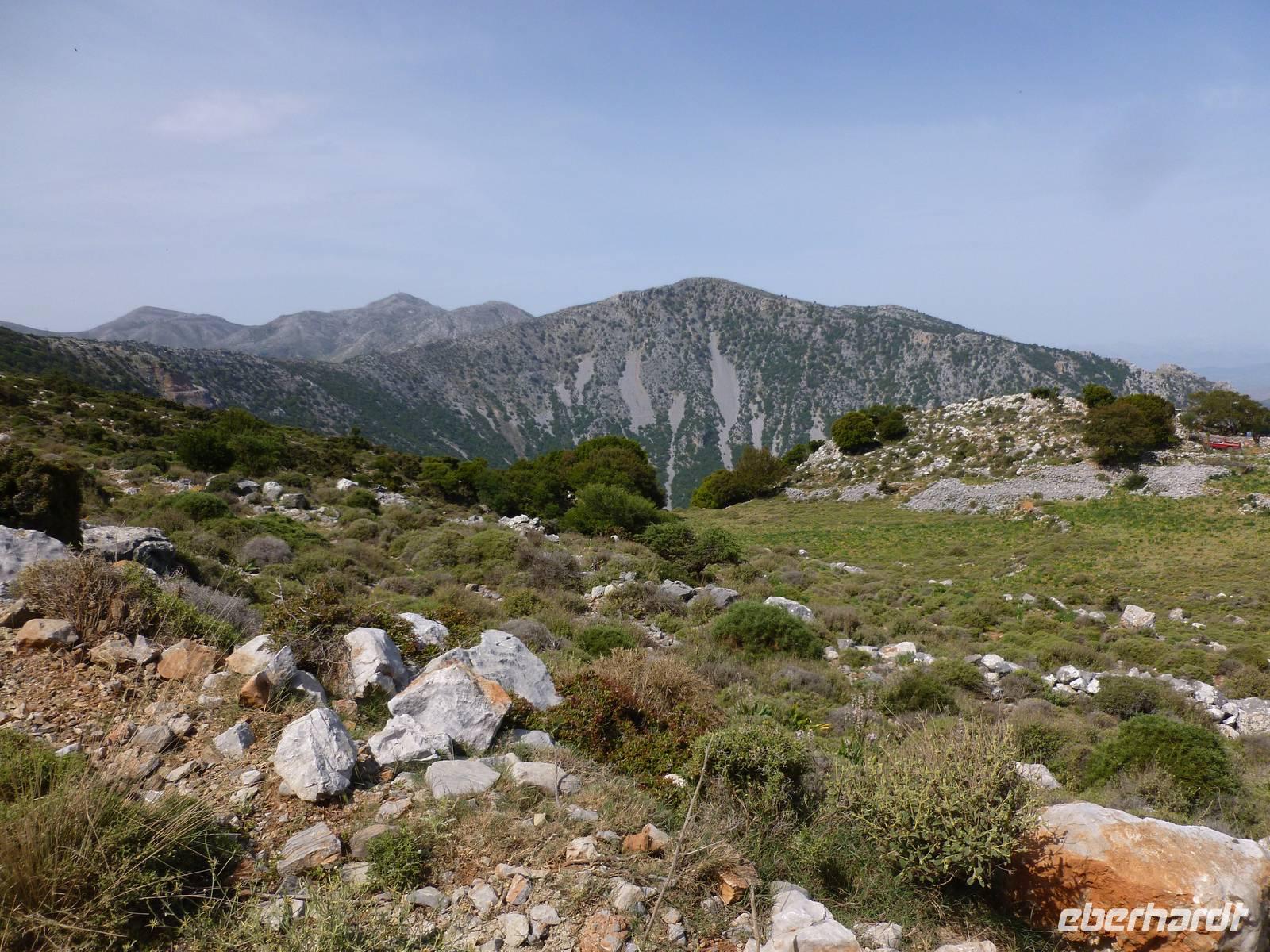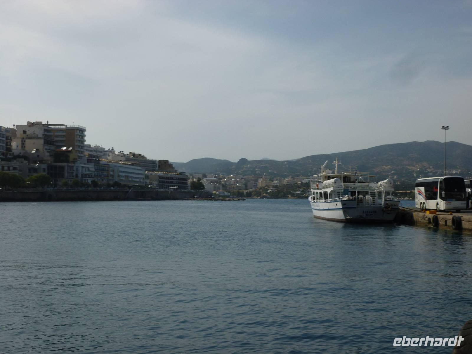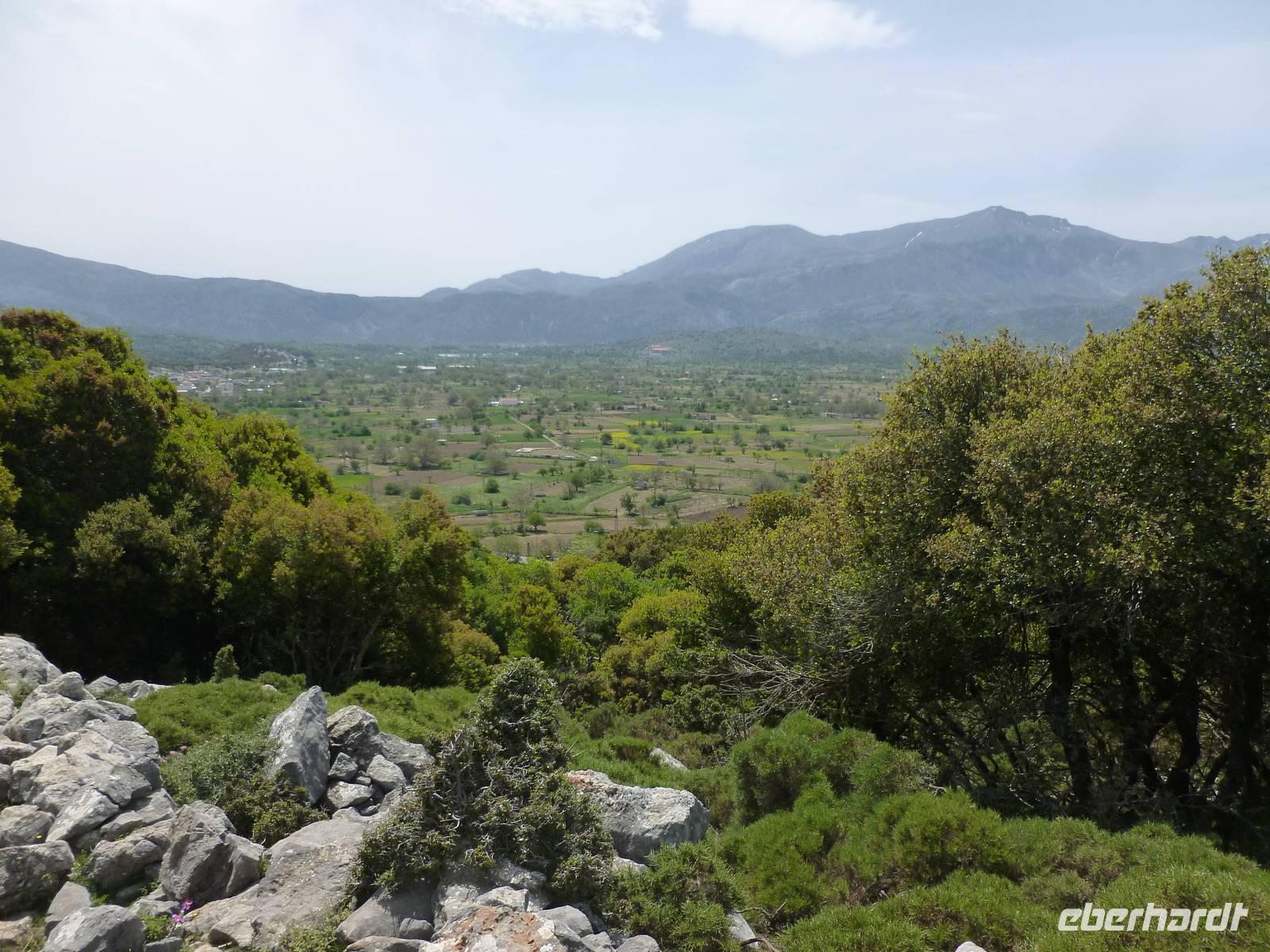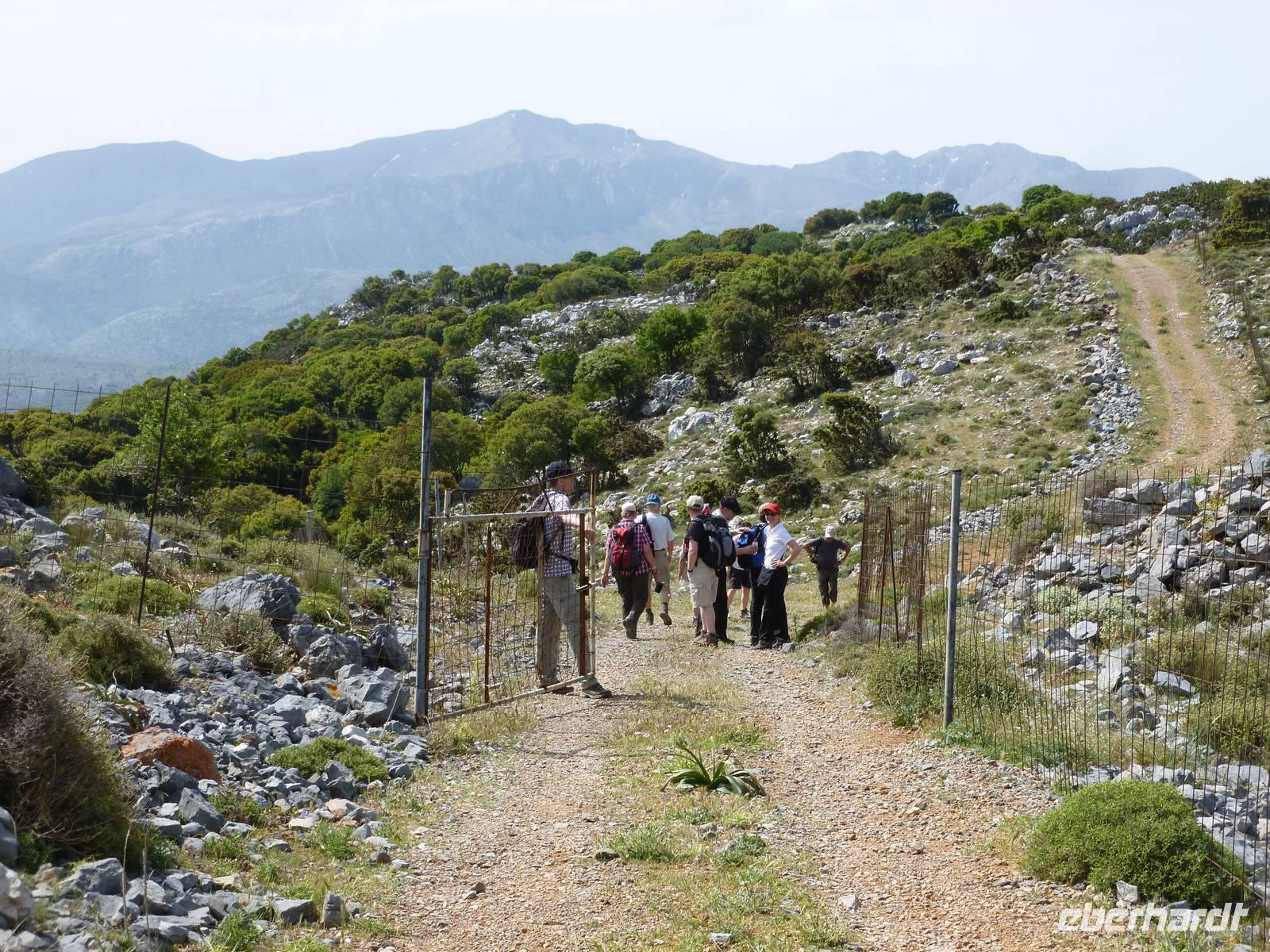 Nach einem stärkenden Frühstück schnürten wir die Wanderstiefel und waren alle ganz gespannt auf den heutigen Tag. Unsere Wanderreiseleiterin Kiki begrüßte uns und schon konnte es losgehen. Als erstes fuhren wir eine knappe dreiviertel Stunde zum Kloster Kera Kardiotissa. Da wir dies einen Tag nach Ostermontag besichtigten, wurden wir mit einem frischgebackenen Ostergebäck empfangen und auch am Wasserautomaten konnten wir uns bedienen. Kiki erklärte uns die geschichtlichen Hintergründe dieses Klosters und auch eine Menge mehr zu Land und Leuten. In der kleinen beschaulichen Kirche selbst konnten wir die aus dem 14. Jh. Stammenden Fresken bewundern. Anschließend fuhren wir weiter zur Lashiti-Ebene. Wie wanderten von Kera entlang einer Schotterstraße bergauf, bis zum Abzweig nach Tzermiado. Dann ging es über einen Schotterweg meist bergab vorbei an eindrucksvollen Gewächsen wie der Zistrose, der Totenblume, kleinen Orchideen oder dem Drachenblut. Kiki war auch in der Flora sehr bewandert und konnte zu jeder Blume den lateinischen Namen nennen. Auch eine Nachahmung eines Stierkampfes konnten wir ganz ohne Eintritt bestaunen und mit fiebern wer der stärkere Ziegenbock war. In Tzermiado angekommen, bog auch schon unser Busfahrer Georg um die Ecke und wir konnten weiter fahren in die Höhle des Zeus, dort wo selbiger angeblich geboren wurde. Nach einem steilen Aufstieg ging es steil bergab in die erfrischend kühle Höhle. Wieder am Bus angekommen fuhren wir weiter zu einer kurzen Mittagspause, bevor wir die malerische Hafenstadt Agios Nikolaos besuchten. Die Stadt, die übersetzt der Heilige Nikolaus bedeutet, erkundeten wir nun auf eigene Faust. Bei einem gemütlichen Kaffee ließen wir diesen erlebnisreichen Wandertag ausklingen.