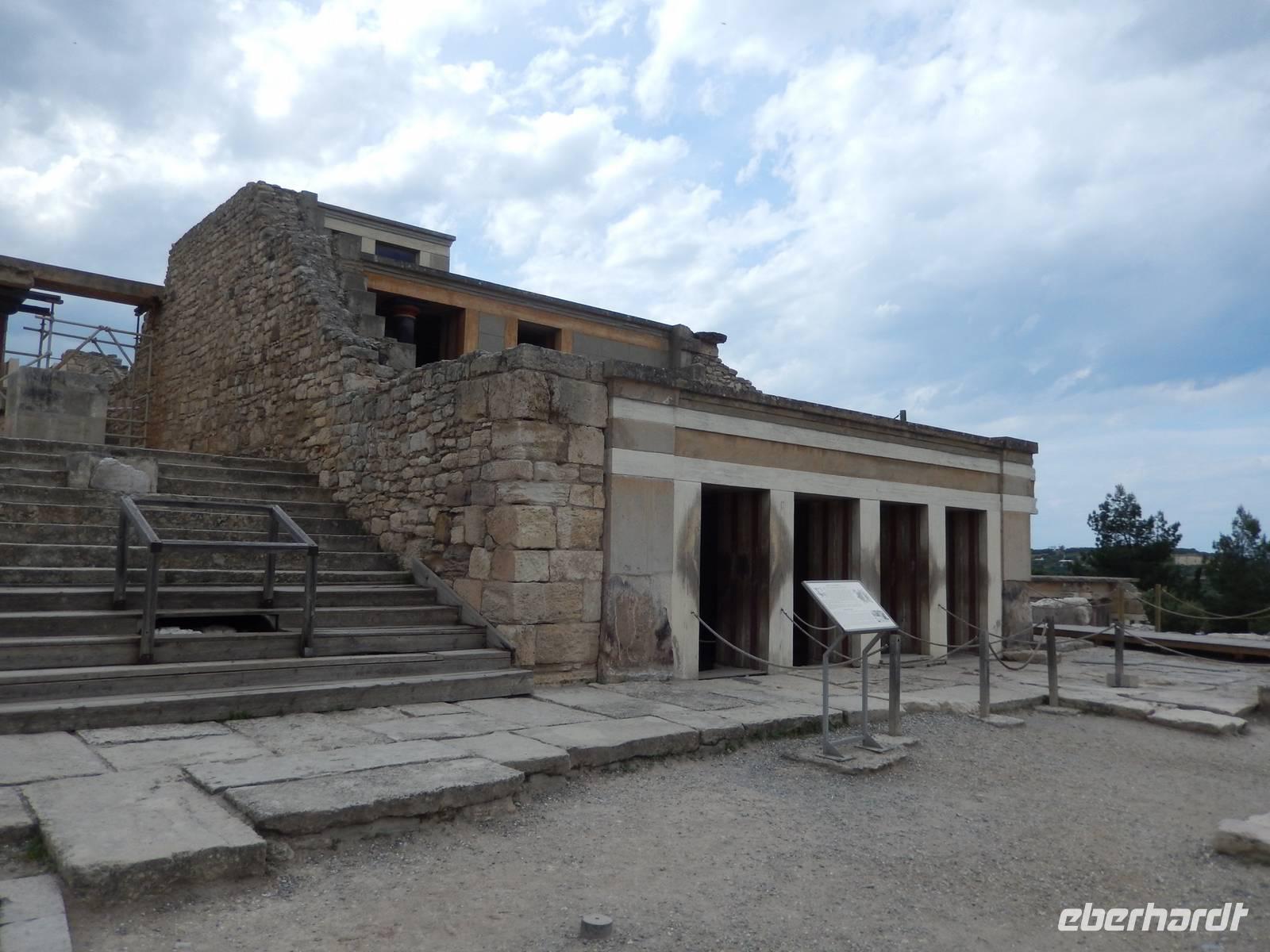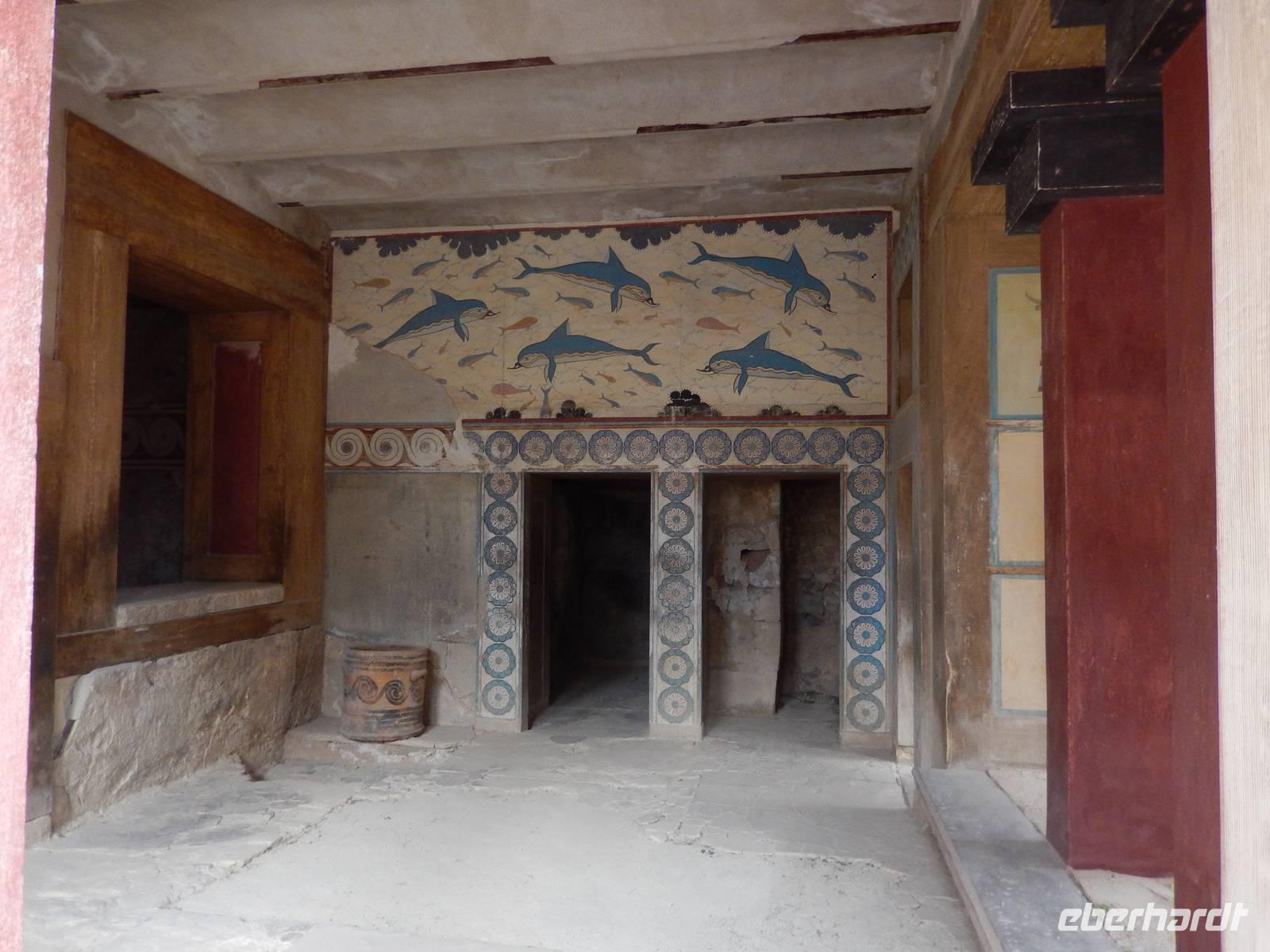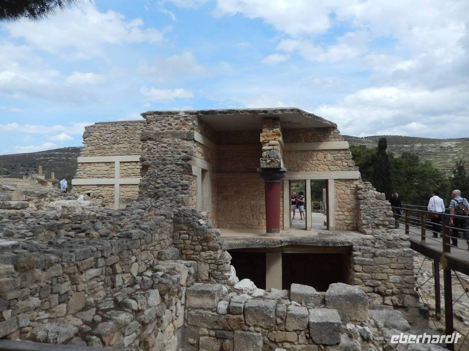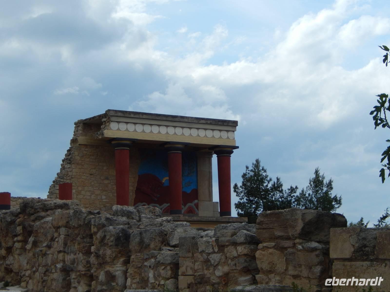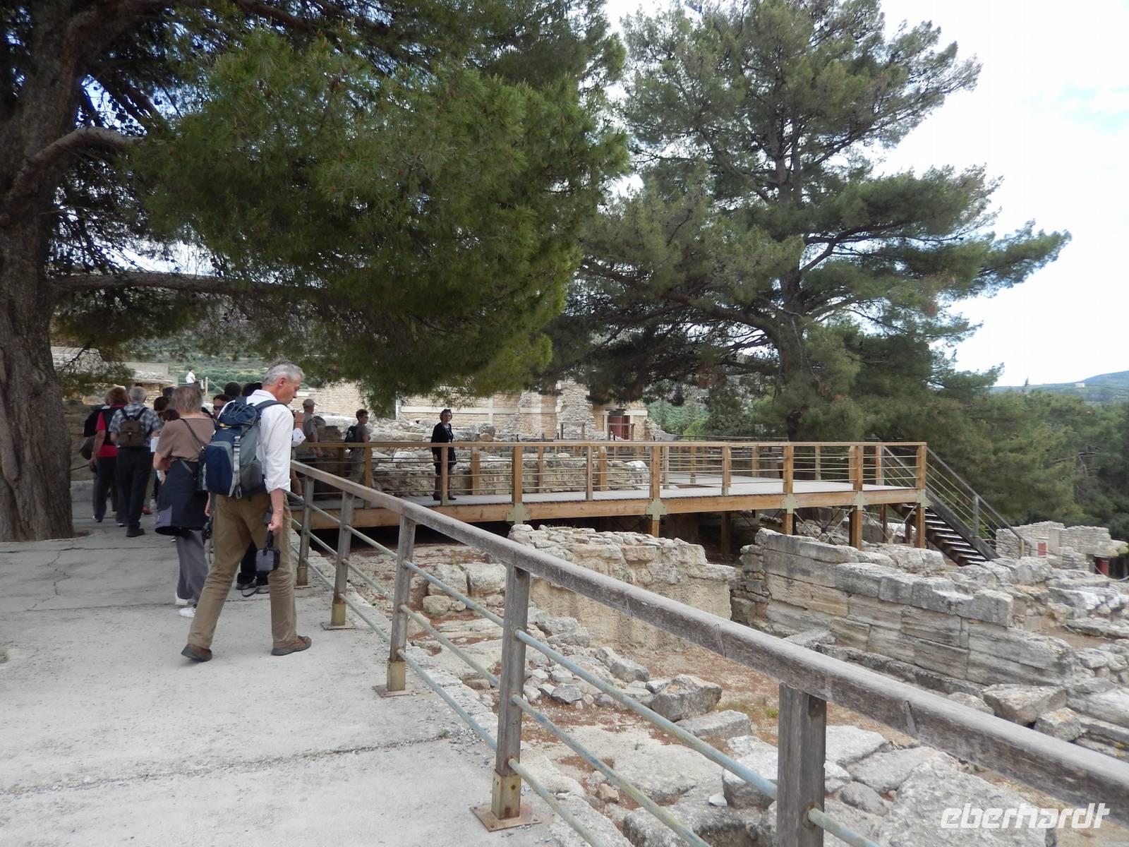 Nach einer reibungslosen Anreise von Dresden bzw. Berlin nach Heraklion nahm uns unsere kretische Reiseleiterin Maria mit einem "Kalimera" herzlich in Empfang. Gleich nach unserer Ankunft wollten wir nun die größte minoische Palastanlage Knossos besuchen. Ein sehr glücklicher Unmstand, da am Nachmittag die Anlage sehr menschenleer war und man somit genug Zeit hatte, alles in Ruhe zu besichtigen. Maria erklärte uns an den wichtigsten Punkten viel Interessantes zur Geschichte, Entstehung und Bedeutung der minoischen Ausgrabungsstätte. Anschließend konnte jeder für sich noch etwas durch die eindrucksvollen Ruinen schlendern. Nach dieser Besichtigung chauffierte uns Jurgos ins nahgelegene Hotel nach Herssonisos, in dem wir am Abend köstlich bei kretischen Köstlichkeiten versorgt wurden.