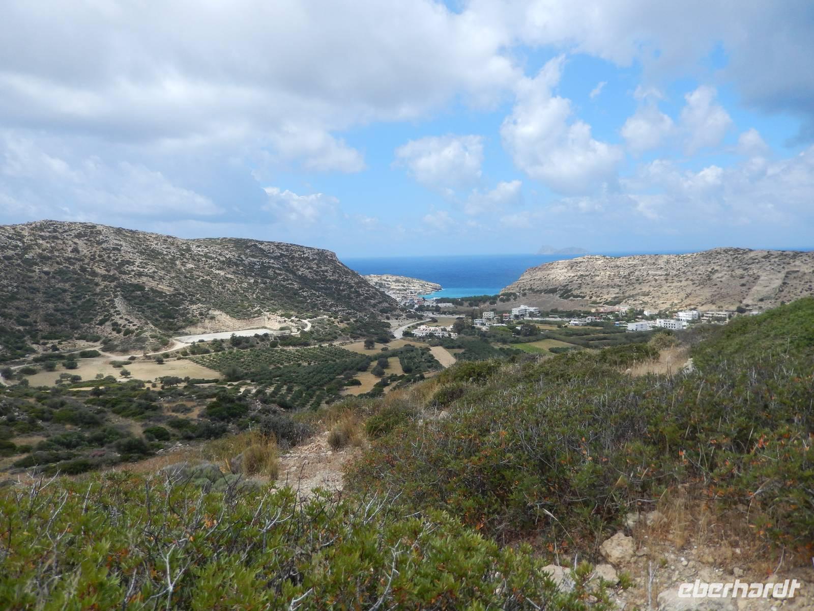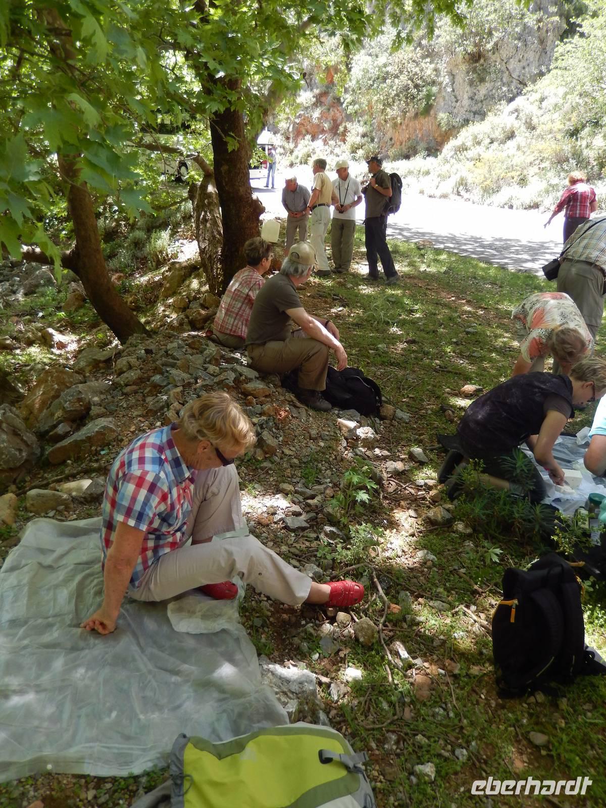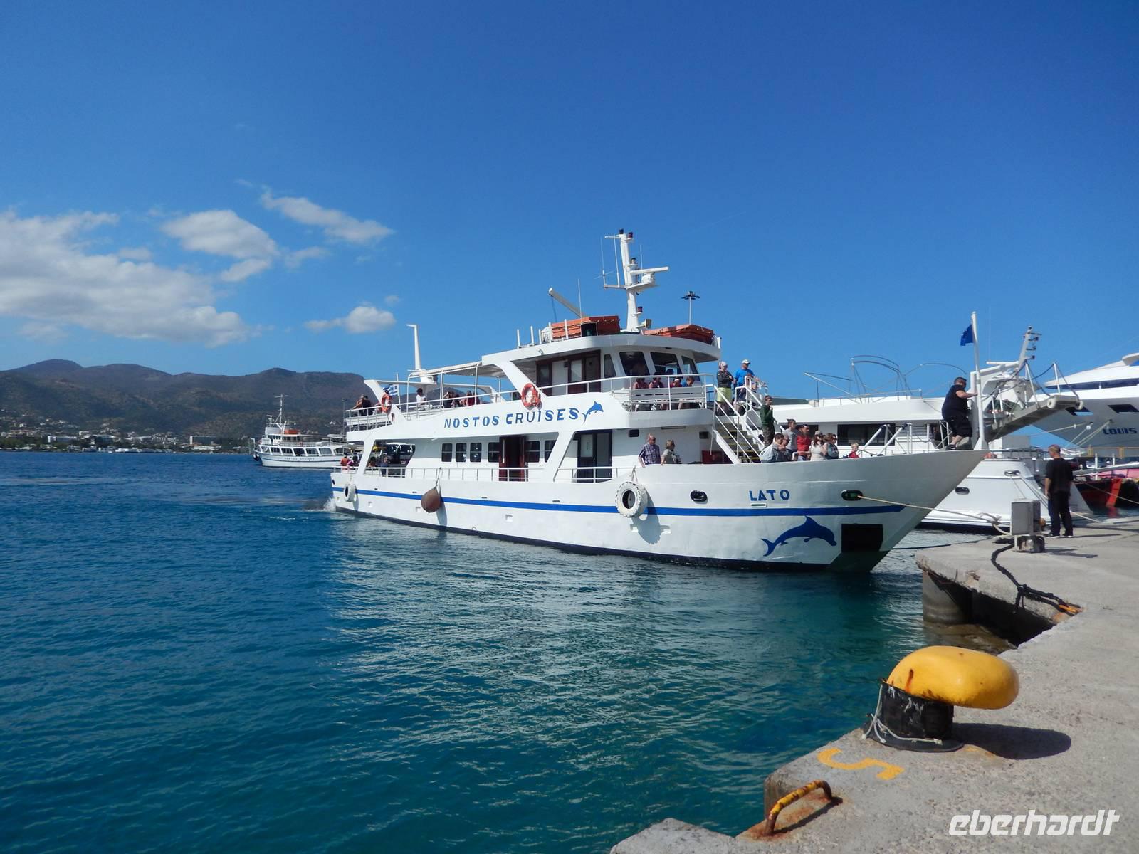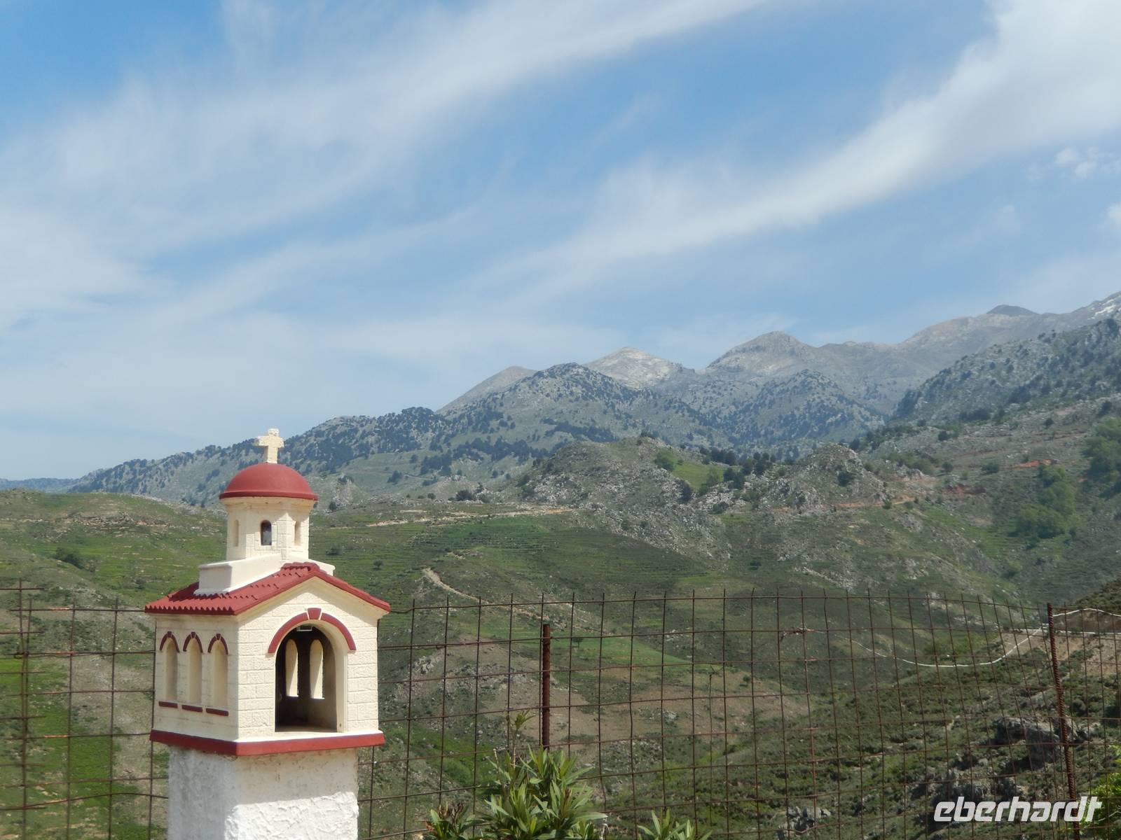 Nachdem wir gut ausgeruht und gestärkt vom leckeren Frühstück waren, wurden wir von Maria abgeholt, um heute unsere erste Wanderung zu unternehmen. Doch bevor die Wanderschuhe richtig zum Einsatz kamen, besuchten wir das beschauliche Kloster Kera Kardiotissa. Wir wurden sehr gastfreundlich empfangen und durften das selbstgemachte süße Brot probieren. Anschließend besichtigten wir die kleine Klosterkirche und Maria informierte uns über die Bedeutung der alten, aber noch gut erhaltenen Fresken und das Leben in dem kleinen Kloster. Weiter ging es dann zur Lasithi-Hochebene, um unsere Wanderung nach Tzermiado zu beginnen. Wir hatten tolles Wanderwetter und somit eine grandiose Aussicht auf die Hochebene und das Meer am Horizont. Während der Einsteigertour entdeckten wir viele kleine Pflänzchen am Wegesrand: Orchideen, Alpenveilchen, Kamille und zum Schluss einen Drachenwurz. Im urigen Tzermiado angekommen, erwartete uns bereits der Bus, um uns nach Psychro, zur Höhle des Zeus zu chauffieren. Bevor wir die Geburtsstätte des Zeus besichtigten, kehrten wir noch in einer Taverne an den alten Windrädern ein und genossen die kretischen Köstlichkeiten aus eigenem Anbau. Selbstgemachter Käse, griechischer Salat und dazu ein Gläschen Wein - so konnten wir es doch aushalten :-). Doch nun weiter zur Diktäischen Grotte, zu der uns ein steiler Pfad bergauf bis zum Eingang der eindrucksvollen Tropfsteinhöhle führte. Nun wurde es plötzlich mit einem Schlag um einige Grad kühler, aber auch diese Eindrücke waren sehr reizvoll. Den Abschluss des Tages bildete für heute unser Besuch in Agios Nikolaos, einer idyllisch gelegenen Hafenstadt im Osten Kretas, die noch einmal Gelegenheit bot zum Bummeln, Kaffee-Trinken und sich unters kretische Volk zu mischen.