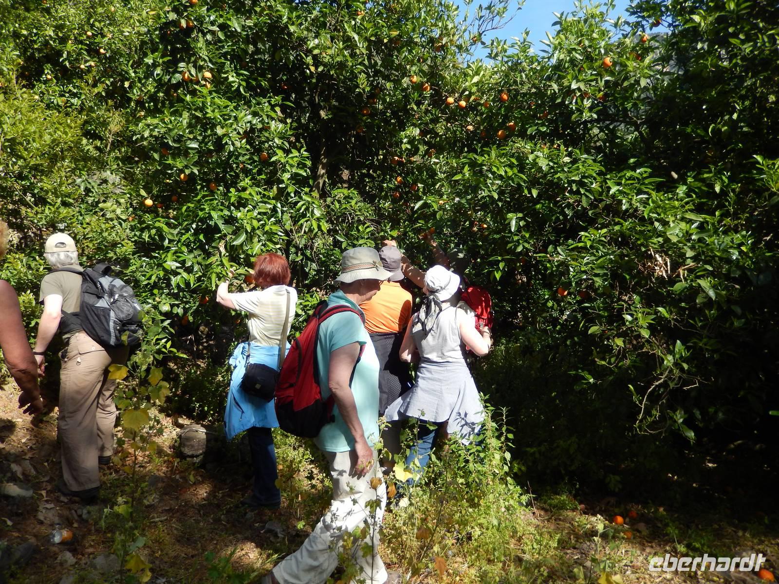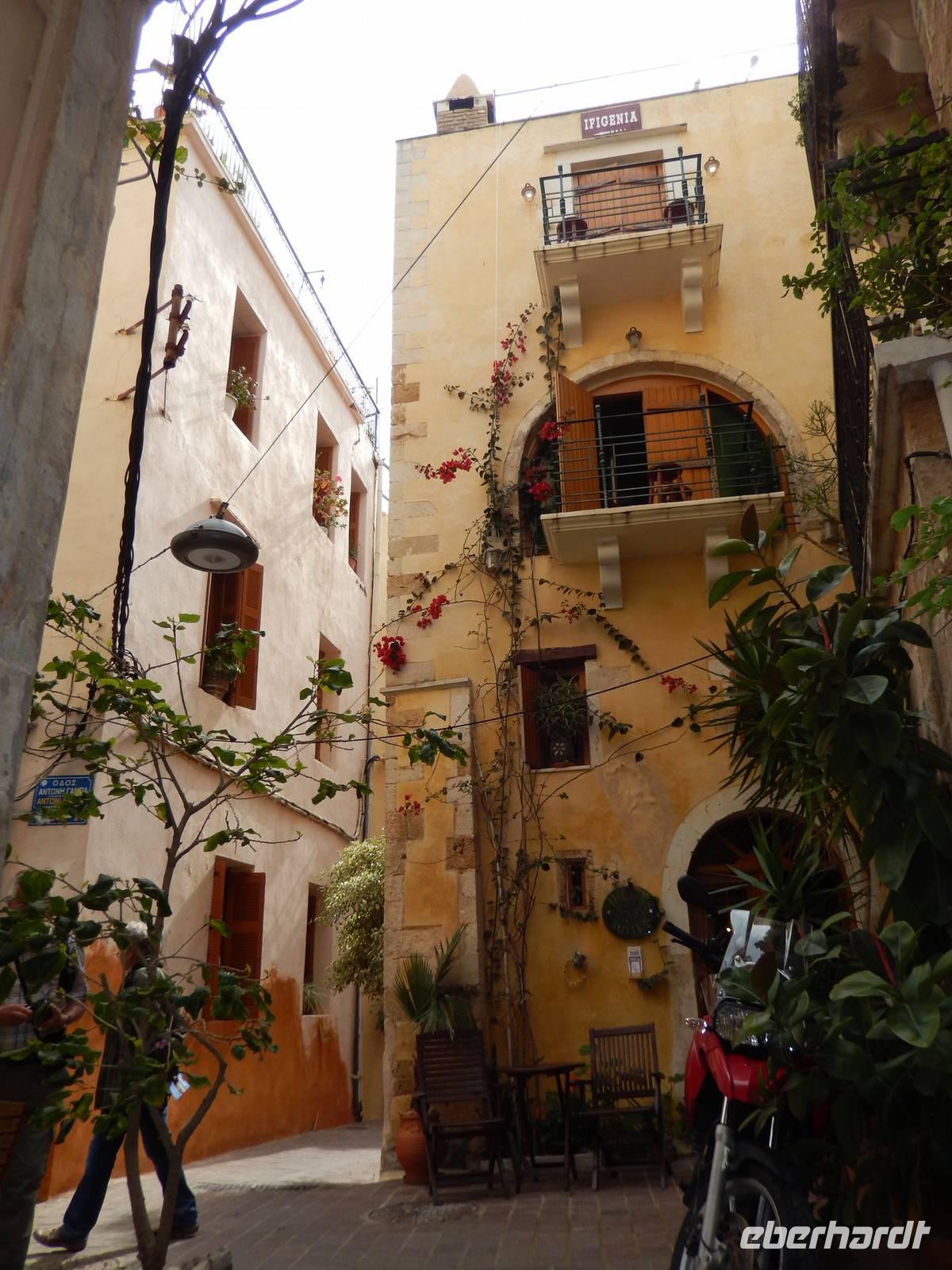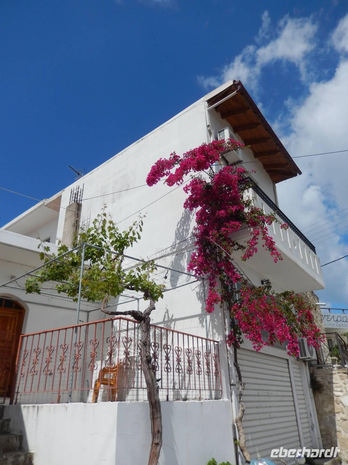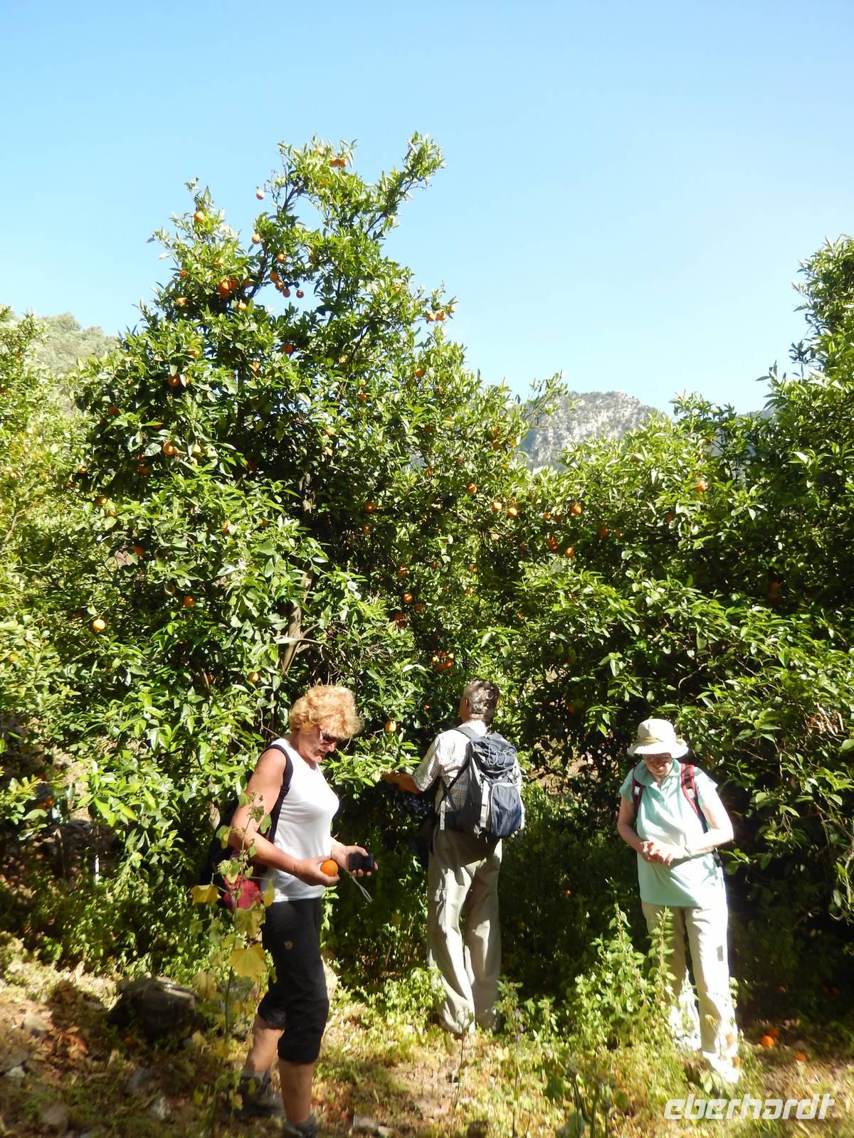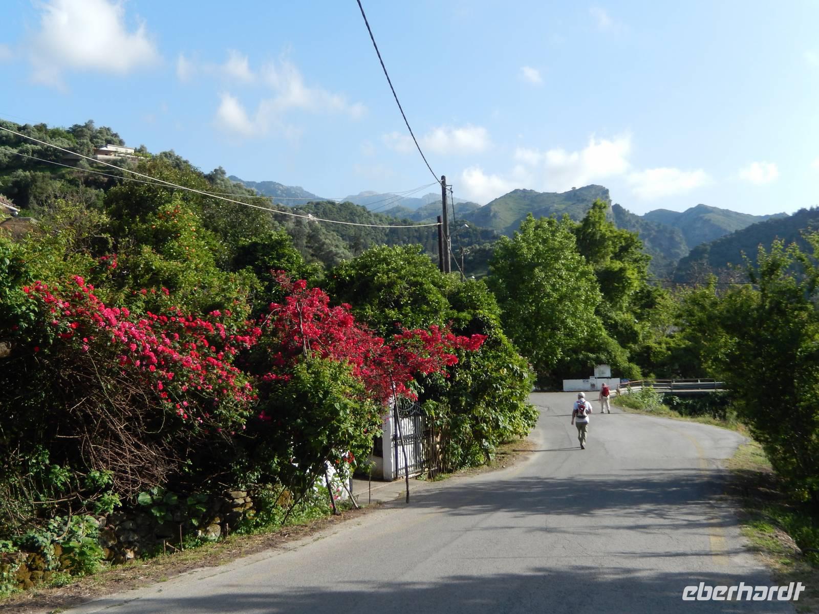 Unsere Reise führte uns heute in die einstige Inselshauptstadt Chania. Sie ist bekannt für ihren venezianischen Hafen mit Leuchtturm, den türkischen Bauten und der großen Festung. Mit Maria machten wir als Erstes einen Stadtrundgang um die wichtigsten Punkte der Stadt kennenzulernen. Wir schlenderten durch das jüdische Viertel, das mit den üppigen Bougainvillean und Rosen immer wieder tolle Fotomotive bot. Dann ging es weiter am Hafen entlang bevor wir beim Archäologischen Museum in der venezianischen Kirche ankamen. Maria zeigte uns die vielen Ausstellungsstücke aus vergangener Zeit und deren Bedeutung. Nach dem Besuch konnte dann Jeder noch individuell durch Chania bummeln. Maria und ich kauften alles für unser kretisches Picknick ein, dass wir auf Grund eines kleinen Busproblems etwas früher als geplant durchführten. Aber der Platz war schön und passend für unser „kleines Dinner". Alle packten mit an, schnippelten Gemüse, Fetakäse und Wurst - alles zusammen mit etwas Salz, Oregano und Olivenöl vermischt ergab unseren leckeren, griechischen Salat. Dazu gab es Brot, Tzatziki, Erbsenpaste, Oliven und natürlich Wein...hmmmm lecker! In der Zwischenzeit hatte unser Busfahrer Jorgos auch das kleine Problem mit dem Bus geregelt, so dass wir weiter fahren konnten zum Ausgangspunkt unserer heutigen Wanderung. Der erste Teil verlief steil bergan auf einem einstigen Landweg, der in den letzten Jahren leider asphaltiert wurde, so dass der Weg sehr mühselig war. Aber die Ausblicke waren dennoch sehr schön und entschädigten die Mühen. Nach dem kleinen Ort Zourvas bogen wir dann ab auf einen Feldweg ab, wanderten durch Orangen- und Zitronenhaine und kamen schließlich in unserem Zielort Messkla an.