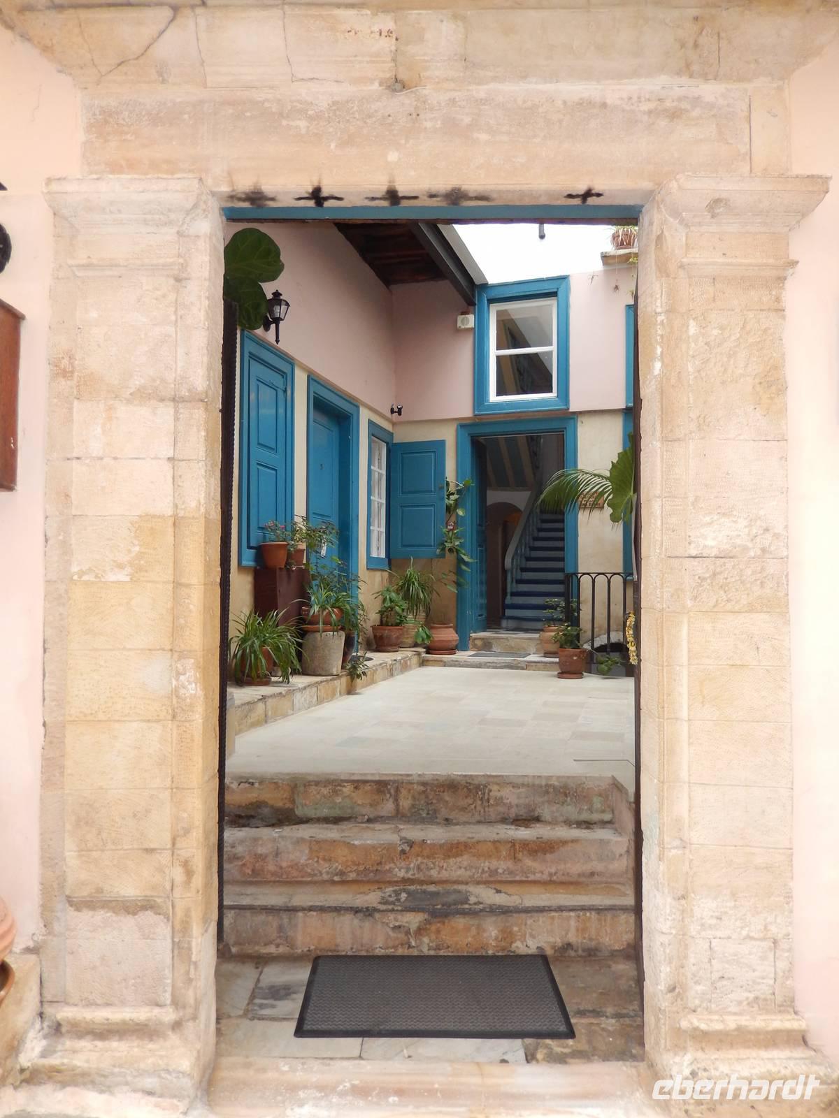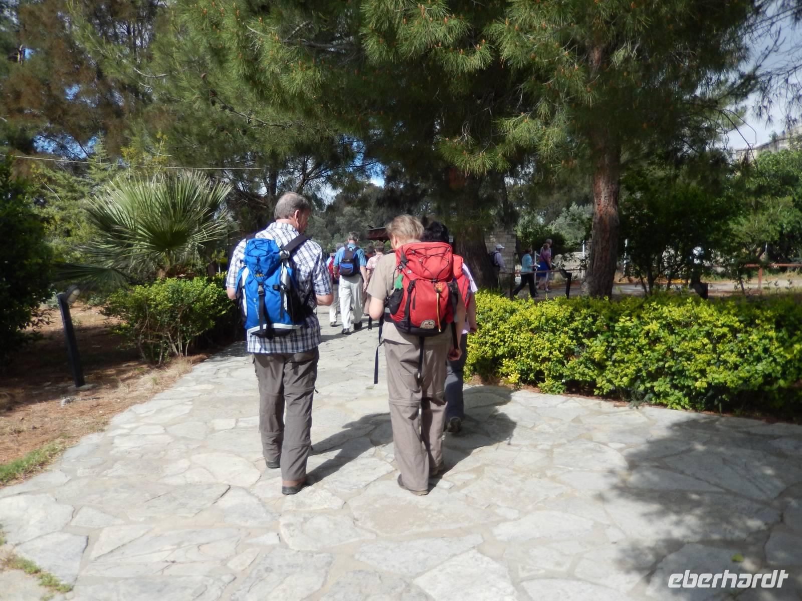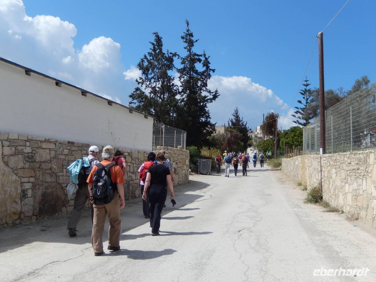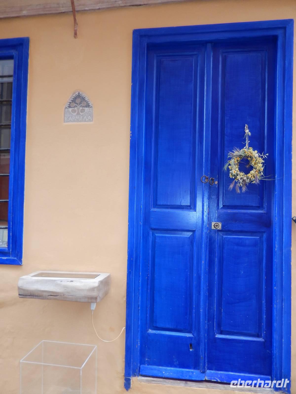 Unsere Reise führte uns heute in die einstige Inselshauptstadt Chania. Sie ist bekannt für ihren venezianischen Hafen mit Leuchtturm, den türkischen Bauten und der großen Festung. Mit Maria machten wir als Erstes einen Stadtrundgang um die wichtigsten Punkte der Stadt kennenzulernen. Wir schlenderten durch das jüdische Viertel, das mit den üppigen Bougainvillean und Rosen immer wieder tolle Fotomotive bot. Dann ging es weiter am Hafen entlang bevor wir beim Archäologischen Museum in der venezianischen Kirche ankamen. Maria zeigte uns die vielen Ausstellungsstücke aus vergangener Zeit und deren Bedeutung. Nach dem Besuch konnte dann Jeder noch individuell durch Chania bummeln. Maria und ich kauften alles für unser kretisches Picknick ein, dass wir auf Grund eines kleinen Busproblems etwas früher als geplant durchführten. Aber der Platz war schön und passend für unser „kleines Dinner". Alle packten mit an, schnippelten Gemüse, Fetakäse und Wurst - alles zusammen mit etwas Salz, Oregano und Olivenöl vermischt ergab unseren leckeren, griechischen Salat. Dazu gab es Brot, Tzatziki, Erbsenpaste, Oliven und natürlich Wein...hmmmm lecker! In der Zwischenzeit hatte unser Busfahrer Jorgos auch das kleine Problem mit dem Bus geregelt, so dass wir weiter fahren konnten zum Ausgangspunkt unserer heutigen Wanderung. Der erste Teil verlief steil bergan auf einem einstigen Landweg, der in den letzten Jahren leider asphaltiert wurde, so dass der Weg sehr mühselig war. Aber die Ausblicke waren dennoch sehr schön und entschädigten die Mühen. Nach dem kleinen Ort Zourvas bogen wir dann ab auf einen Feldweg ab, wanderten durch Orangen- und Zitronenhaine und kamen schließlich in unserem Zielort Messkla an.