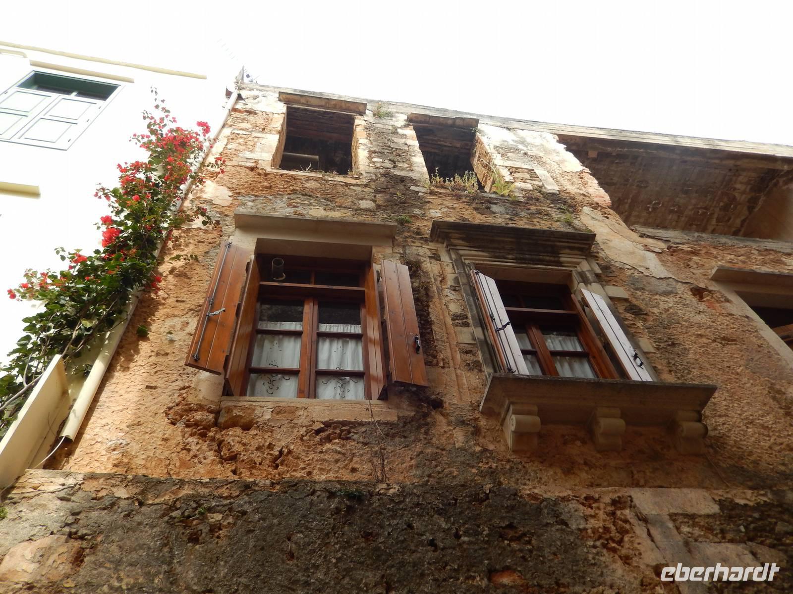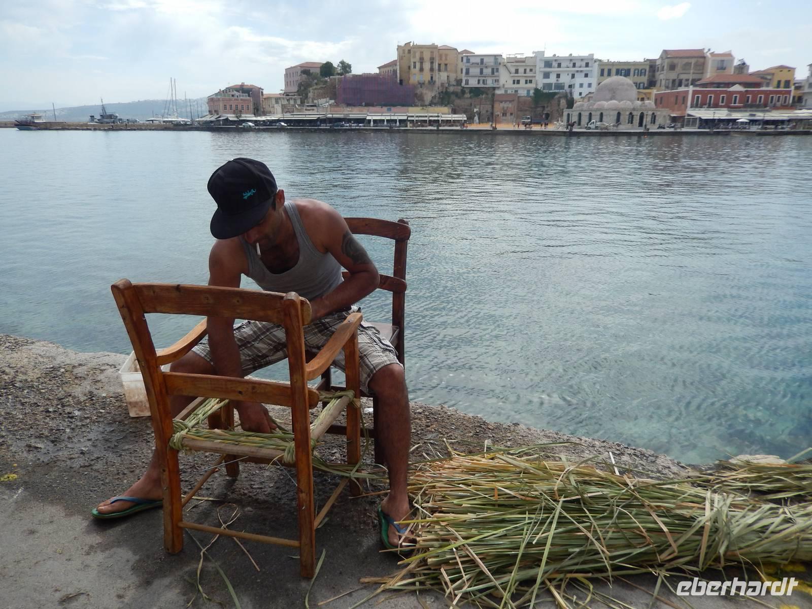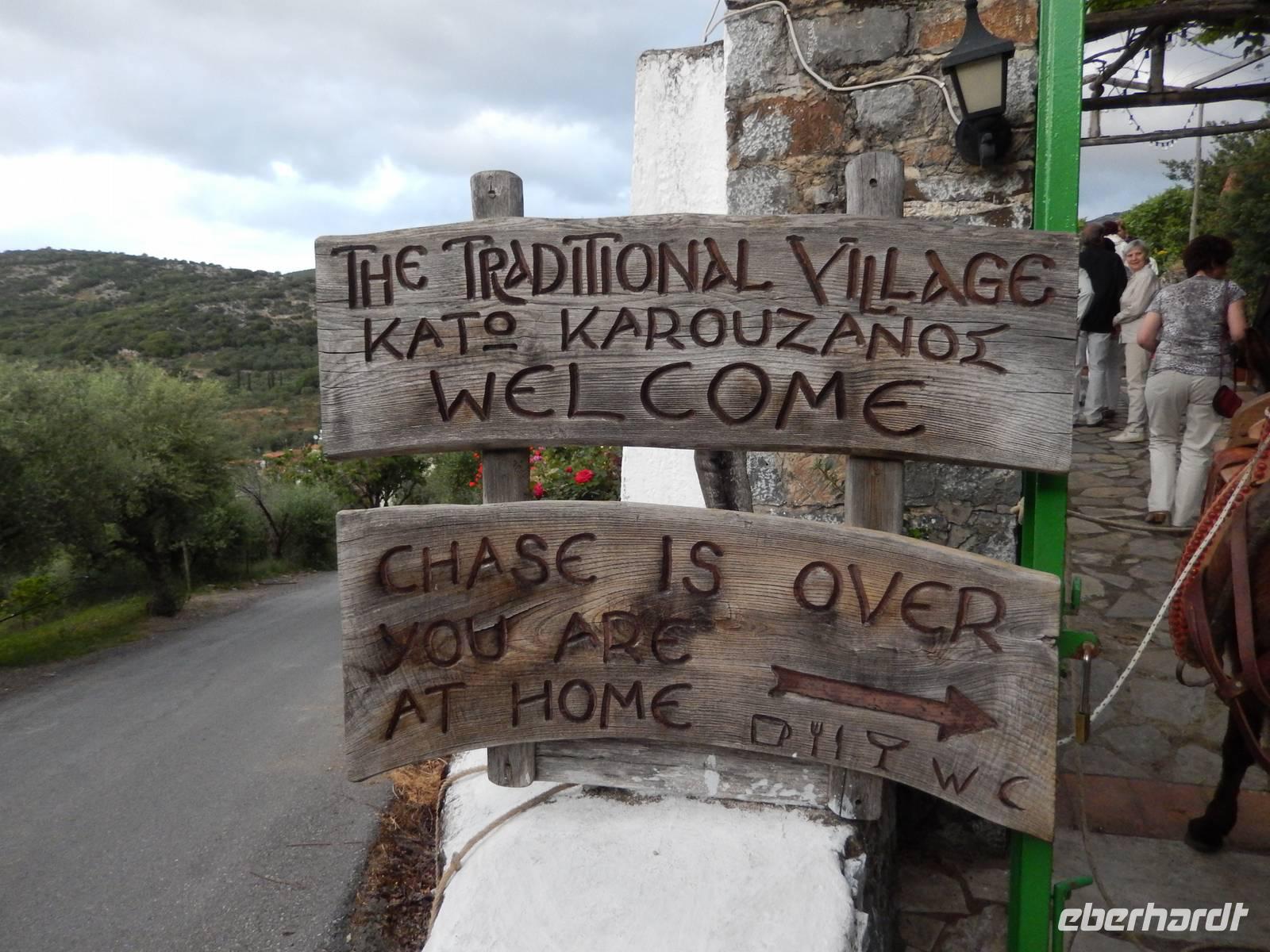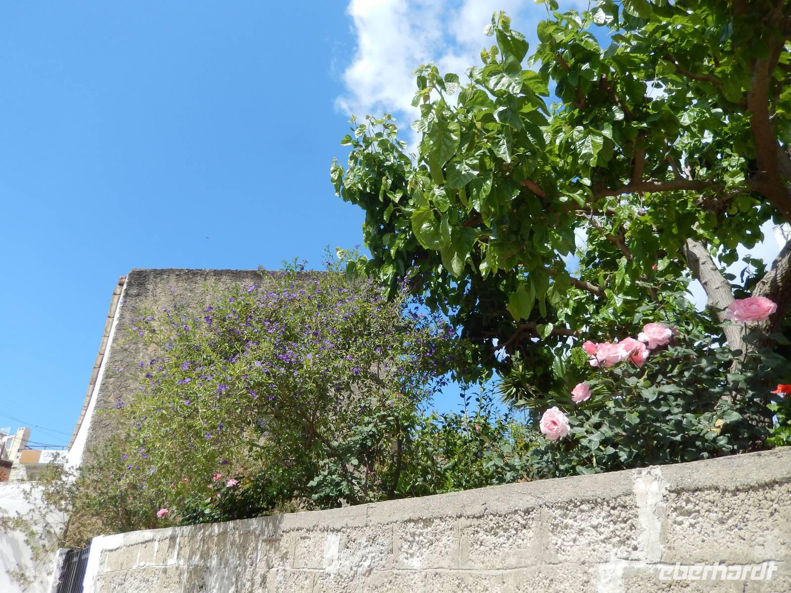 Unsere Reise führte uns heute in die einstige Inselshauptstadt Chania. Sie ist bekannt für ihren venezianischen Hafen mit Leuchtturm, den türkischen Bauten und der großen Festung. Mit Maria machten wir als Erstes einen Stadtrundgang um die wichtigsten Punkte der Stadt kennenzulernen. Wir schlenderten durch das jüdische Viertel, das mit den üppigen Bougainvillean und Rosen immer wieder tolle Fotomotive bot. Dann ging es weiter am Hafen entlang bevor wir beim Archäologischen Museum in der venezianischen Kirche ankamen. Maria zeigte uns die vielen Ausstellungsstücke aus vergangener Zeit und deren Bedeutung. Nach dem Besuch konnte dann Jeder noch individuell durch Chania bummeln. Maria und ich kauften alles für unser kretisches Picknick ein, dass wir auf Grund eines kleinen Busproblems etwas früher als geplant durchführten. Aber der Platz war schön und passend für unser „kleines Dinner". Alle packten mit an, schnippelten Gemüse, Fetakäse und Wurst - alles zusammen mit etwas Salz, Oregano und Olivenöl vermischt ergab unseren leckeren, griechischen Salat. Dazu gab es Brot, Tzatziki, Erbsenpaste, Oliven und natürlich Wein...hmmmm lecker! In der Zwischenzeit hatte unser Busfahrer Jorgos auch das kleine Problem mit dem Bus geregelt, so dass wir weiter fahren konnten zum Ausgangspunkt unserer heutigen Wanderung. Der erste Teil verlief steil bergan auf einem einstigen Landweg, der in den letzten Jahren leider asphaltiert wurde, so dass der Weg sehr mühselig war. Aber die Ausblicke waren dennoch sehr schön und entschädigten die Mühen. Nach dem kleinen Ort Zourvas bogen wir dann ab auf einen Feldweg ab, wanderten durch Orangen- und Zitronenhaine und kamen schließlich in unserem Zielort Messkla an.
