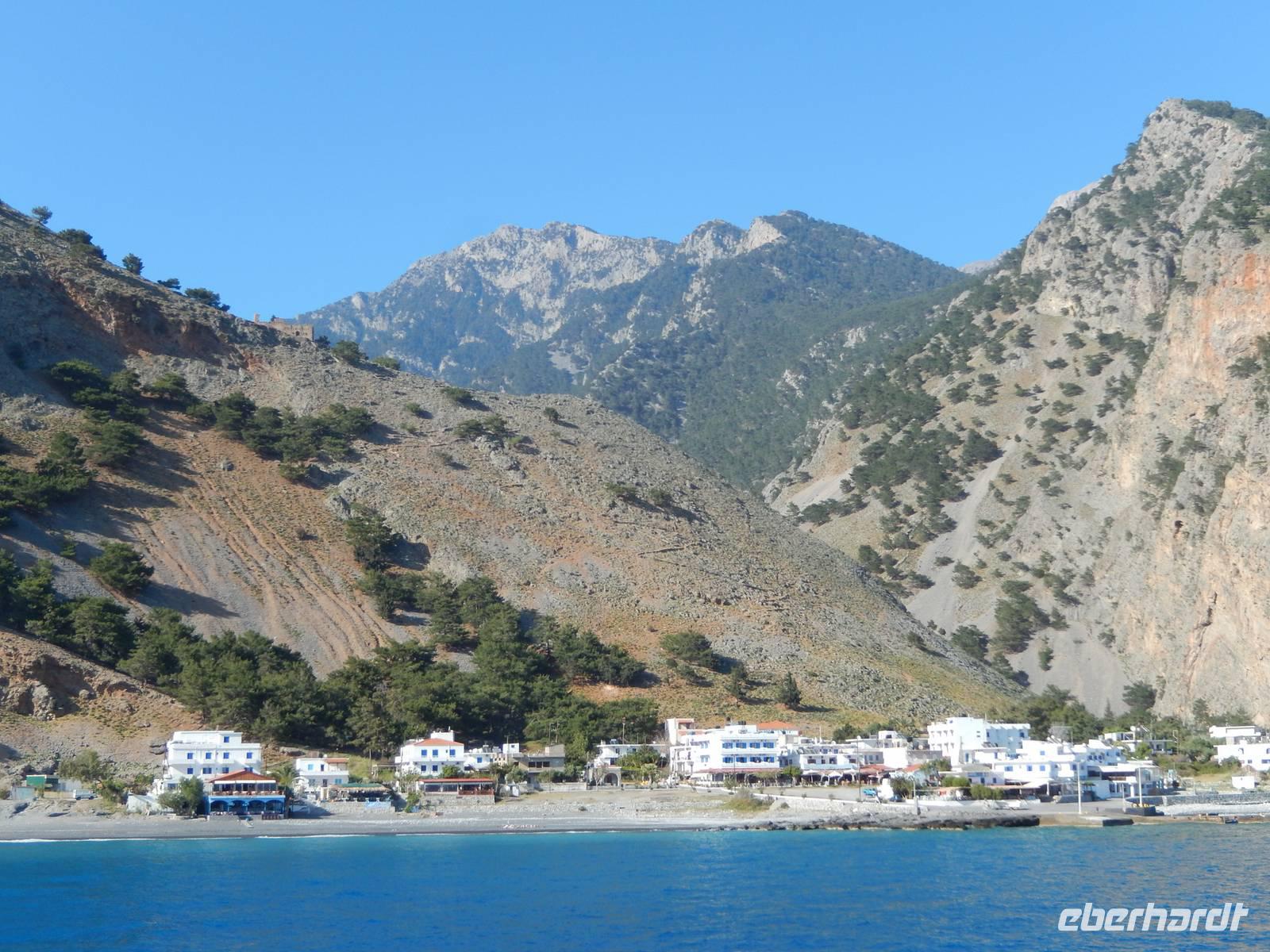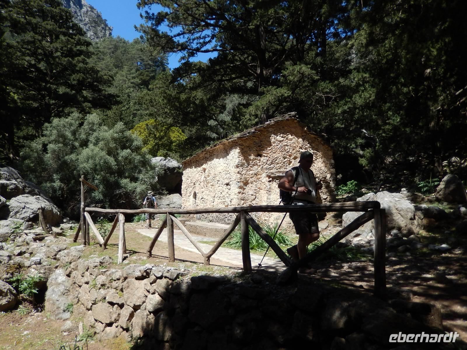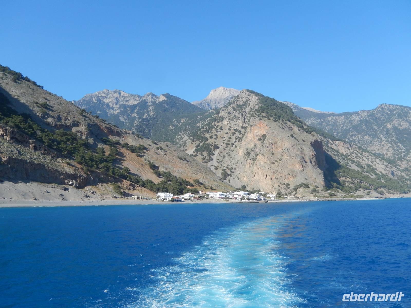 Auf den heutigen Tag freuten wir uns schon die ganze Woche: die Wanderung in die längste Schlucht Europas, in die Samaria-Schlucht. Die Sonne lachte wieder und so ging es gegen acht Uhr in den Süden der Insel zum Ausgangspunkt der Wanderung. Ich verteilte die Eintrittskarten, die Jeder sorgsam aufbewahren sollte, da am Ende der Schlucht kontrolliert wird, ob auch alle Gäste die Schlucht verlassen haben. Auf 1250m begannen wir nun die Tour von der Omalos-Hochebene durch die Bergwelt Lefka Ori bis zum Lybischen Meer. Die Tour führte zunächst über viele Steinstufen hinab auf den Schluchtgrund und die steilen, eindrucksvollen Felswände präsentierten sich in voller Schönheit. Es ging weiter bergab vorbei an vielen Kiefern, uralten Zypressen und riesengroßen Felsblöcken. Zwischendurch gibt es immer einige Rastplätze und Quellen, die zum Pausieren bzw. Erfrischen einluden. Wir pausierten an einem schattigen Plätzchen und verzehrten unser leckeres Sandwich. Der Weg führte nun über Geröll und Flussstege, aber man musste immer wieder stehenbleiben um die gewaltigen Steinwände zu betrachten. Bald darauf verengte sich die Schlucht und wir passierten die „Eiserne Pforte", die mit 3 Metern engste Stelle der Schlucht. Von hier aus wanderten wir an vielen Oleandern und kleineren Ruinen vorbei bis in den Küstenort Agia Roumeli. Dort angekommen, entspannten wir uns in einer Taverne bei einem leckeren Eis oder einem kühlen Bier. Dann war noch etwas Zeit am Strand zu verweilen bevor es mit der Fähre nach Sougia und wieder zurück ins Hotel ging. Alle waren sehr zufrieden, glücklich und stolz die Tour gemeistert zu haben. Als Abschluss dieser gelungenen Tour spendierte ich einen kretischen Raki und wir stießen gemeinsam an. Im Hotel angekommen, hatten wir uns unser Abendessen redlich verdient!