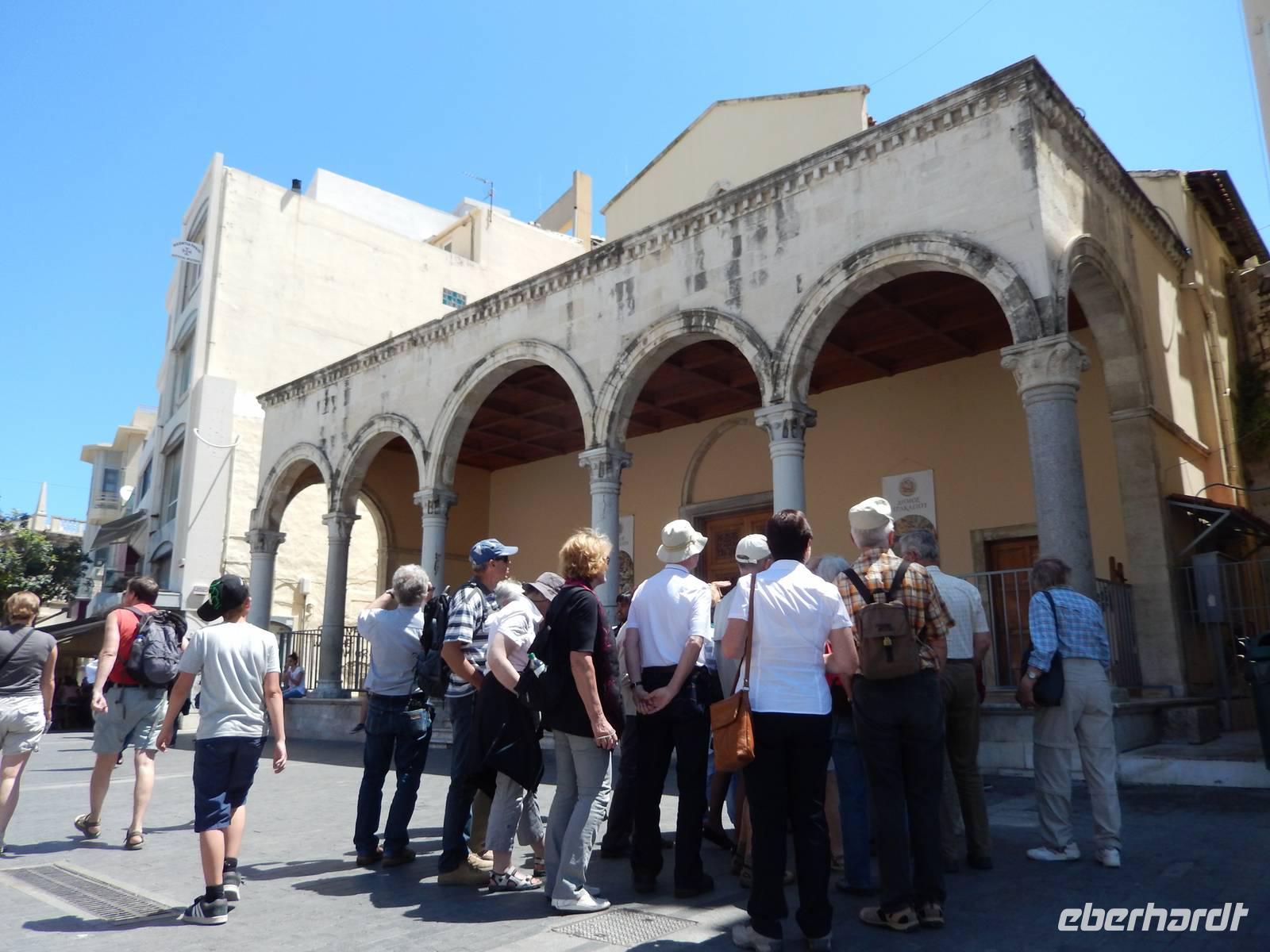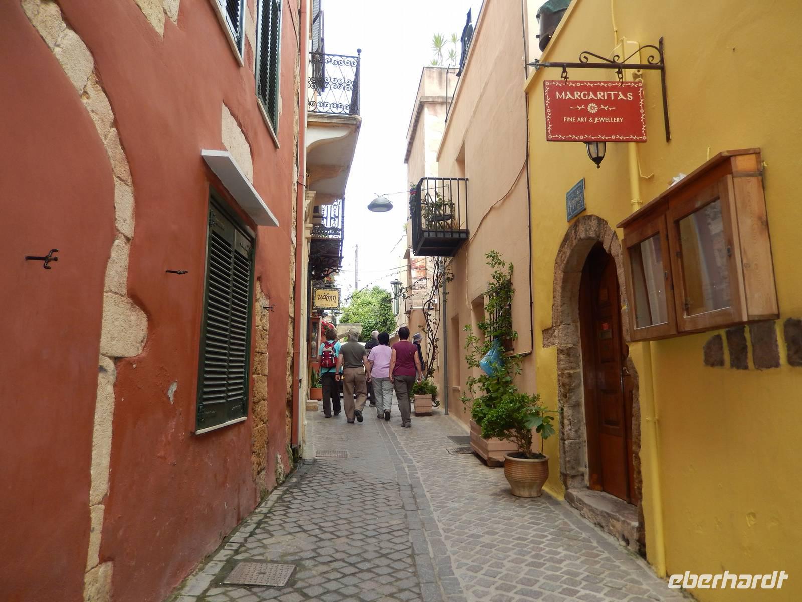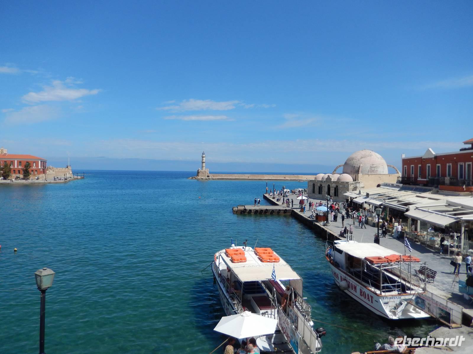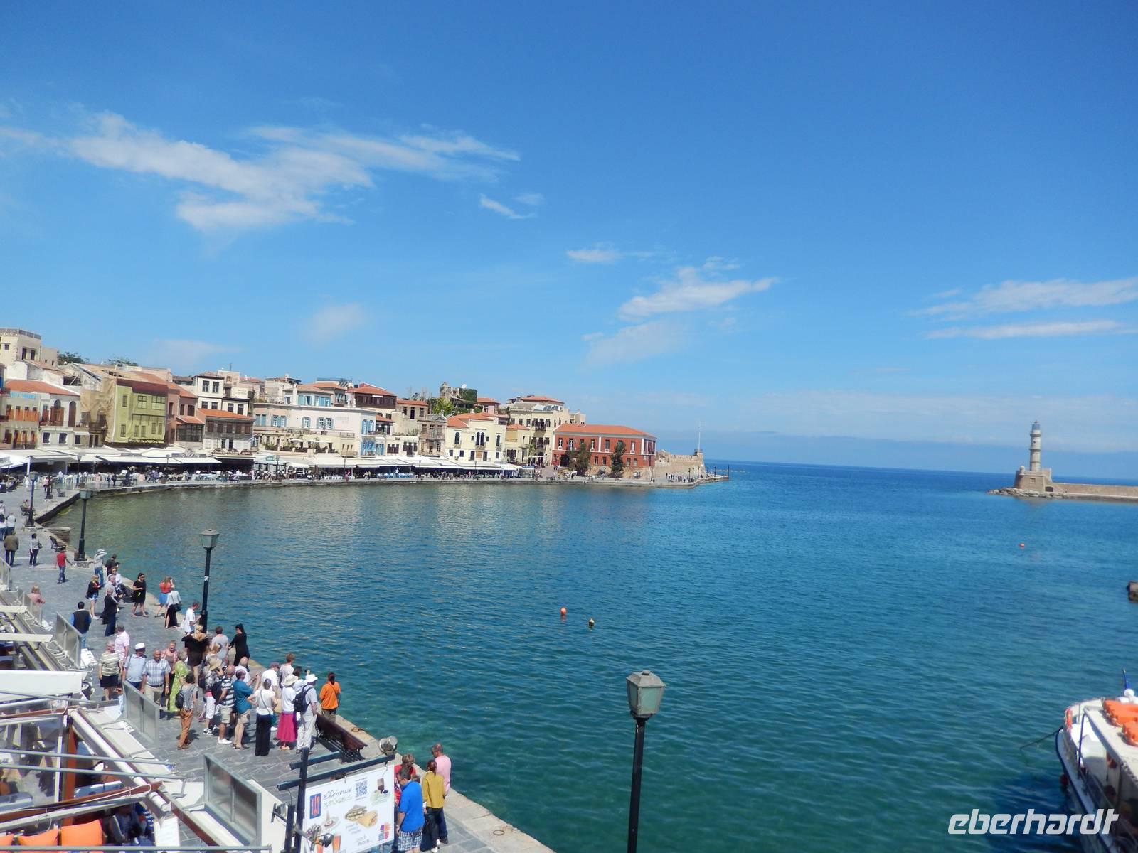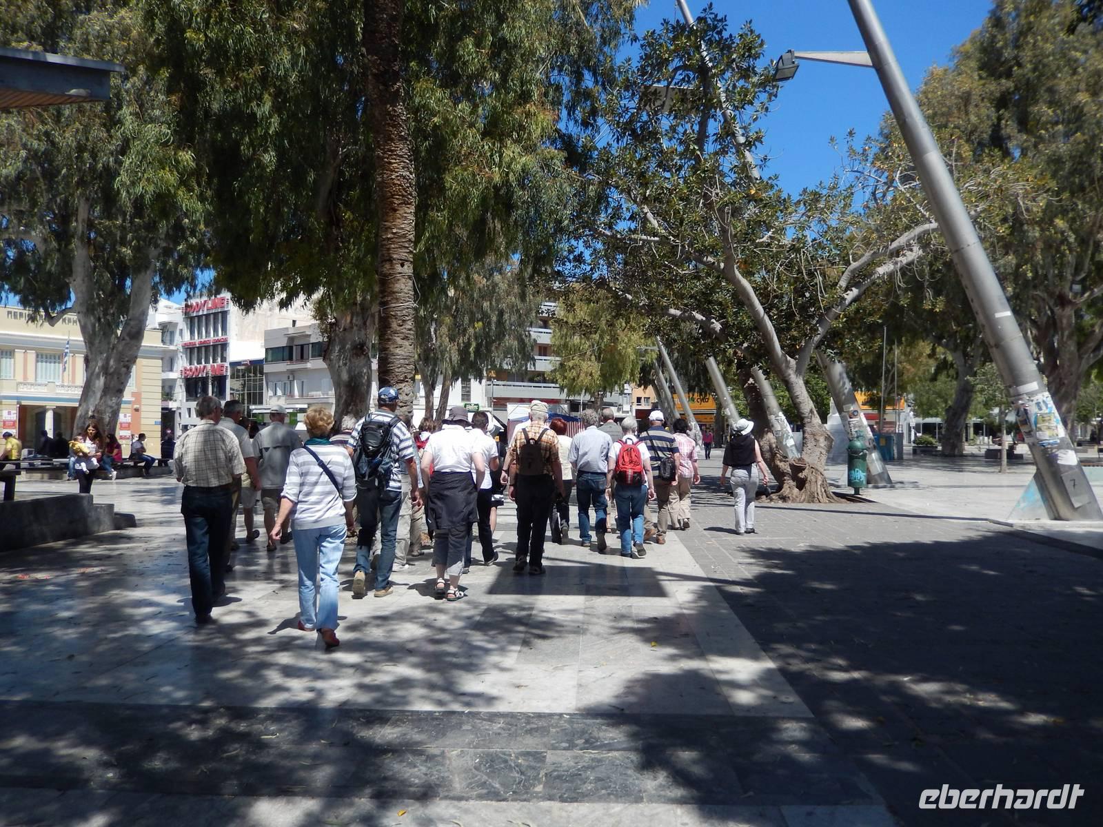 Heute zum Maifeiertag machten wir dem Namen alle Ehre und gönnten unseren Wanderschuhen auch einmal eine Pause. Standesgemäß läuteten wir den Feiertag bei einer Wein- und Ölprobe in Peza ein. Bei einem kurzen Film über die Traditionen im Oliven- und Weinanbau in dieser Region bekamen wir einen ersten Eindruck von der Theorie. Bei den Proben der verschiedenen Öle und Weine konnten wir uns dann auch unsere Meinung über den Geschmack bilden. Natürlich nahm der ein oder andere noch ein Souvenir für sich selbst oder die liebe Familie mit. Anschließend fuhren wir weiter in die Inselshauptstadt Heraklion. Diese Stadt ist mit über 140.000 Einwohnern groß, bunt und quicklebendig. Am heutigen Feiertag waren zwar die Geschäfte geschlossen, dennoch tobte das Leben in den vielen Cafés, Tavernen und Bars. Wir spazierten zu Beginn mit Maria gemeinsam durch die Straßen, die uns die schönsten und interessantesten Plätze zeigte. Dann konnte jeder individuell durch die Gassen schlendern oder das Treiben zum Beispiel bei einem Kaffee am Löwenbrunnen beobachten. Nun machten wir uns auf den Weg nach Chania, um in unser zweites Hotel Silver Beach zu fahren. Schön ruhig und direkt am Meer gelegen, lud dies noch ein um am Nachmittag einen Strandspaziergang zu unternehmen.