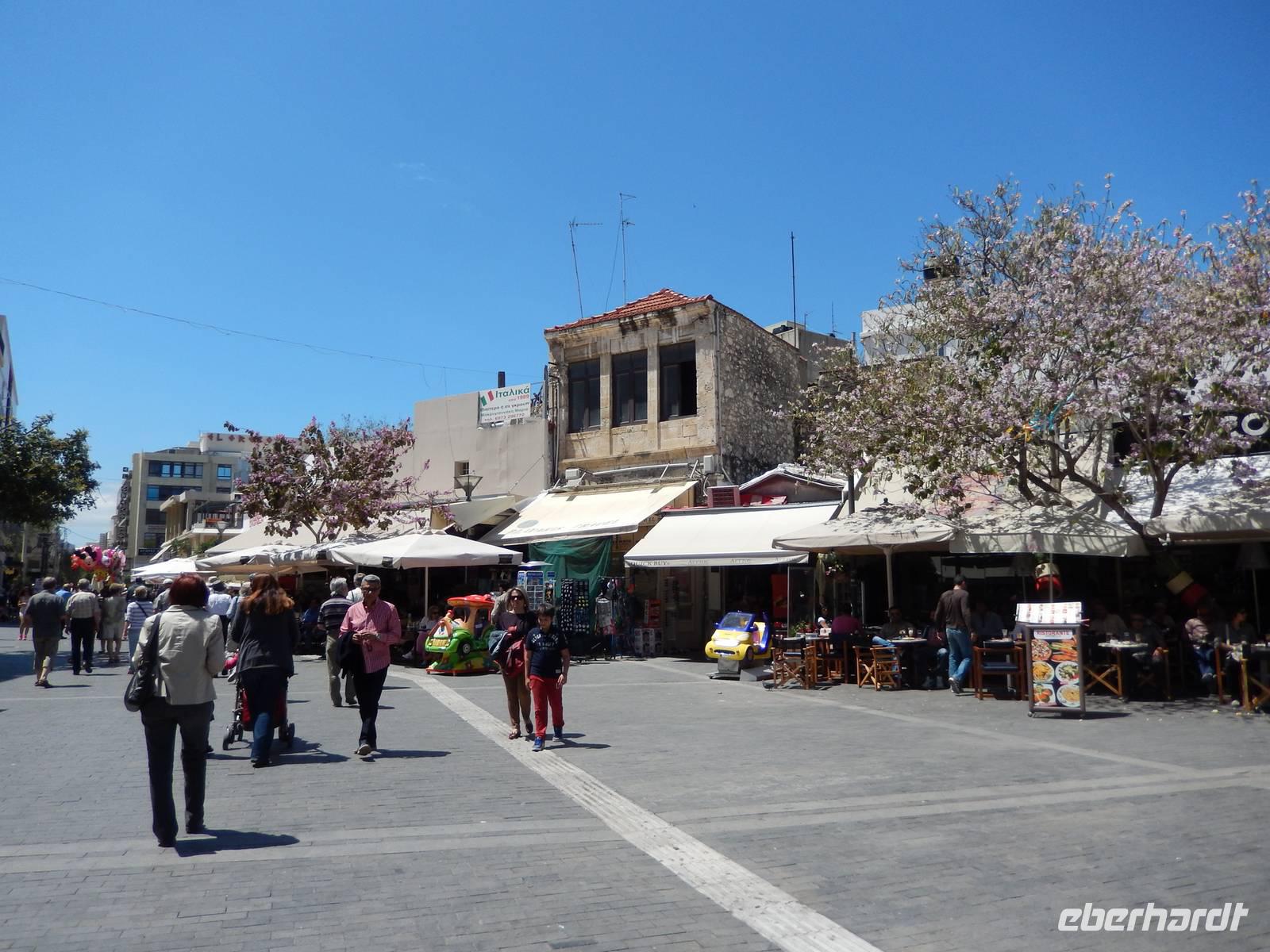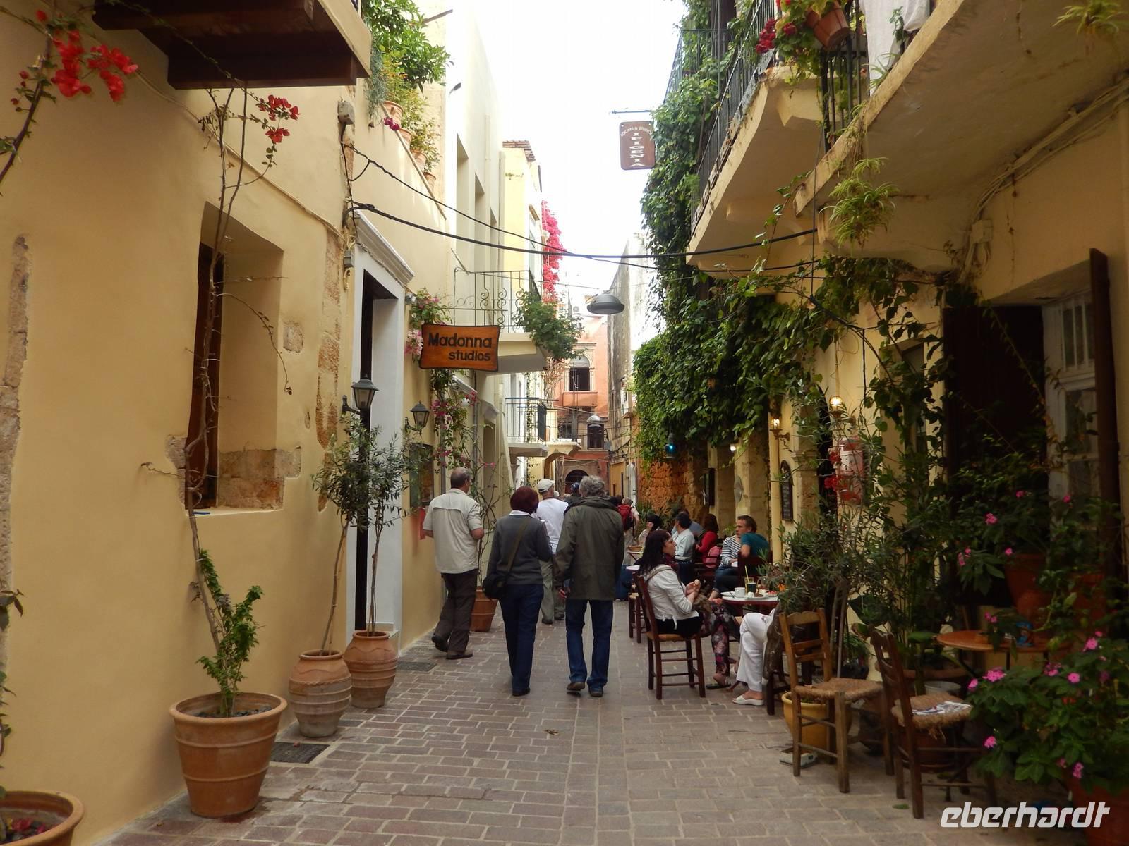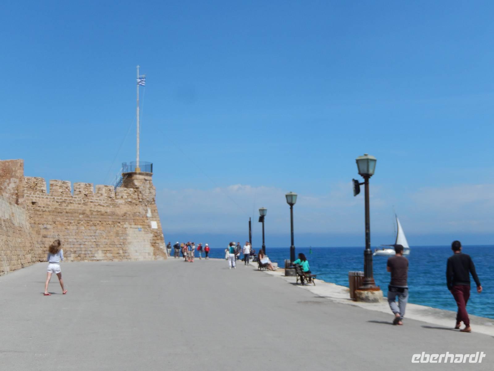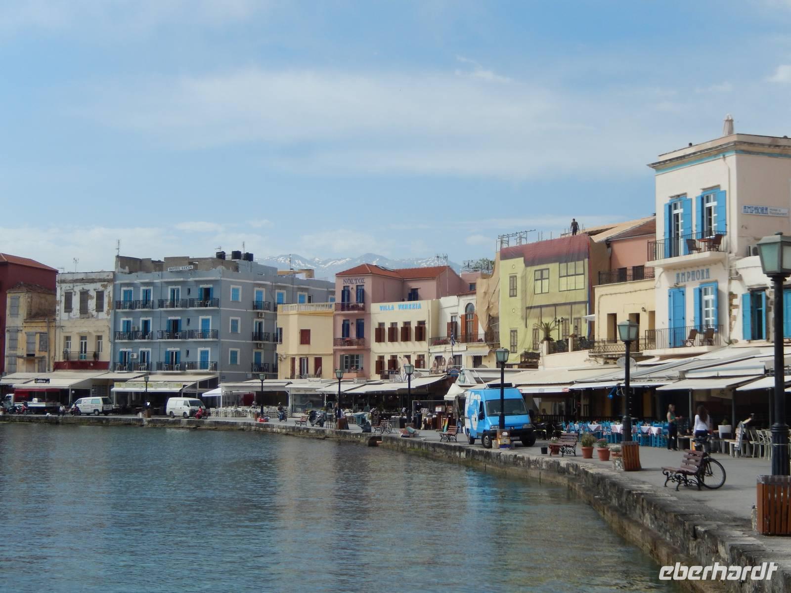 Heute zum Maifeiertag machten wir dem Namen alle Ehre und gönnten unseren Wanderschuhen auch einmal eine Pause. Standesgemäß läuteten wir den Feiertag bei einer Wein- und Ölprobe in Peza ein. Bei einem kurzen Film über die Traditionen im Oliven- und Weinanbau in dieser Region bekamen wir einen ersten Eindruck von der Theorie. Bei den Proben der verschiedenen Öle und Weine konnten wir uns dann auch unsere Meinung über den Geschmack bilden. Natürlich nahm der ein oder andere noch ein Souvenir für sich selbst oder die liebe Familie mit. Anschließend fuhren wir weiter in die Inselshauptstadt Heraklion. Diese Stadt ist mit über 140.000 Einwohnern groß, bunt und quicklebendig. Am heutigen Feiertag waren zwar die Geschäfte geschlossen, dennoch tobte das Leben in den vielen Cafés, Tavernen und Bars. Wir spazierten zu Beginn mit Maria gemeinsam durch die Straßen, die uns die schönsten und interessantesten Plätze zeigte. Dann konnte jeder individuell durch die Gassen schlendern oder das Treiben zum Beispiel bei einem Kaffee am Löwenbrunnen beobachten. Nun machten wir uns auf den Weg nach Chania, um in unser zweites Hotel Silver Beach zu fahren. Schön ruhig und direkt am Meer gelegen, lud dies noch ein um am Nachmittag einen Strandspaziergang zu unternehmen.