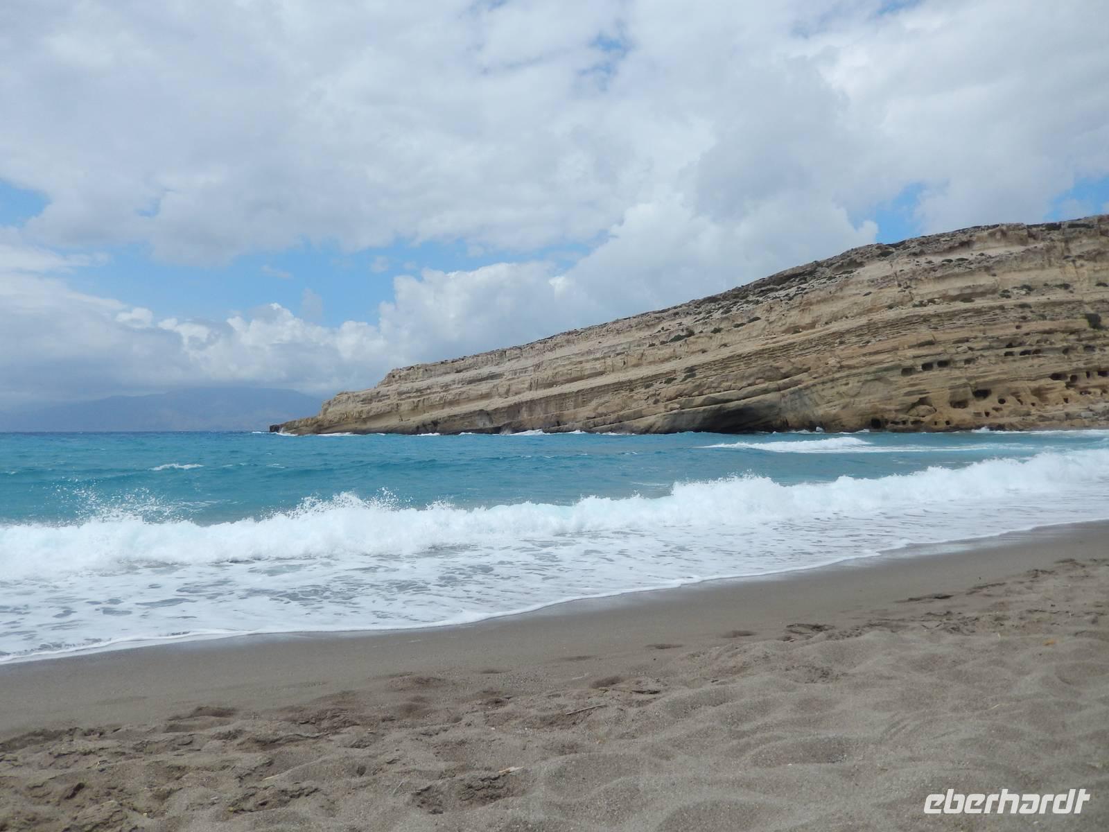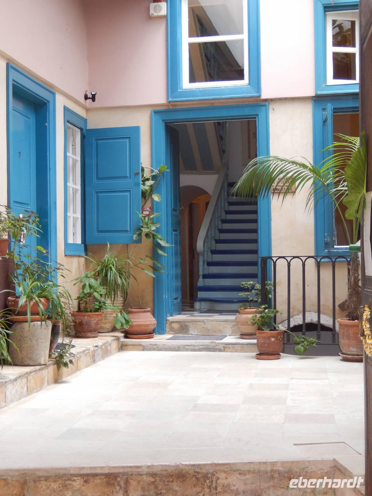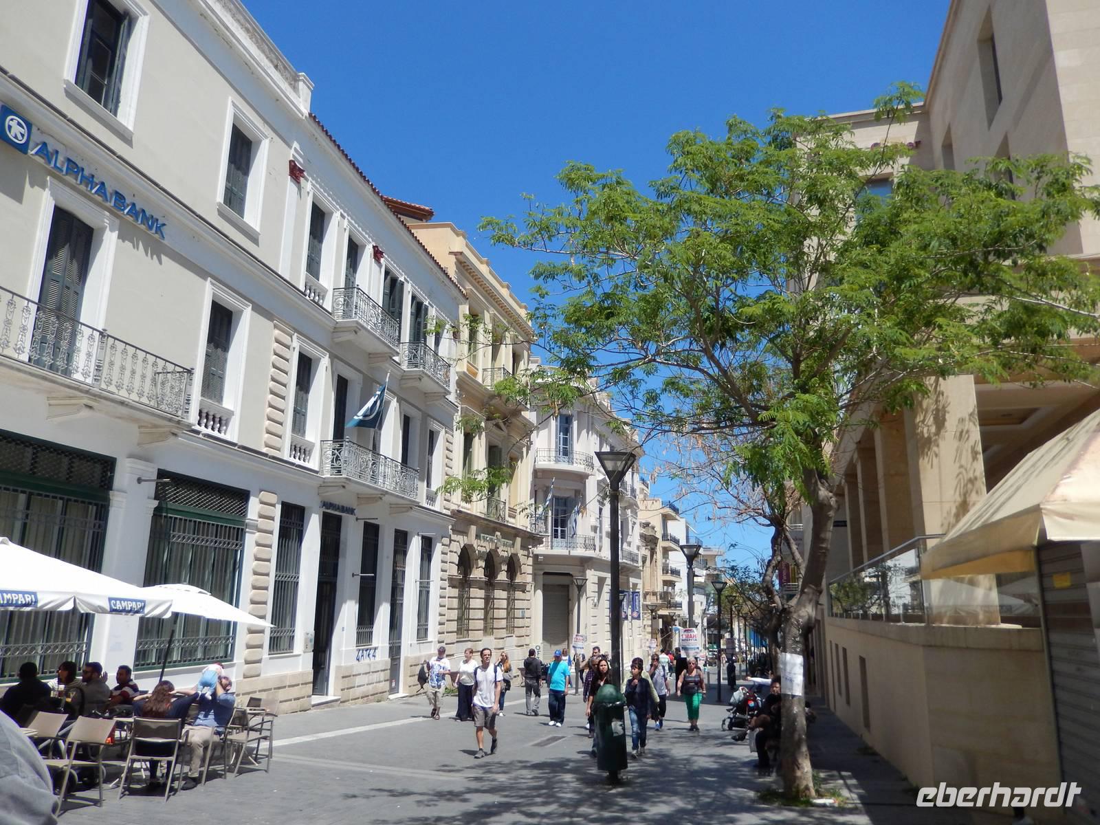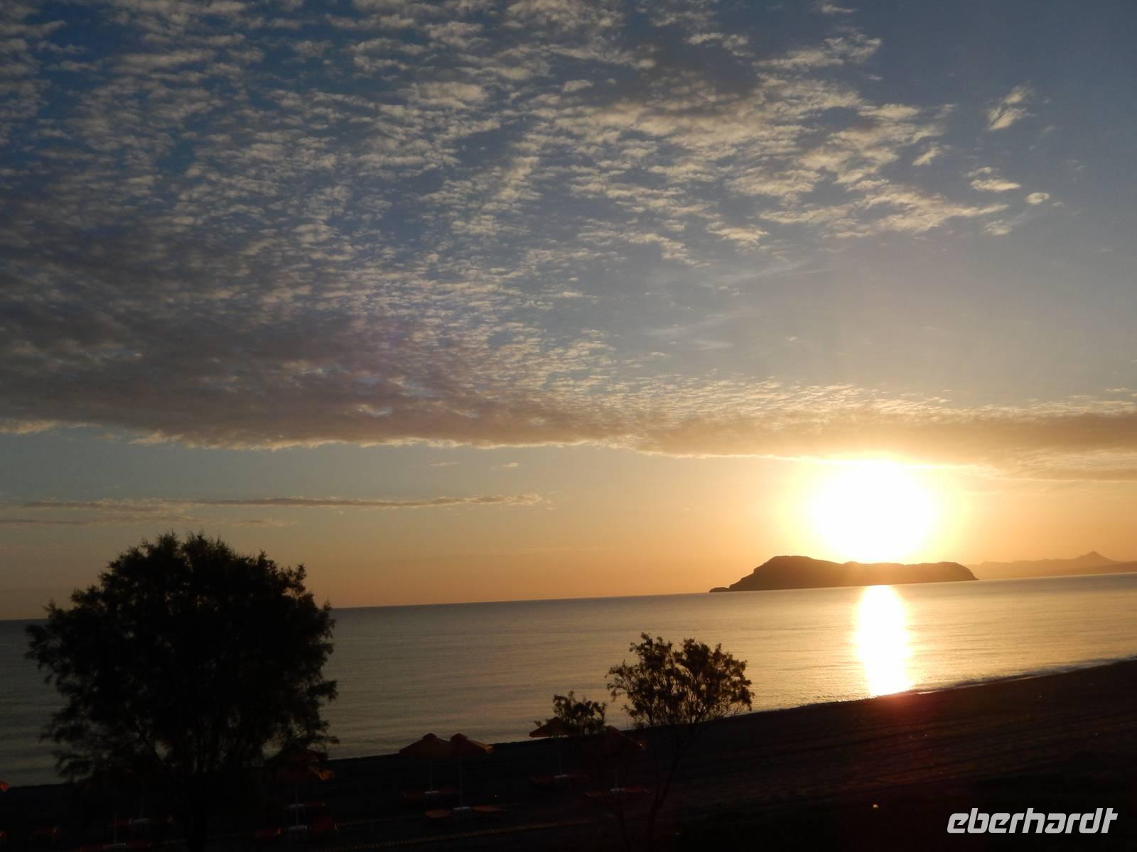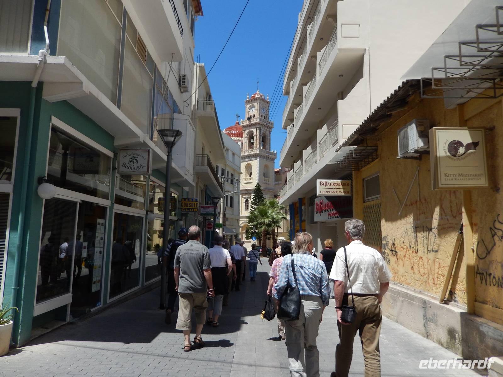 Heute zum Maifeiertag machten wir dem Namen alle Ehre und gönnten unseren Wanderschuhen auch einmal eine Pause. Standesgemäß läuteten wir den Feiertag bei einer Wein- und Ölprobe in Peza ein. Bei einem kurzen Film über die Traditionen im Oliven- und Weinanbau in dieser Region bekamen wir einen ersten Eindruck von der Theorie. Bei den Proben der verschiedenen Öle und Weine konnten wir uns dann auch unsere Meinung über den Geschmack bilden. Natürlich nahm der ein oder andere noch ein Souvenir für sich selbst oder die liebe Familie mit. Anschließend fuhren wir weiter in die Inselshauptstadt Heraklion. Diese Stadt ist mit über 140.000 Einwohnern groß, bunt und quicklebendig. Am heutigen Feiertag waren zwar die Geschäfte geschlossen, dennoch tobte das Leben in den vielen Cafés, Tavernen und Bars. Wir spazierten zu Beginn mit Maria gemeinsam durch die Straßen, die uns die schönsten und interessantesten Plätze zeigte. Dann konnte jeder individuell durch die Gassen schlendern oder das Treiben zum Beispiel bei einem Kaffee am Löwenbrunnen beobachten. Nun machten wir uns auf den Weg nach Chania, um in unser zweites Hotel Silver Beach zu fahren. Schön ruhig und direkt am Meer gelegen, lud dies noch ein um am Nachmittag einen Strandspaziergang zu unternehmen.