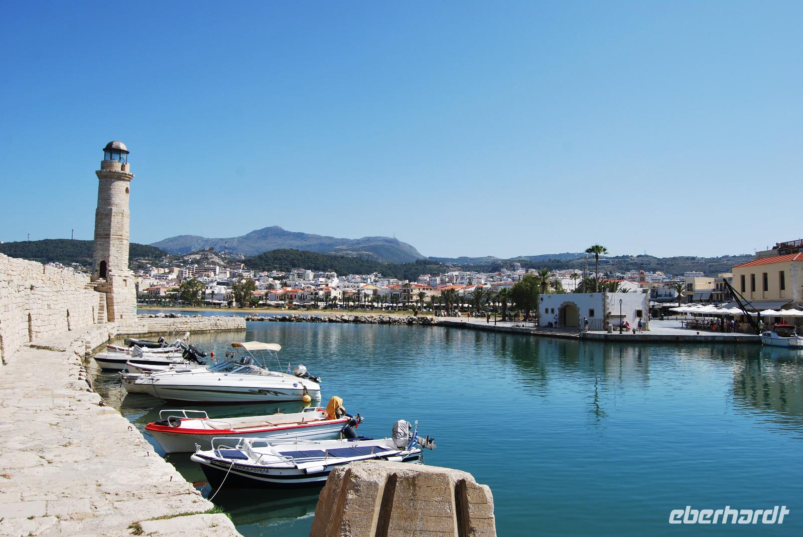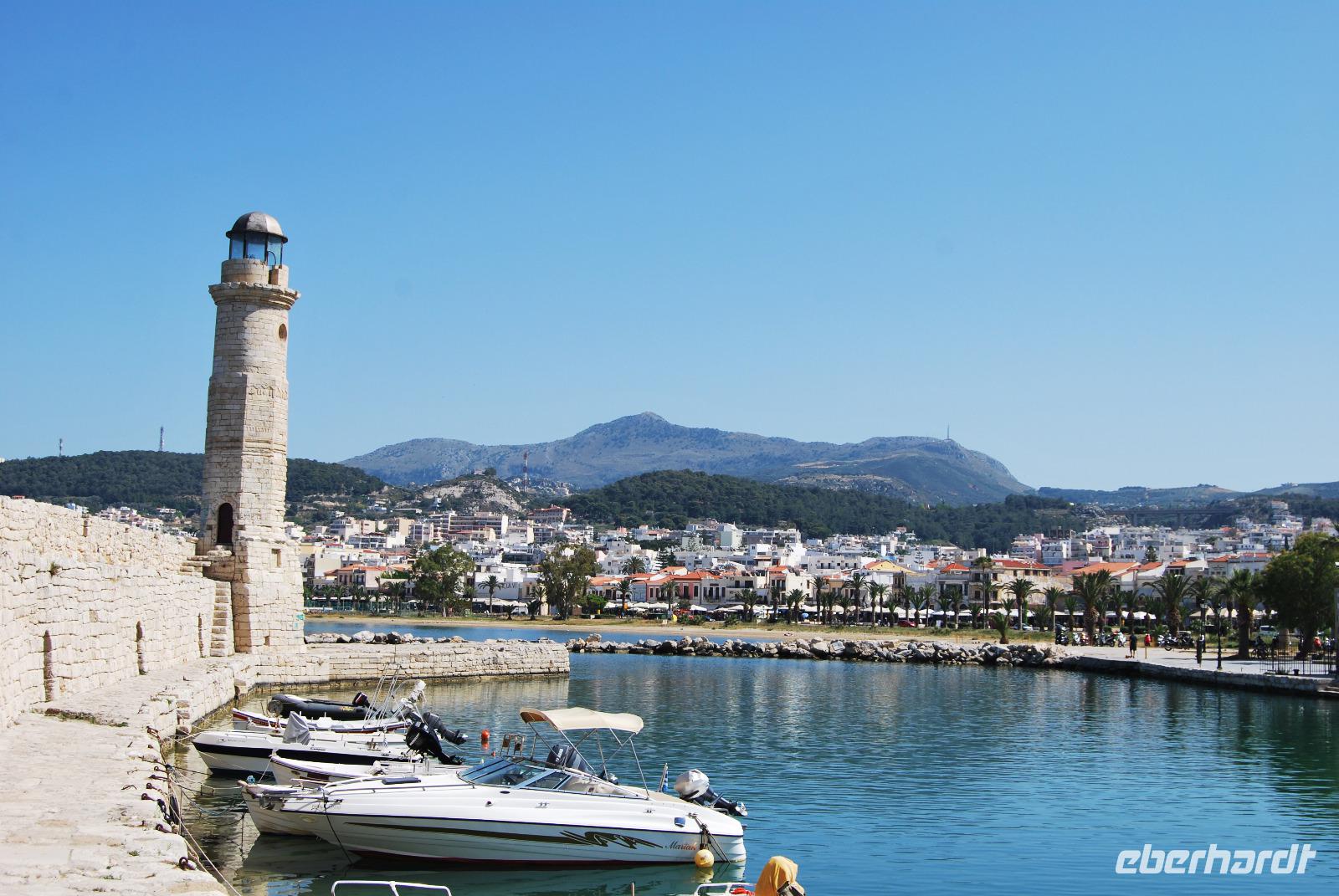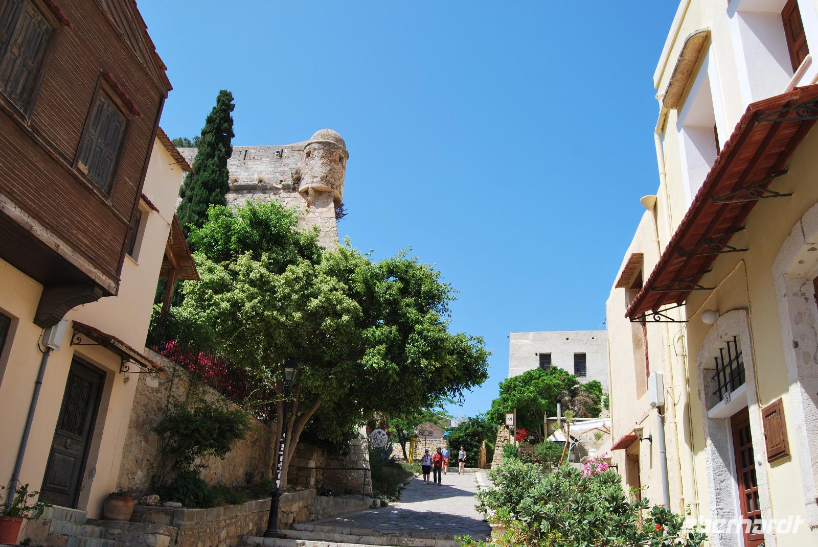Mit dem Bus fuhren wir noch ein wenig weiter, bis wir dann eine grüne Oase nahe Argyroupolis erreichten. Zauberhafte Wasserfälle waren in die Tavernen eingearbeitet. Das frische Nass sprudelte hier vom und aus dem Berg. So konnten wir es uns nicht nehmen lassen um hier auf die schnelle noch mal einzukehren. Zum späten Mittag ging es noch nach Reytimno. Eigentlich war der Aufenthalt nicht geplant, aber da wir nun schon öfters daran vorbeigefahren waren, interessierte uns die Stadt brennend. Wir besichtigten den alten Hafen, die Loggia und die niedlichen Gassen bis zum Venezianischen Brunnen Rimondi. Wer noch motiviert war und noch mehr Kultur vertragen konnte brachte den steilen Anstieg hinter sich um die Festungsanlage Fortezza zu besichtigen. Die Burg aus dem 16. Jahrhundert hat einiges zu bieten und nebenbei noch eine schöne Aussicht über Reytimno.