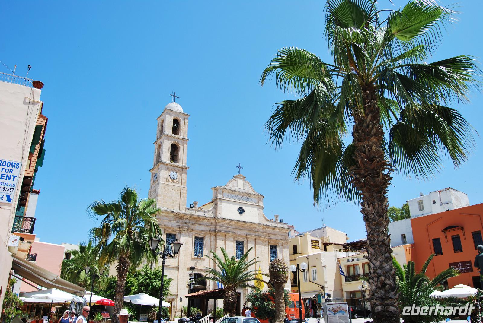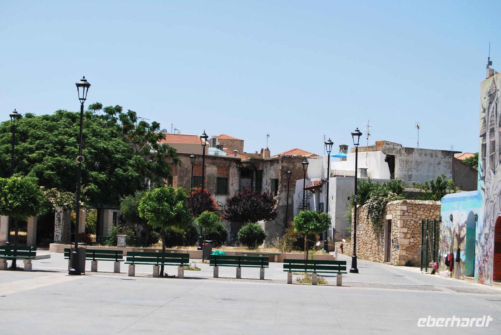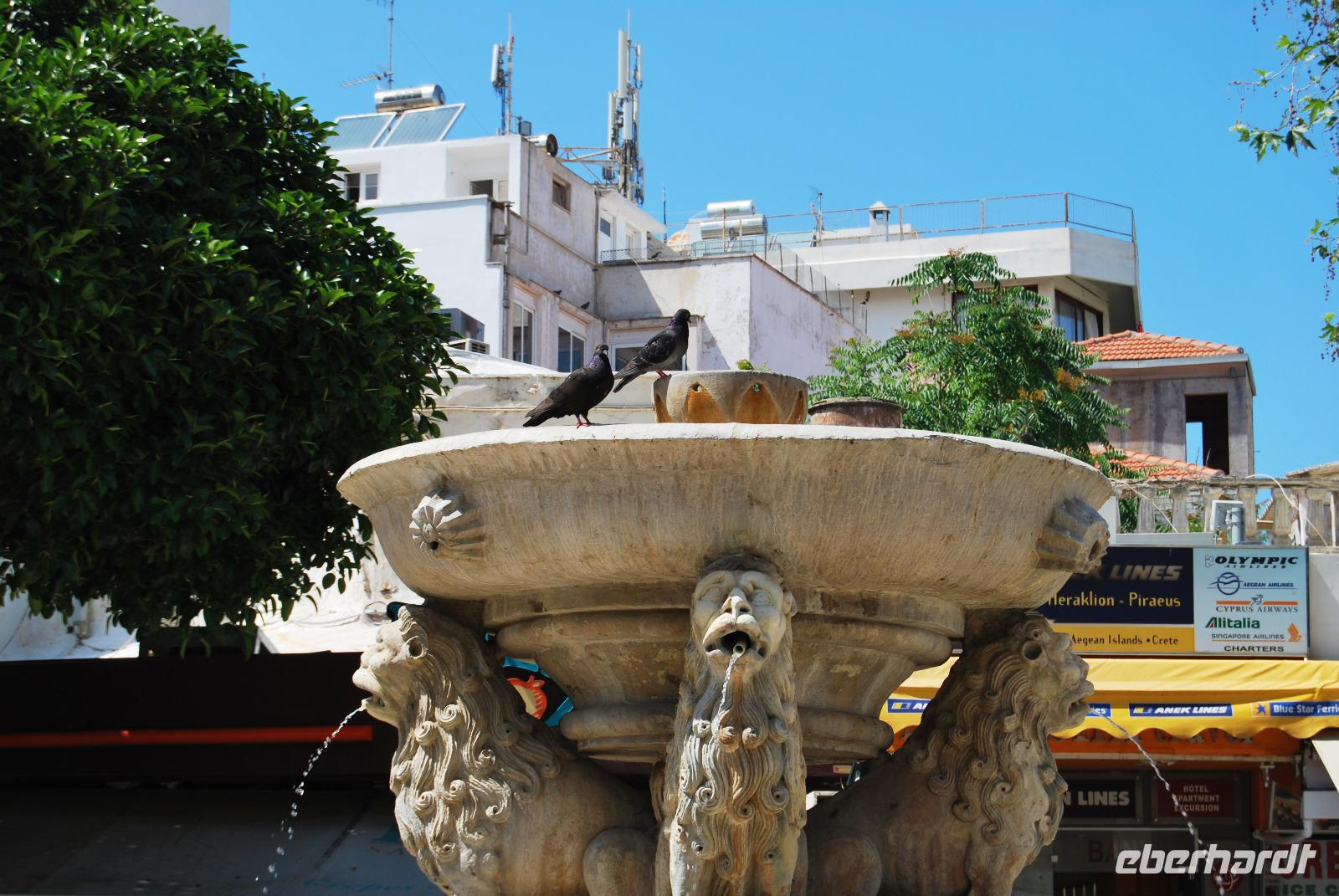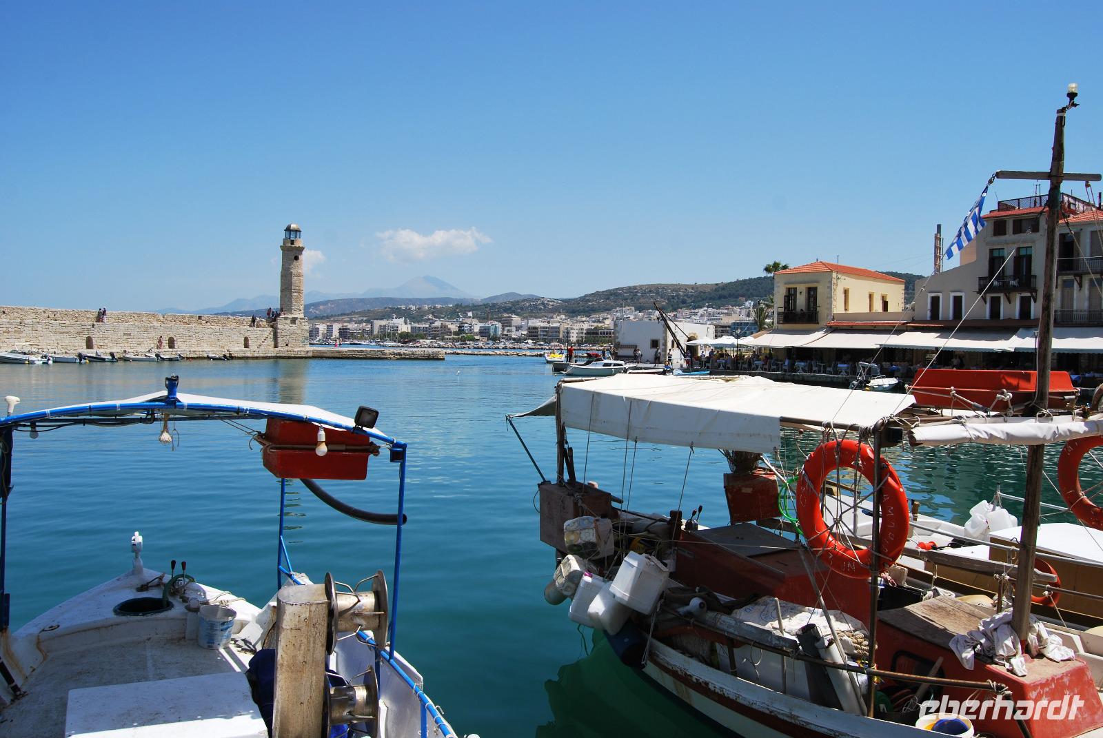 Mit dem Bus fuhren wir noch ein wenig weiter, bis wir dann eine grüne Oase nahe Argyroupolis erreichten. Zauberhafte Wasserfälle waren in die Tavernen eingearbeitet. Das frische Nass sprudelte hier vom und aus dem Berg. So konnten wir es uns nicht nehmen lassen um hier auf die schnelle noch mal einzukehren. Zum späten Mittag ging es noch nach Reytimno. Eigentlich war der Aufenthalt nicht geplant, aber da wir nun schon öfters daran vorbeigefahren waren, interessierte uns die Stadt brennend. Wir besichtigten den alten Hafen, die Loggia und die niedlichen Gassen bis zum Venezianischen Brunnen Rimondi. Wer noch motiviert war und noch mehr Kultur vertragen konnte brachte den steilen Anstieg hinter sich um die Festungsanlage Fortezza zu besichtigen. Die Burg aus dem 16. Jahrhundert hat einiges zu bieten und nebenbei noch eine schöne Aussicht über Reytimno.