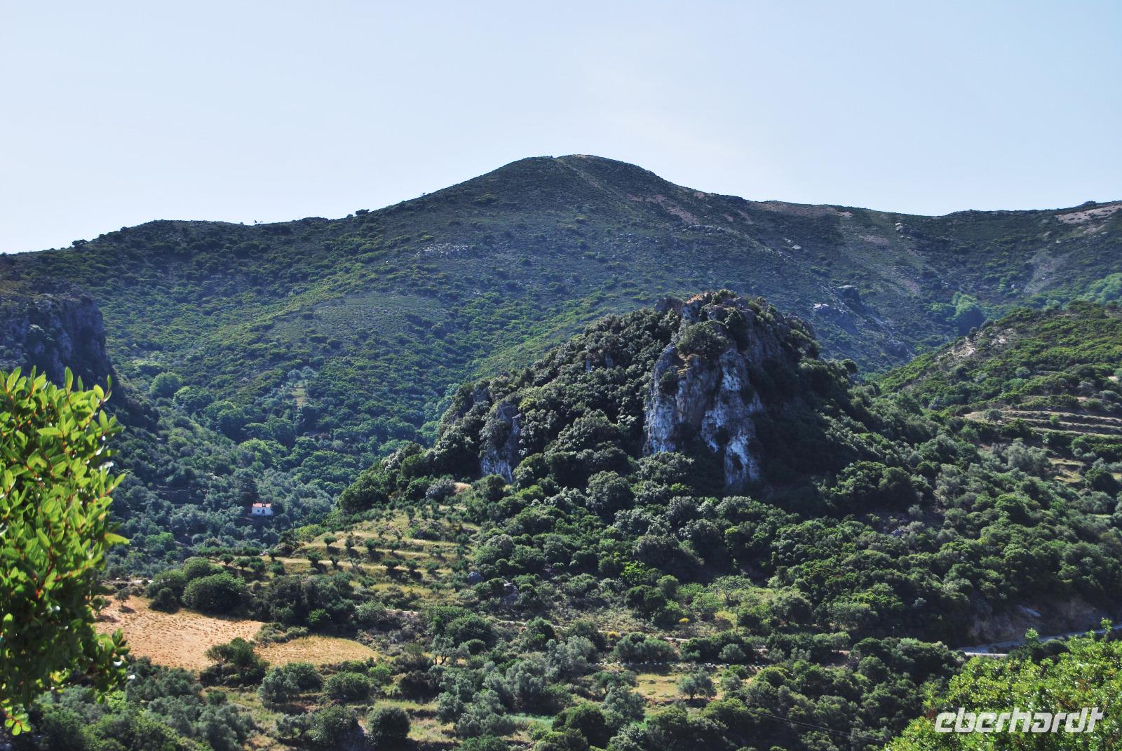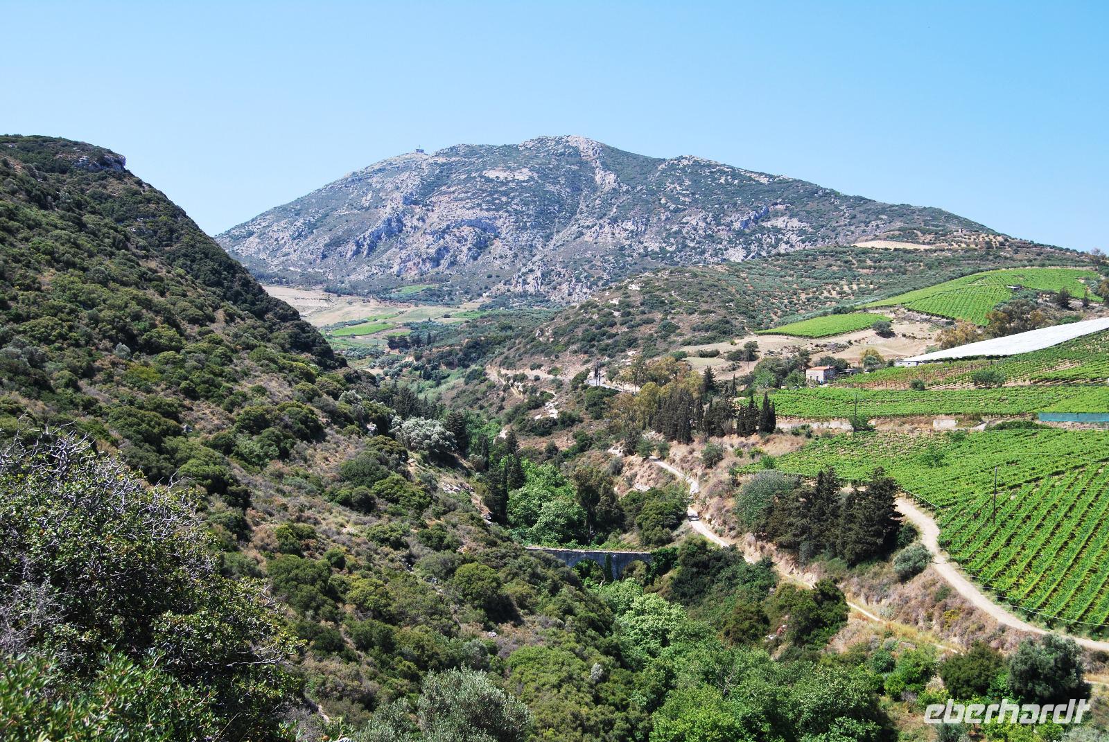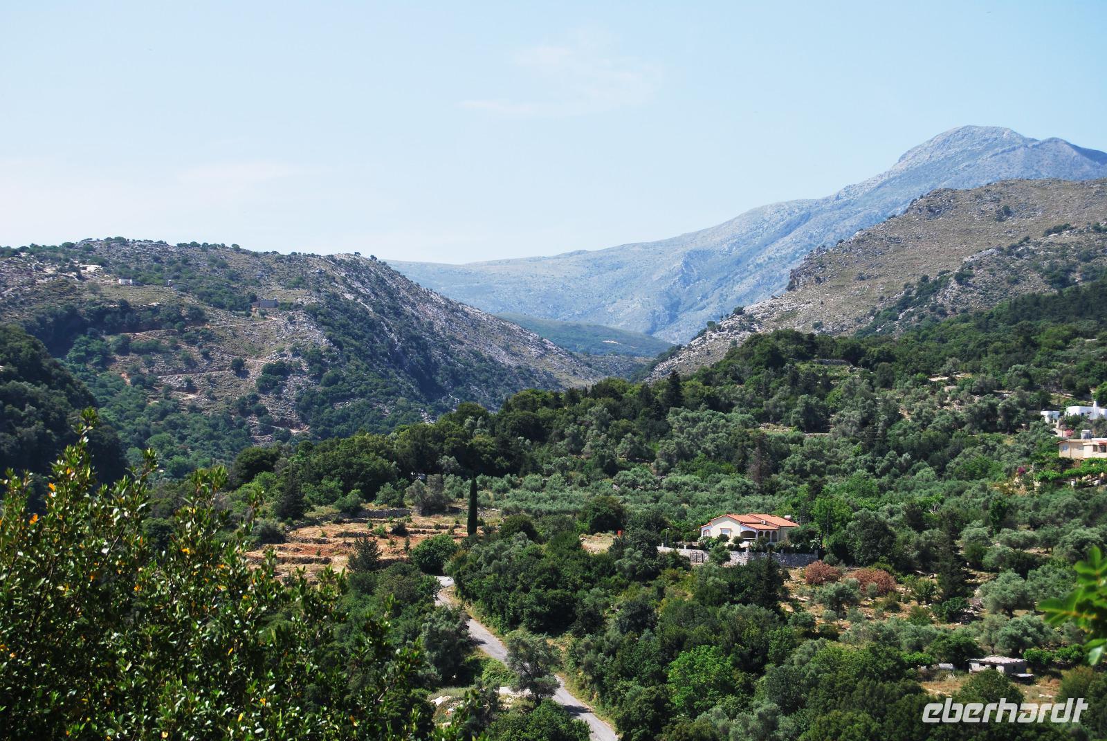 Wir konnten unser Frühstück entspannt auf der Restaurant-Terrasse einnehmen und schon mal ein wenig die Morgensonne genießen. Dann stand mal wieder die Fahrt nach Heraklion an. In der Nähe des Palastes von Knossos sammelten wir Kiki ein und fuhren ein Stück weiter. Von dort begannen wir die Wanderung in der Knosano Schlucht. Wir begannen die Wanderung durch dichtes Grün und hohe Gräser. Immer an einem Bach entlang. Schon einst die Minoer nutzen das herabfließende Wasser aus dieser Schlucht und leiteten diese geschickt in Tonröhren bis in die Paläste. An diesem sonnigen Vormittag hatten wir einen guten Blick auf den Berg Jouchtas wo wir sogar eine Kapelle oben drauf sehen konnten. Die Hänge, an denen wir wanderten, waren mit Wein und Olivenbäumen bepflanzt.