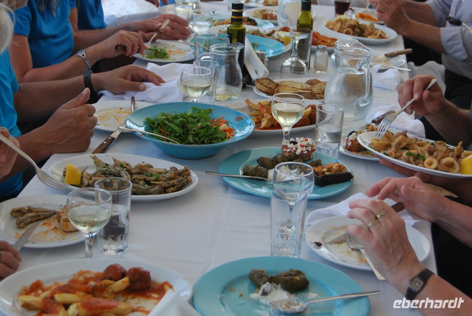 Zurück im Hotel blieb noch ausreichend Zeit für ein erfrischendes Bad im Kretischen Meer. Da es unser letzter Abend war, genossen wir diesen direkt am Strand. Bei untergehender Sonne genossen wir die Leckereien der griechischen Küche und hörten dem rauschen der Wellen zu.
