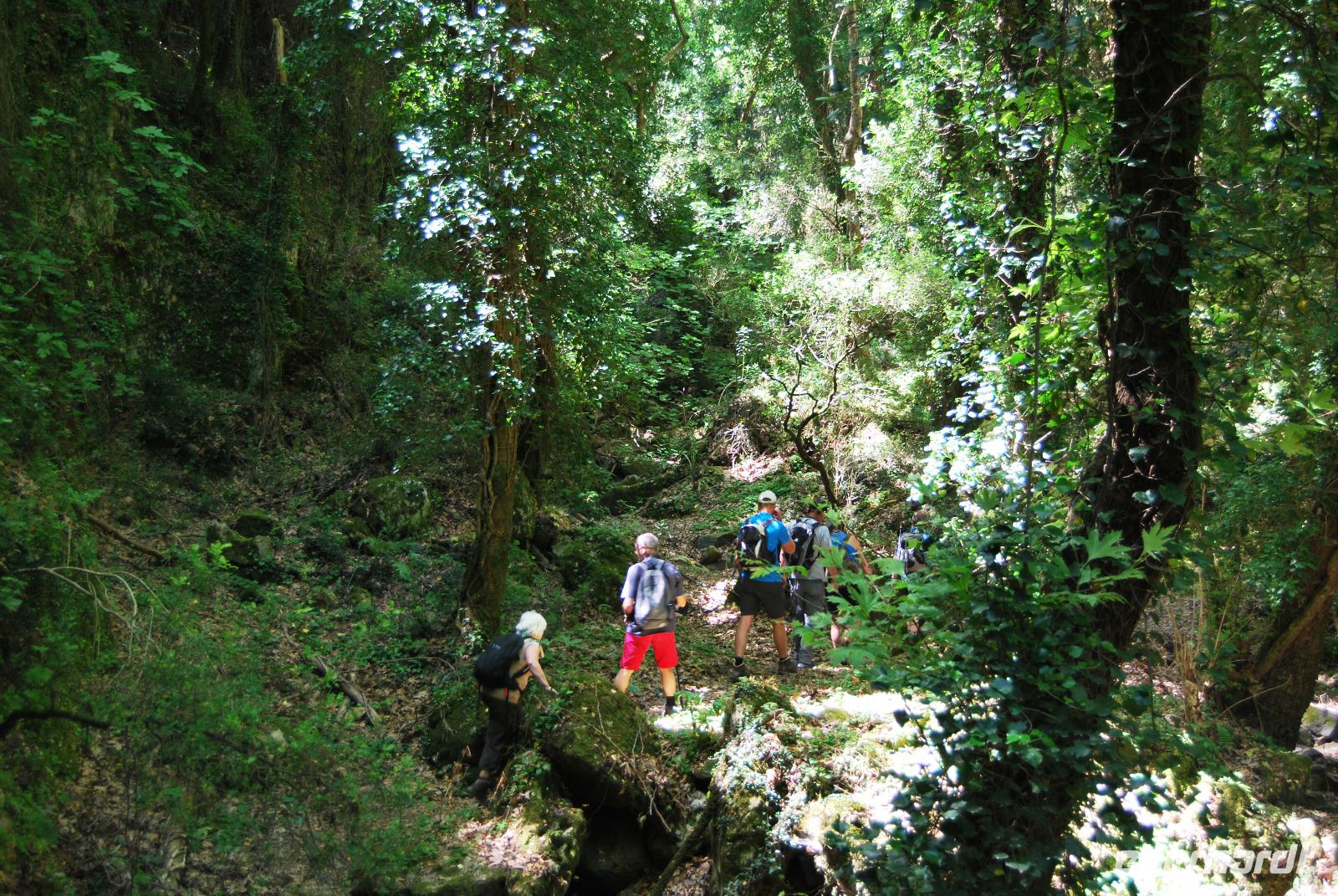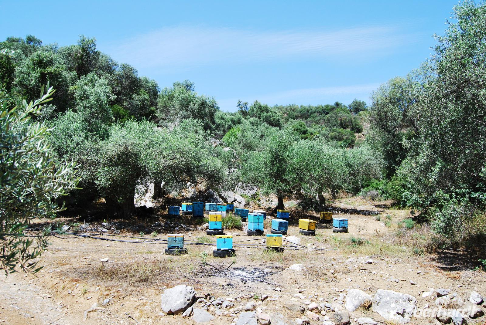 Wir starteten wieder mit einem ausgiebigen Frühstück. Bevor wir den Ort unserer Wanderung erreichten, erledigten wir noch ein paar Einkäufe im Supermarkt. So hatten wir für unser Picknick am Mittag schon mal gesorgt. In den Bergen hinter Chania, wanderten wir zwischen den Orten Chliaro und Karanos. Es war einen sehr schöne Wanderung. Der Eingang war wiedermal stark verwachsen und kaum zu entdecken. Größerer Bambus versperrte die Sicht. Der Weg war schmal und führte meist nach oben durch flachen Wald mit Lorbeerbäumen. Meist war es schattig, die Sonne blitzte immer wieder durch das Geäst. Zauberhafte Lichtreflektionen und Kontraste waren zu sehen. Um zwölf Uhr mittags erreichten wir dann unser Plätzchen zum Picknicken. Frische Gurken, Tomaten, Zwiebeln und Fetakäse wurde aufgeschnitten. Griechisches Oliven-Öl und Essig dazu - eben ein richtiger griechischer Salat. Mit Brot und Wein ergänzten wir unsere Mahlzeit. Zu guter Letzt durfte ein Raki und Lukumi - eine Süßspeise aus Honig und Zucker - nicht fehlen.