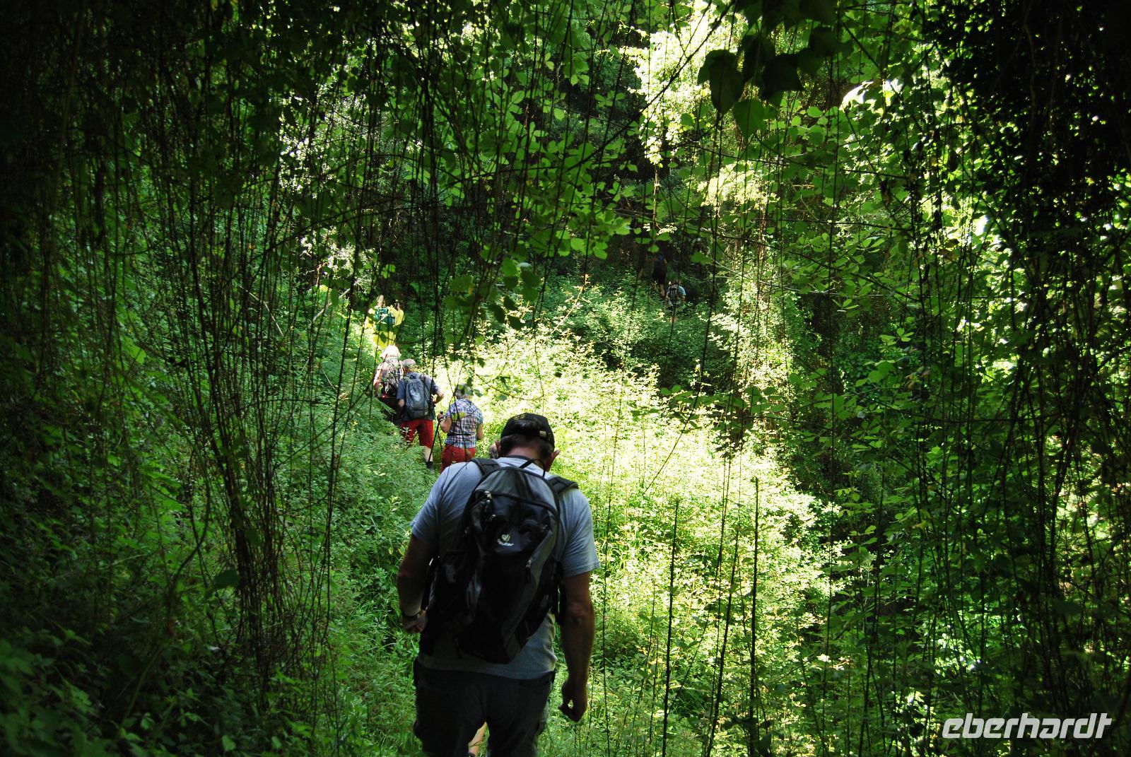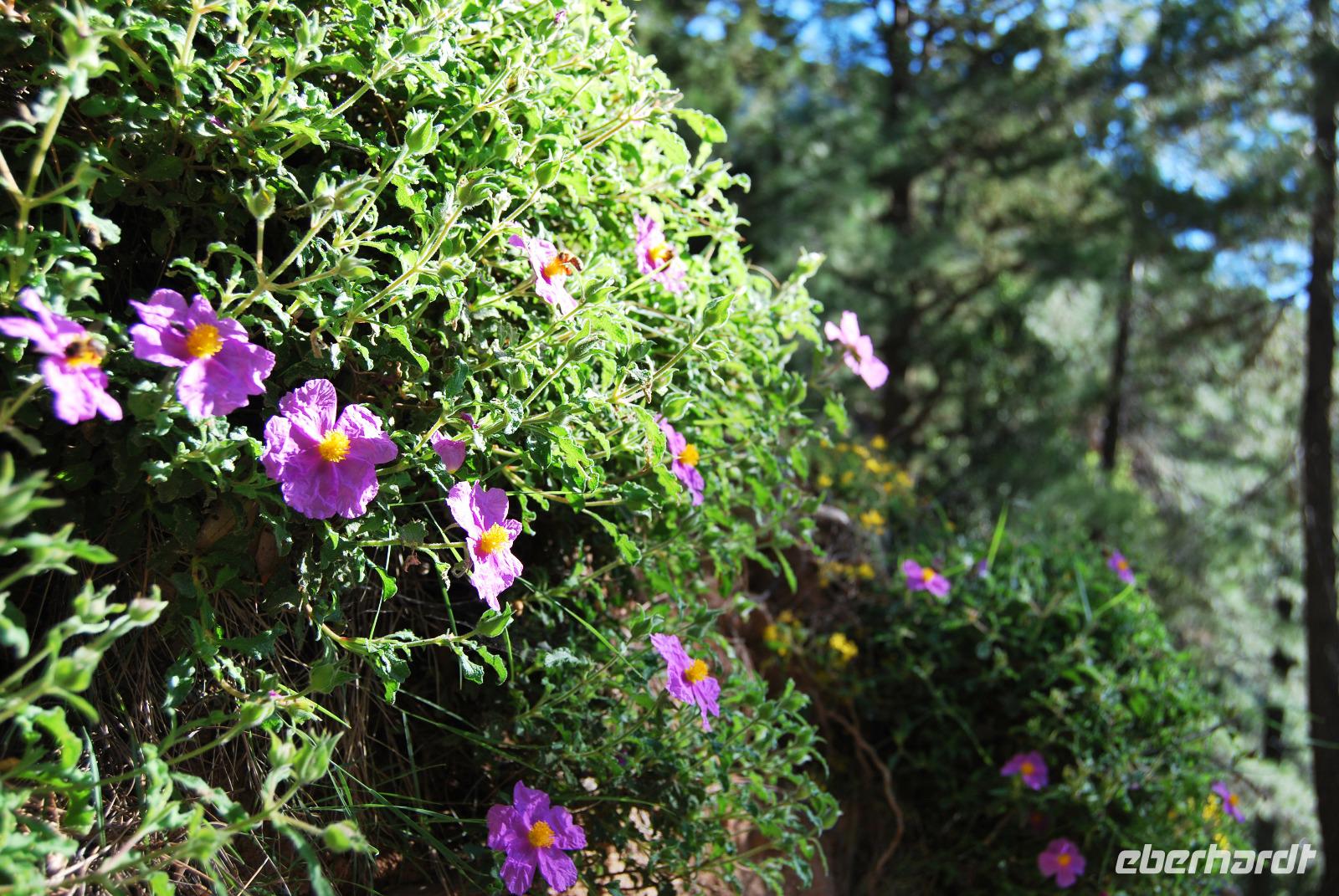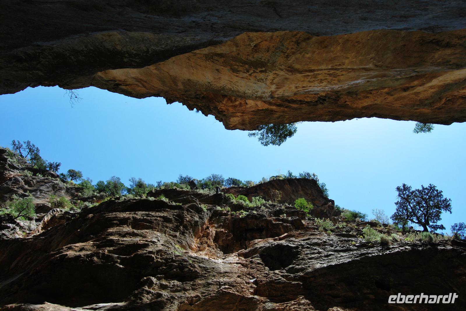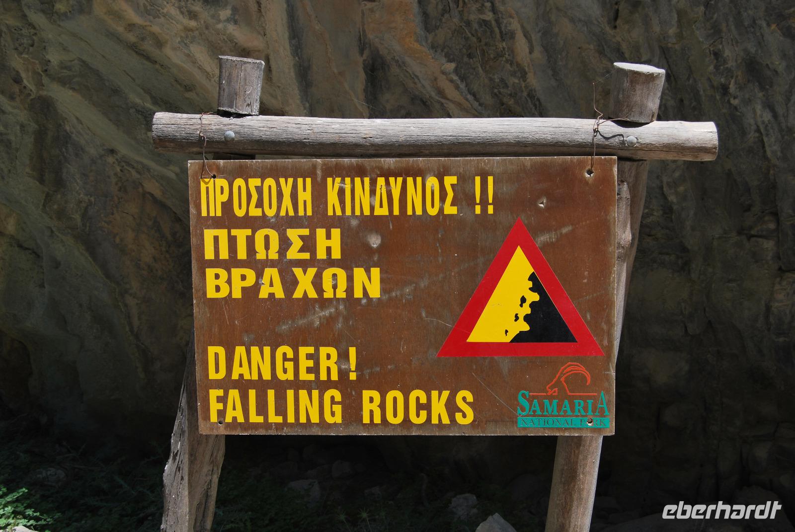 Heute erwartete uns ein sehr anstrengender Tag. Morgens um sechs Uhr saßen wir zusammen am Frühstückstisch. Eine Stunde später fuhren wir ab. Im Südwesten der Insel wollten wir die Samaria-Schlucht hinabsteigen, was wir dann auch taten. Anfangs ging es stufenartig über graues Gestein hinunter. Die Wände mussten teilweise gesichert sein, da herabfallende Steine drohten. Am Wegesrand stand ab du zu ein Drachenmaul, der Dracunculus, dessen üblen Geruch man vom Näheren riechen konnte. Stetig wurden wir vom trockenen Flussbett - später auch vom plätschernden Bach begleitet. Am Rande Kiefern, Zypressen und Platanen.