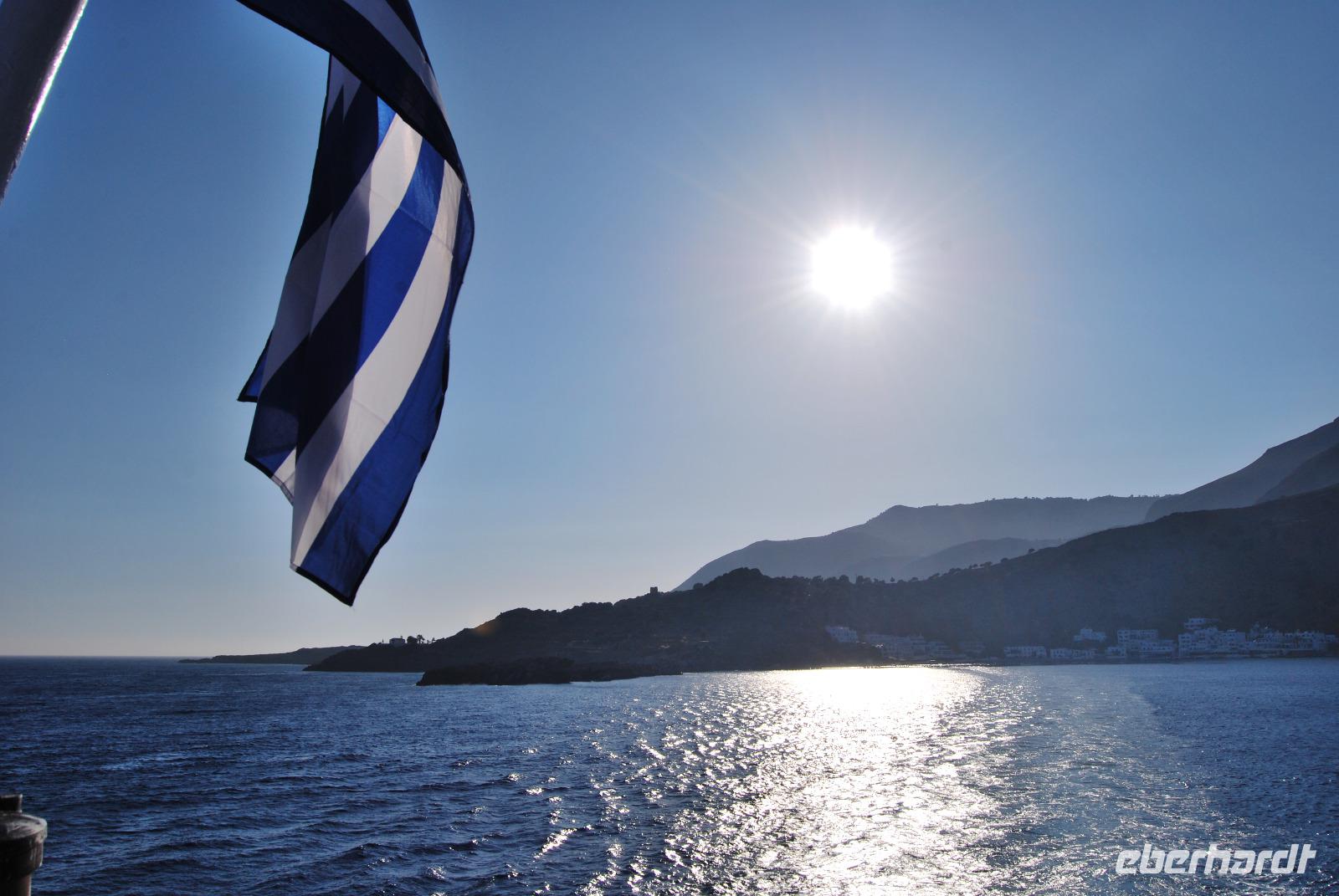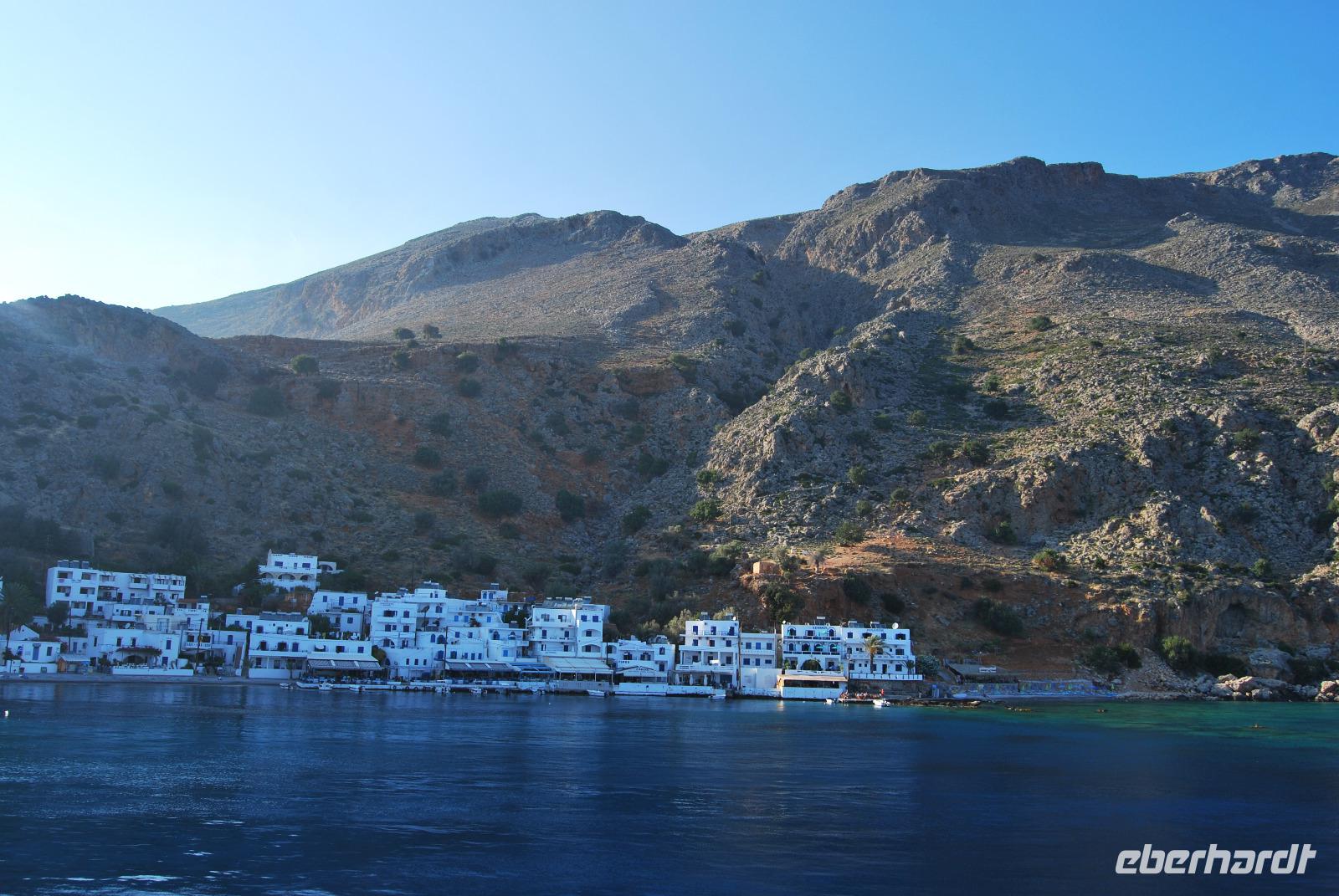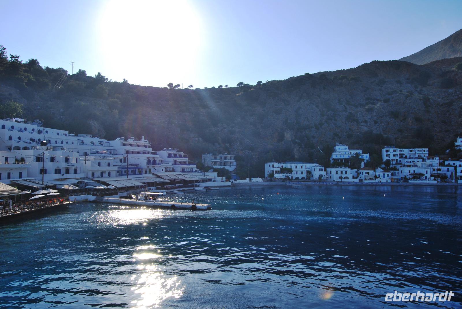 Mit der Fähre ging es dann nach Chora Sfakion. Das niedliche Weiße Küstendorf erstrahlte im goldenen Sonnenuntergang als wir zum Bus spazierten. Von dort fuhren wir die Berge hinauf und gelangten über die kurvenreichen Passstraßen zurück zum Hotel bei Georgioupoli.
