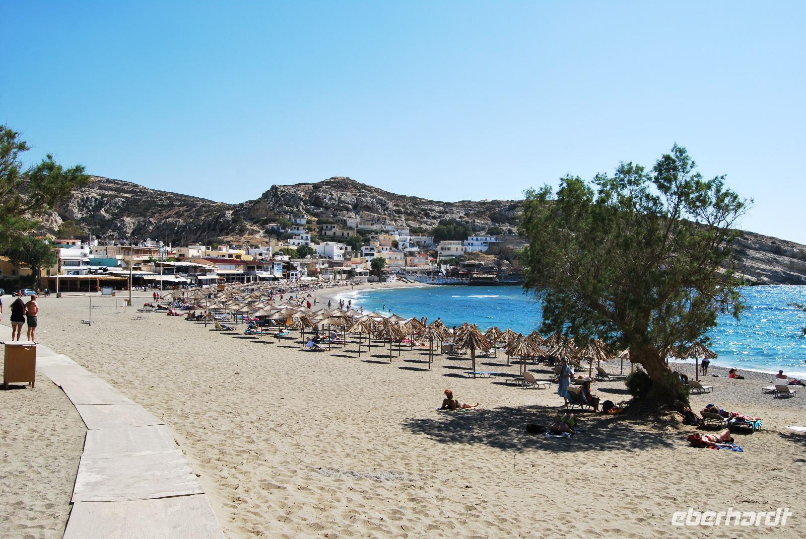 Nächster Stopp hieß Matala! Hier gab es dann auch etwas zu essen. Der Küstenort lockte mit einer urigen Strandbar, tollem Sandstrand, erfrischendes Wasser und beeindruckende Felsenhöhlen, in der sich vor nicht allzu langer Zeit Hippies ein zu Hause geschafft hatten und sogenannte Wohn-Höhlen ausgearbeitet hatten. Heutzutage sind sie aber vertrieben worden und man kann die imposanten Höhlen mit Meeresblick für zwei Euro besichtigen. Über Spili fuhren wir wieder in unser Hotel und konnten den Tag mit tollen Eindrücken ausklingen lassen.