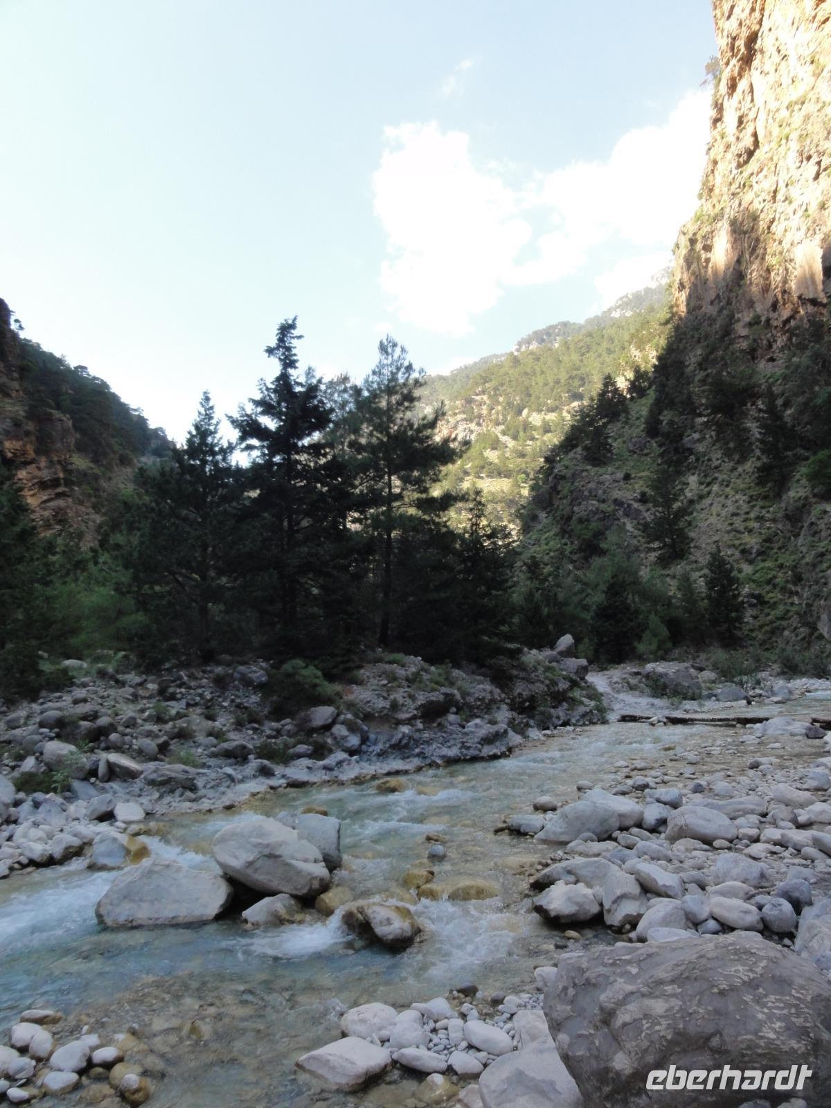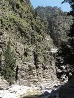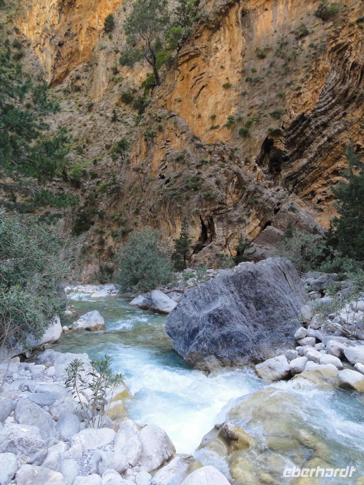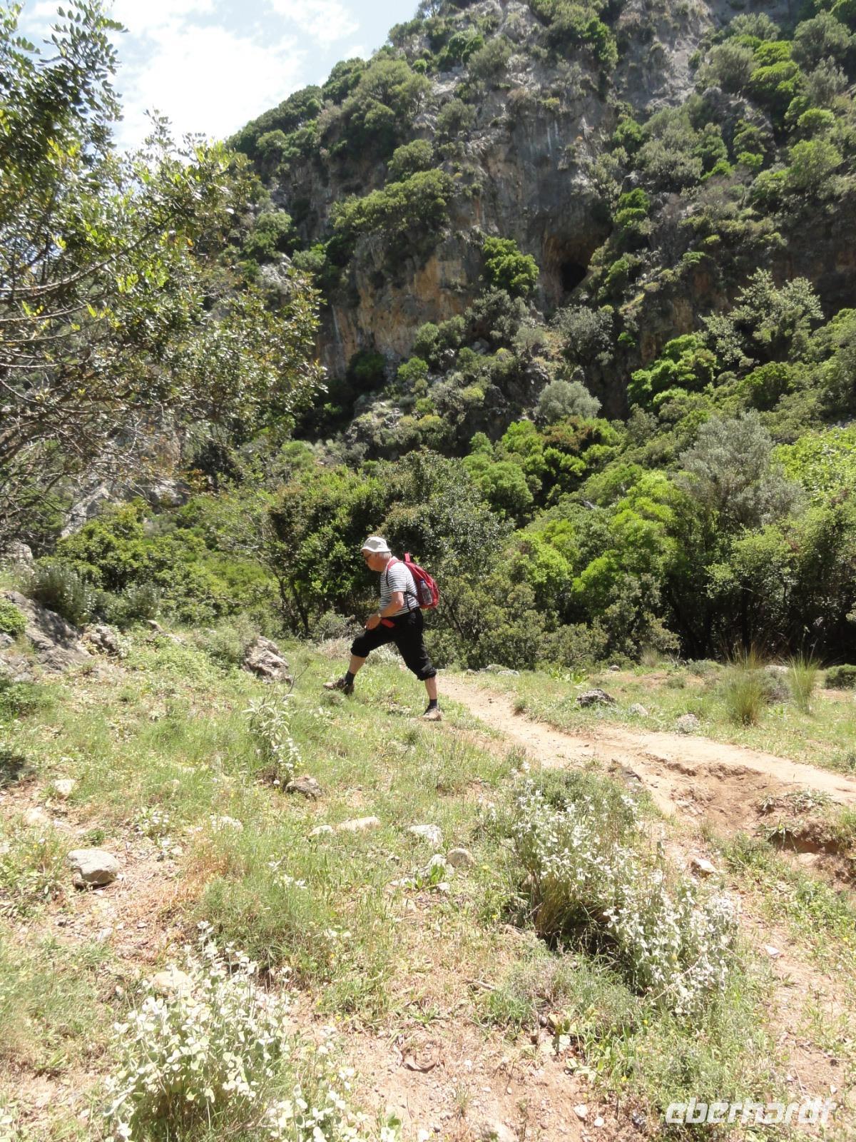 Nach dem Frühstück fahren wir 8.30 Uhr nach Sirikari, unserem Startpunkt unserer Wanderung für heute. An der kleinen Kapelle schlüpfen wir in unsere Wanderschuhe, was uns nicht ganz so leicht fällt, auf Grund des Muskelkaters von der Samaria Schlucht gestern, naja da müssen wir jetzt durch und somit werden wir uns den Muskelkater heute raus laufen. Den Ziegenweg hinunter oder wie er getauft wurde, ein wahrlich "beschissener" Weg, ha ha ha... folgt eine Wanderung oberhalb der Schlucht mit Blick auf den Fluss, denn auch die Sirikari Schlucht führt Wasser. An der Steinbrücke machen wir unsere Pause und es bieten sich sehr viele Motive um ein Foto zu machen.