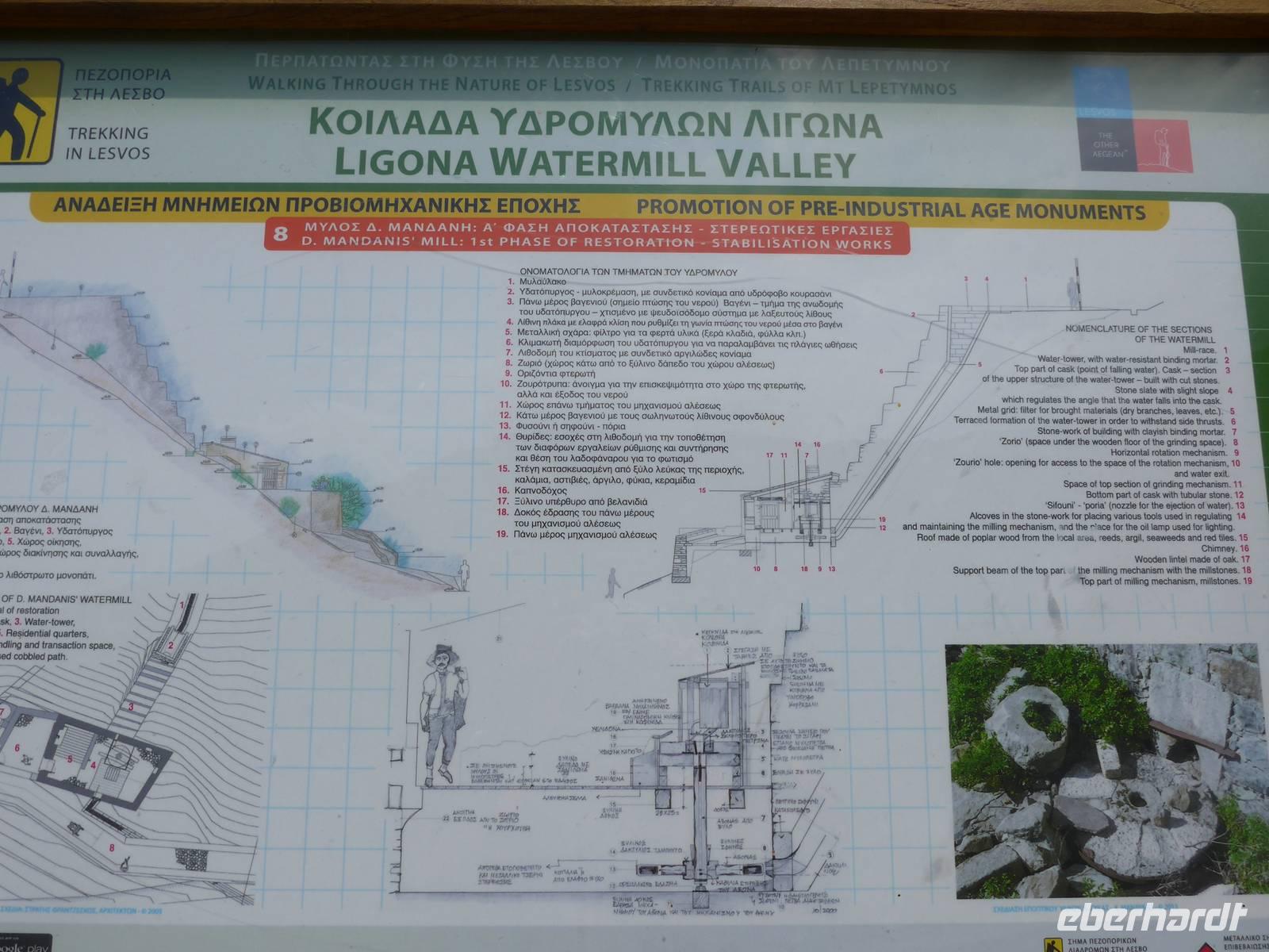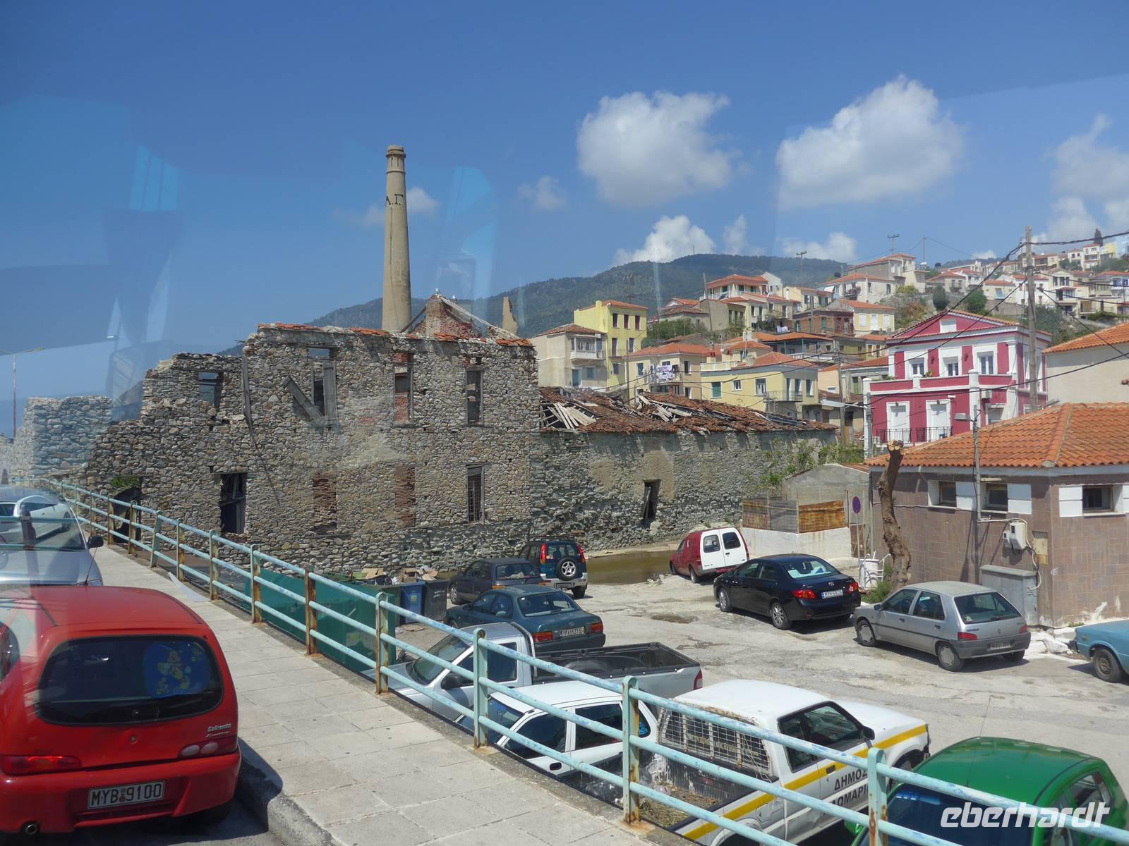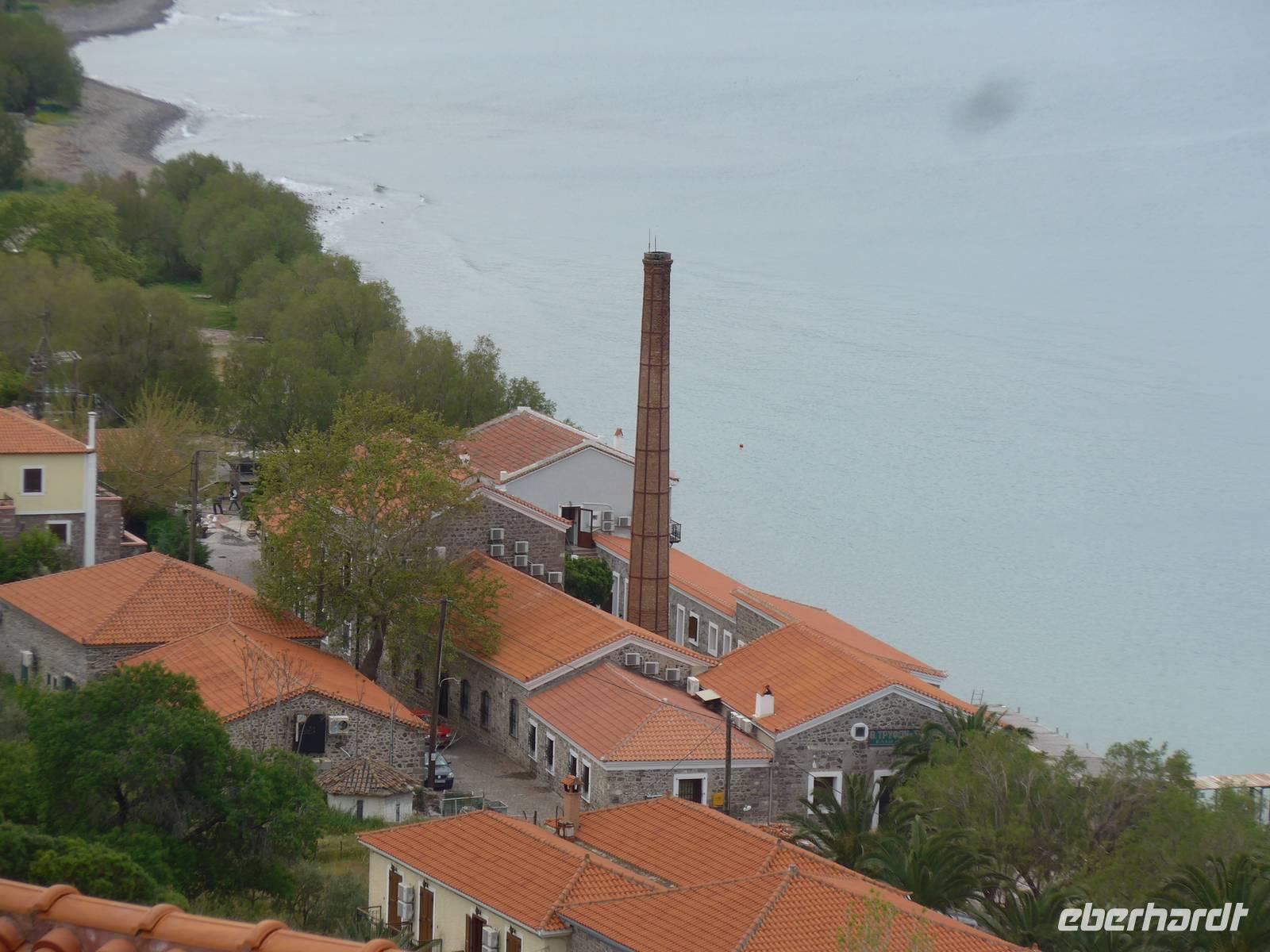 Die vom Großvater des Nobelpreisträgers Elytis 1887 gegründete Olivenpresse war bis in die 1970er Jahre in Betrieb und verfiel dann nach und nach. 2006 begann die Restaurierung der vor allem berühmten Dampfmaschine und 2009 wurde das wirklich sehenswerte Museum eröffnet. Einst lebte eine ganze Region vom Olivenöl und der Seifenherstellung sehr gut, dann machte aber die billigere Konkurrenz aus dem Ausland alles kaputt. Heute klagen die Olivenbauern über zu geringe Preise für ein hervorragendes Olivenöl aus Griechenland.
